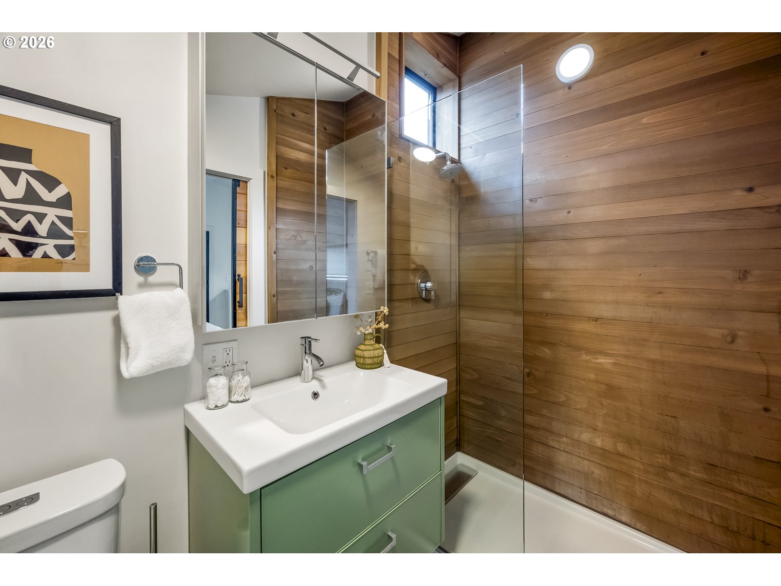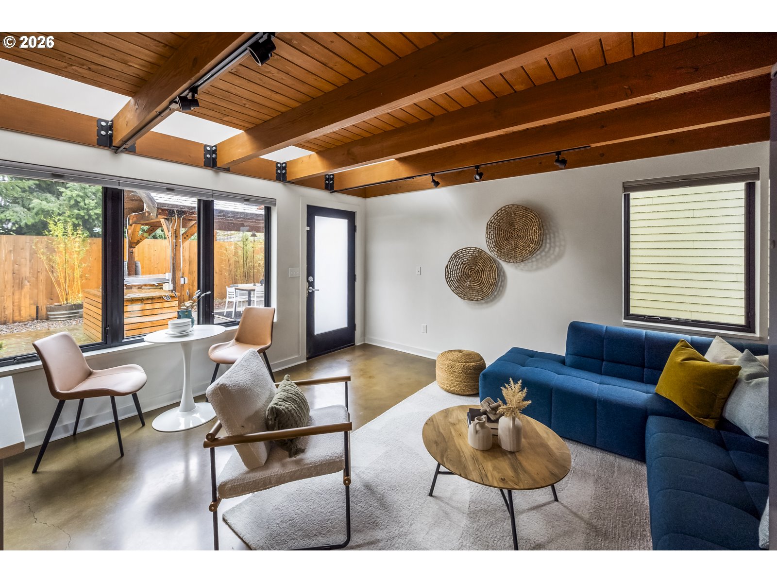 A true labor of love in the heart of Arbor Lodge, this custom Northwest Contemporary main house renovation and fully permitted ADU by esteemed local design-build firm, Green Hammer, is full of bespoke features that are warm and modern, and yet still true to the historic character of the property. The updated and upgraded systems and finishes throughout this highly efficient, Earth Advantage Platinum Certified property include, and are by no means limited to: oak floors throughout from Zena Forest Products (the same lumber suppliers for the new PDX terminal!), custom metalwork, triple pane windows, a Heat Recovery Ventilator system with HEPA pre-filter, custom kitchen cabinets, all new pipes in 2020 with low flow water sense fixtures, and a cedar shower and radiant polished concrete flooring in the ADU. A dedicated entry and path to the ADU provide an option for rental income. Alternatively, the connected main house and ADU can be cohesive living space or for multigenerational living. The compound is equal parts refuge in the city and communal gathering place, with an outdoor living area designed for relaxation and recreation. Just steps from Gammons and Arbor Lodge Parks, the tranquility of the property is amplified by native landscaping, multiple west-facing sunset vantage points, and irrigated, organic garden beds. Entertaining opportunities abound, with an Alaskan White Cedar outdoor soaking tub, a deep set fire pit for cooking, and a large, heated, covered patio space ideal for gathering. The partially finished basement provides ample storage, and meets all requirements for ADU permitting. All of this in close walking and biking distance to beloved Arbor Lodge, Kenton, and Kenton businesses, New Seasons, The Max, and the Willamette Bluff!