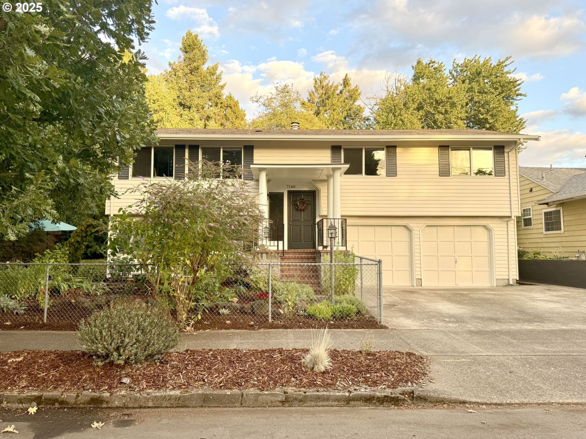 Welcome to this beautifully updated 3-bedroom, 2.5-bath home with 1,746 sq. ft. of living space on a generous 7,405 sq. ft. lot. Set on a wide, tree-lined street, this property offers comfort, privacy, and thoughtful upgrades throughout.Inside, an open-concept layout features a bright living area with a cozy fireplace and a remodeled kitchen with quartz counters, modern finishes, and excellent storage. The flexible downstairs family room can function as a 4th bedroom, office, or media room. With a separate rear entrance, nook area, cabinets, Formica countertop, and a 220V outlet for a range and hood, the lower level also offers potential for an ADU conversion. Fresh interior paint, new flooring, and abundant storage make this home truly move-in ready.Step outside to a private backyard retreat complete with a deck, covered patio, hot tub, fruit trees, picnic space, fire pit, and raised garden beds. An automated watering system and charming chicken coop add both convenience and character. Mature trees surround the yard, creating a peaceful setting perfect for entertaining or unwinding.Additional highlights include a 2-car garage, driveway parking, an oversized lot with potential RV parking, and a new roof. This home blends modern living with outdoor charm — a rare find.