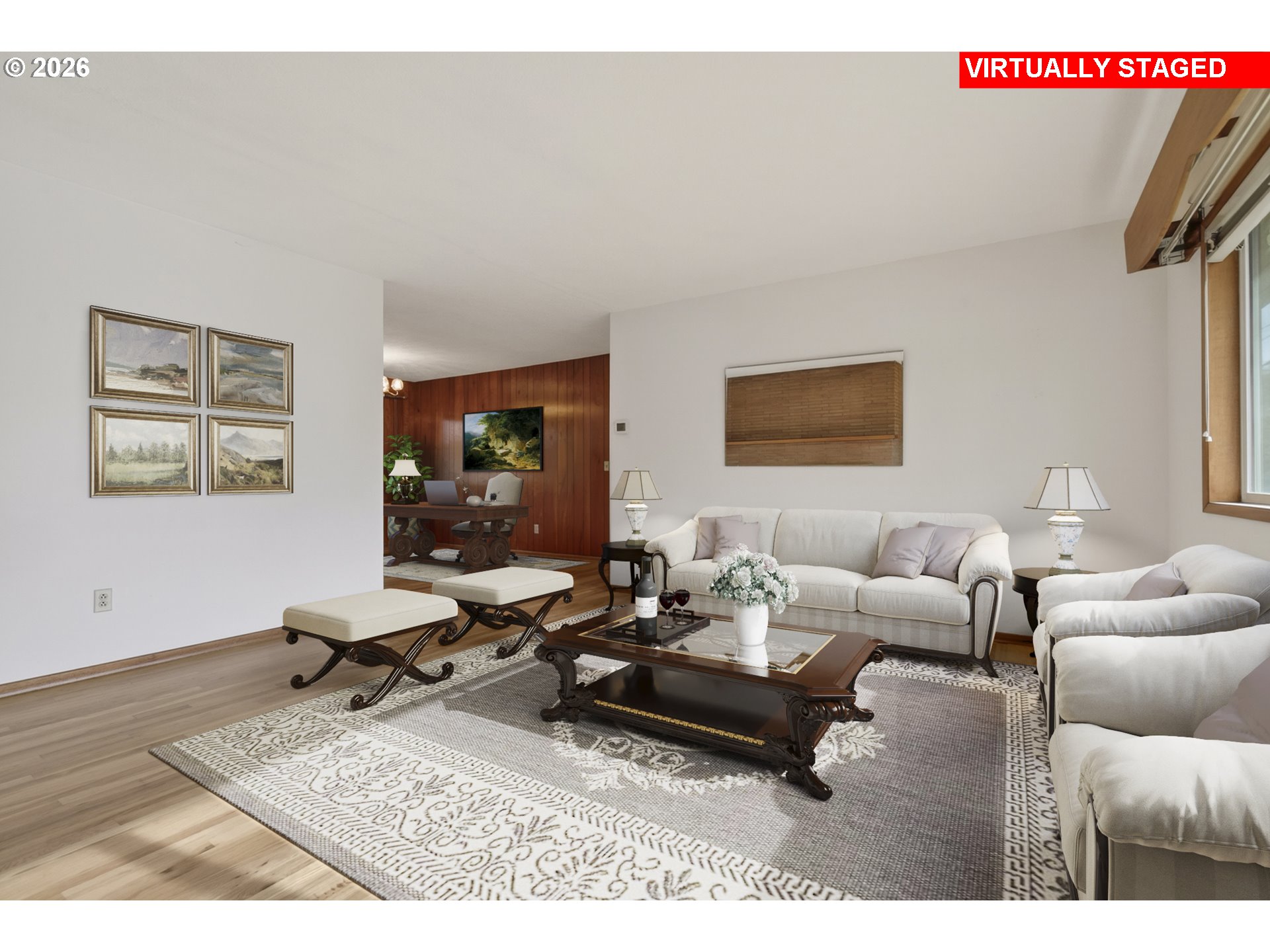 Timeless mid-century ranch offering easy one-level living on a .14-acre corner lot just blocks from the University of Portland. With 1,400 SF, 3 bedrooms and 1.5 bathrooms, this home blends classic character with smart updates including a brand-NEW roof, NEW electrical panel, and newer water heater & windows for added peace of mind. Gorgeous newly refinished hardwood floors run throughout the living, flex space and all three bedrooms creating a warm, cohesive feel. The living room is anchored by a wood-burning fireplace with a floor-to-ceiling stacked brick surround, while the flex space connects seamlessly for everyday living/working. The spacious kitchen features ample countertop space, an eating bar, generous cabinet storage, and an adjacent dining area with fireplace and sliders that open to your fenced yard. Outdoors, enjoy a covered patio, mature landscaping and a tool shed - ready for gardening or weekend projects. Your laundry/utility area features a half bath & includes a washer and dryer, and a coveted attached 2-car garage adds convenience and versatility. Located near parks, schools, the Willamette River and just minutes to downtown Portland, this home offers comfort, location, and livability. Open Houses this Saturday, April 25, 11am–1pm and Sunday, April 26, 2–4pm. Come take a look & fall in love!