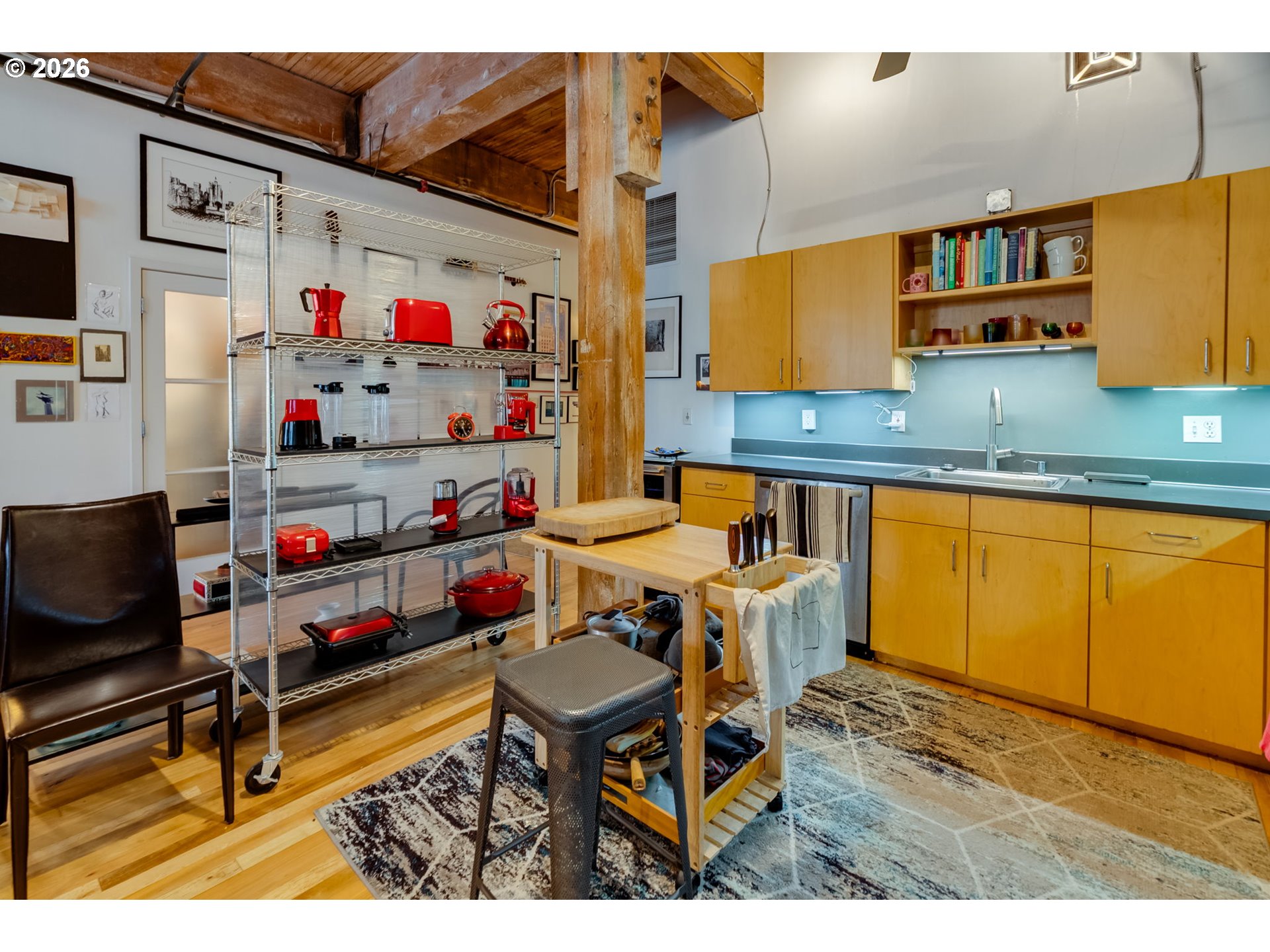 Set within the iconic Flanders Lofts, this vintage loft captures the essence of the Pearl District: timeless, creative, and effortlessly cool. Morning light filters through tall park-facing windows, catching the exposed timber beams and concrete details that give the space its unmistakable industrial soul. Step onto the private patio and you’re greeted by the greenery of the Park Blocks and the quiet rhythm of the neighborhood unfolding below.Inside, soaring ceilings and an open-concept layout create a sense of freedom and flexibility. Think refined live/work setup, a gallery-like living environment, or a welcoming place to gather friends for an evening of good food and conversation. The chef’s kitchen is made for hosting, while the spa-like bath with a deep Japanese soaking tub offers a moment of retreat at the end of the day.Living here means the best of Portland is always within reach, yet never intrusive. Coffee around the corner. A wine bar after work. First Thursday strolls through nearby galleries. World-class dining, boutiques, markets, and events just steps away. Walk downtown, bike across the city, hop on MAX, or pull into your deeded garage parking when needed. The city becomes an extension of your living room.This is urban living with intention—where sophistication replaces stress, and access replaces excess. A home that honors Portland’s industrial past while offering the flexibility and ease of modern city life. Whether you’re building something new, working creatively, or simply savoring the energy of the Pearl, this loft offers a rare balance of vibrancy and refuge, right where you want to be.
