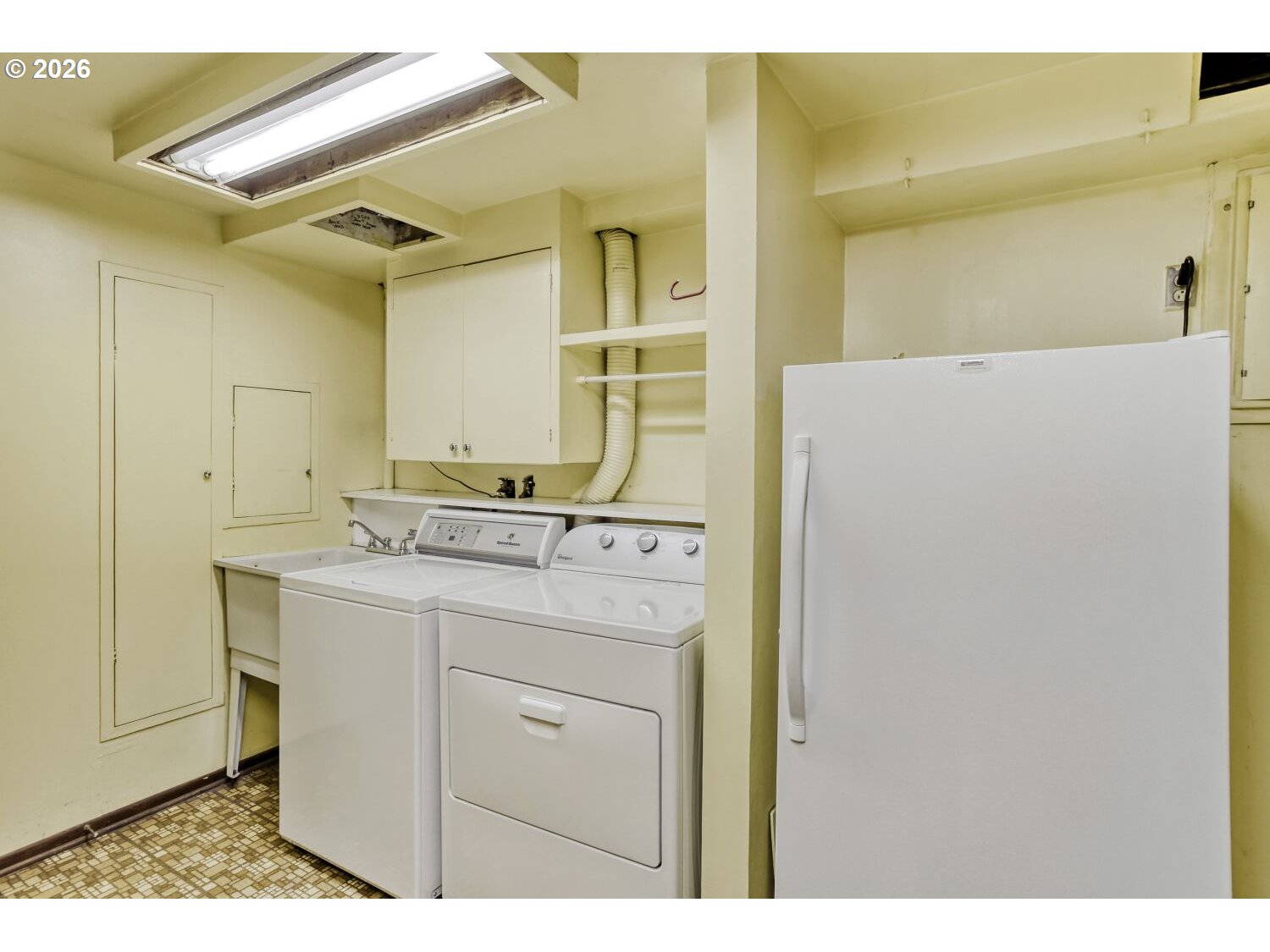 Charming University Park Bungalow! Discover this delightful bungalow nestled on a picturesque, tree-lined street in desirable University Park—just moments from the University of Portland, transit, shops, and nearby parks.Step inside to a warm and inviting living and dining area filled with natural light, flowing into a charming kitchen with pantry. The main level features a comfortable primary bedroom and a second bedroom with full bath. Upstairs, the finished attic offers an expansive bedroom retreat with built-in desk, closet, and additional storage—perfect for guests, work, or play. The lower level adds incredible flexibility with a non-conforming bedroom, full bath, bonus room, and a spacious laundry area complete with washer, dryer, sink, laundry chute, and abundant storage. A dedicated workshop with built-in cabinets makes this home ideal for creatives and DIY enthusiasts alike. Enjoy outdoor living year-round in the beautifully landscaped backyard featuring a covered patio, gazebo, storage shed, and lush greenery—your private urban oasis!Move-in ready and full of character, this University Park gem combines vintage charm with modern convenience in one of North Portland’s most beloved neighborhoods. [Home Energy Score = 4. HES Report at https://rpt.greenbuildingregistry.com/hes/OR10243699]