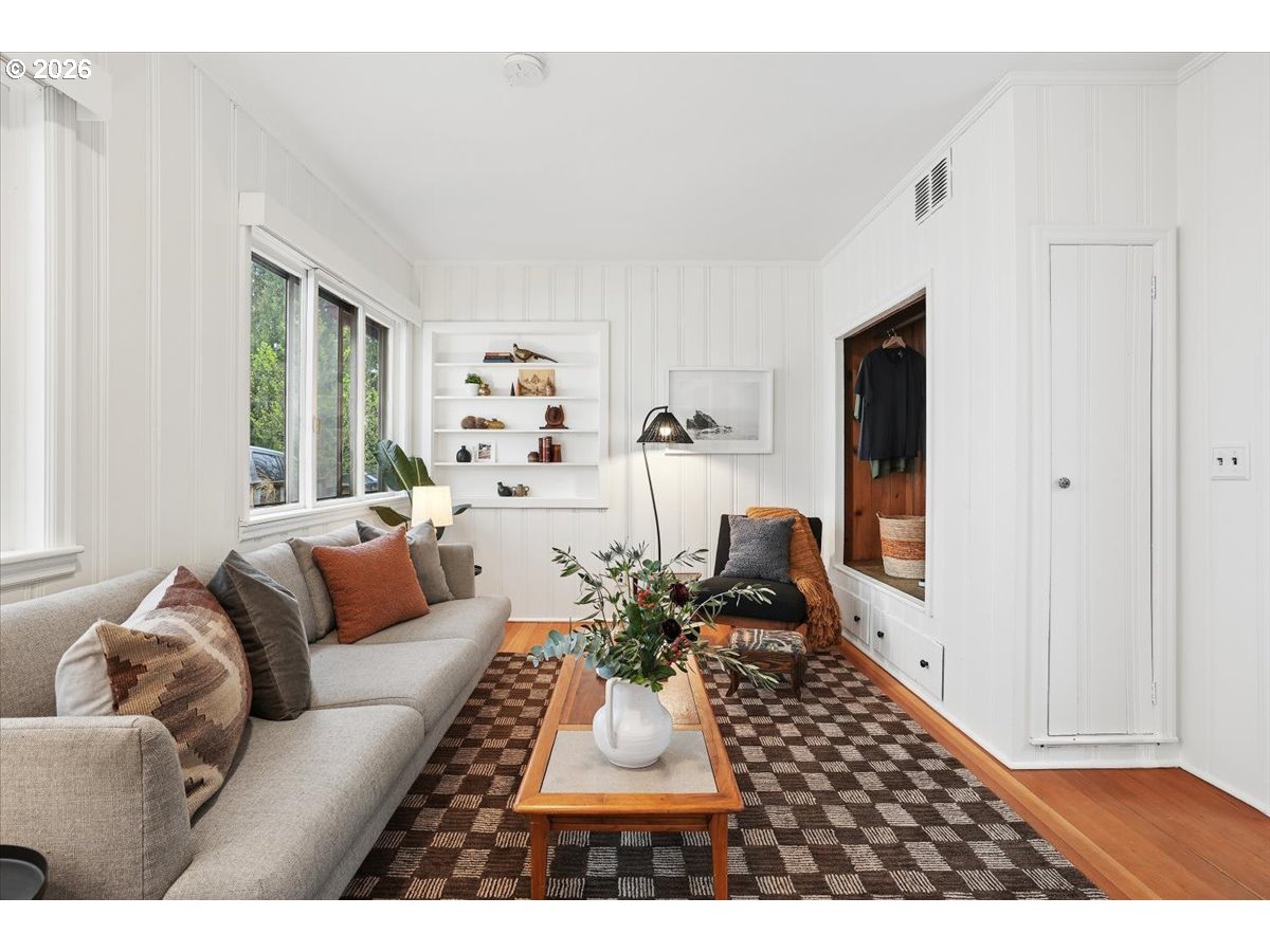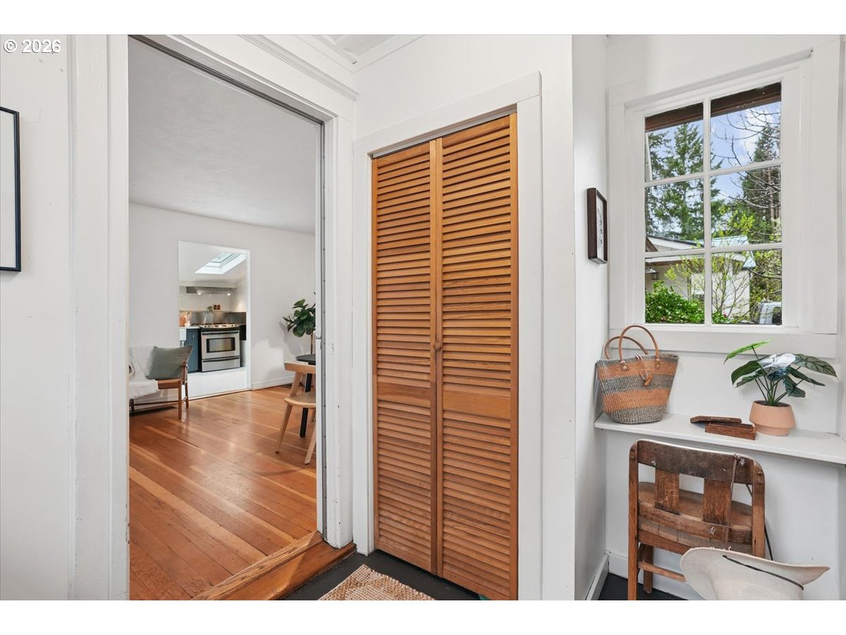 Located close to all of the shops, restaurants, and businesses of Multnomah Village and around the corner from Maplewood school, April Hill park, and the historic Maplewood coffee shop, this spacious cottage provides a rare opportunity to move into a highly desirable neighborhood at an affordable price point. This incredibly unique home exudes vintage character and charm, while also offering modern updates and upgrades throughout, including new interior paint, a new sewer line, and radon mitigation. The original fir & brick floors bring warmth, the French paned windows and vintage wood doors provide artistic details, & the skylights throughout make the home feel light & bright. The kitchen offers quartz counters and stainless appliances, the bathroom combines a vintage tile surround & built-ins with modern updates and the third bedroom doubles as a light-filled sun room that could serve as an office, playroom, art studio, or whatever your heart desires. The real stunner is the primary bedroom…with vaulted wood beamed ceilings, a walk in closet, windows to the unique light-filled hallway, and a ladder to a secret loft for reading, writing, yoga, or meditation. The basement provides room for lots of storage, as well as a laundry area with a utility sink.There are multiple access points to the lush private fenced yard, which offers a stone patio for outdoor dining, raised beds for growing plentiful gardens, a grape arbor, fig & plum trees, blueberries, and a shed for storing all of your tools. A house like this is one you will never want to leave and it serves as a perfect base for those who work from home or those looking to come back to a peaceful retreat at the end of the day. Open Houses Sat 3/28 & Sun 3/29 from 12-2! [Home Energy Score = 4. HES Report at https://rpt.greenbuildingregistry.com/hes/OR10102682]