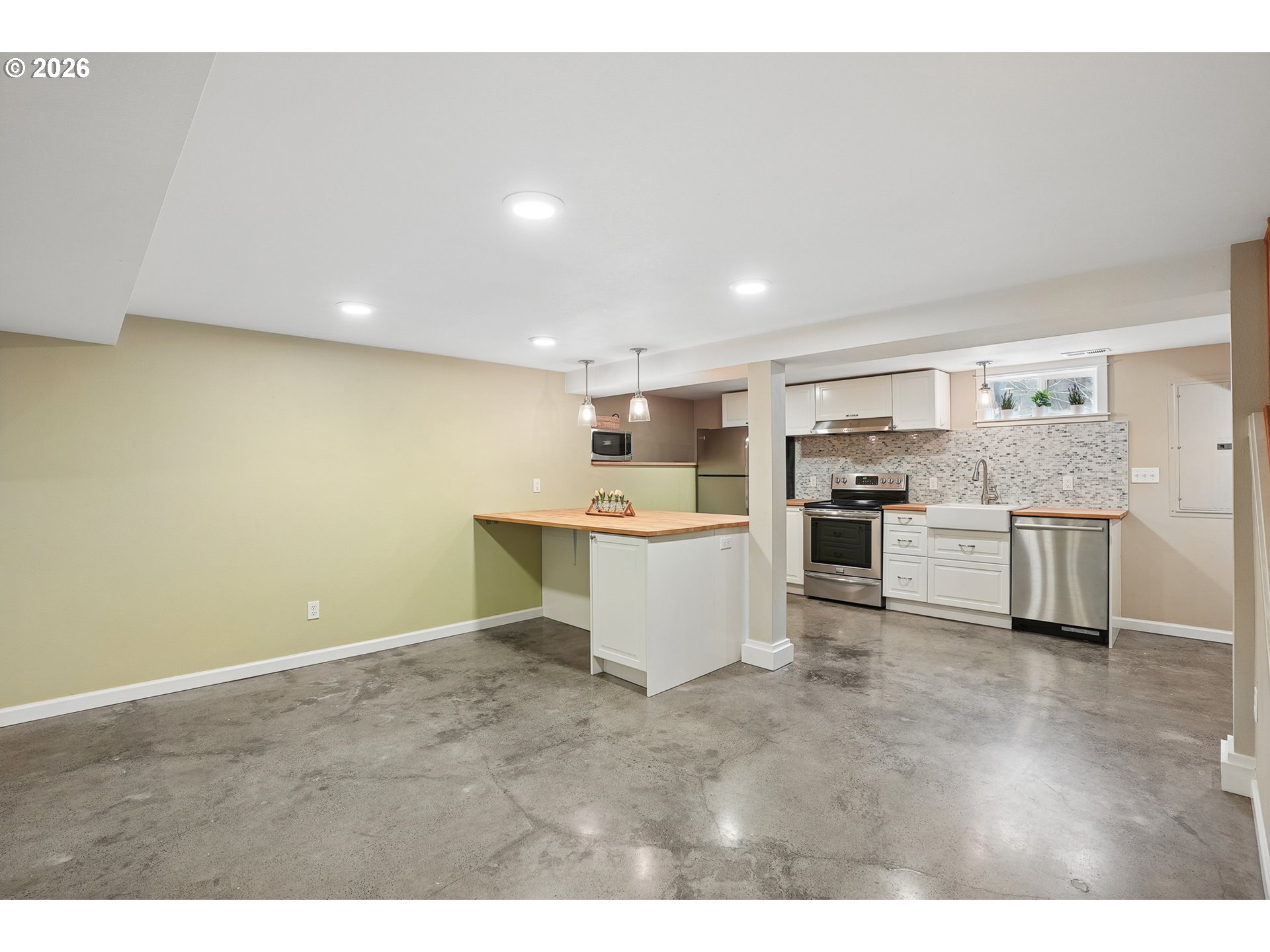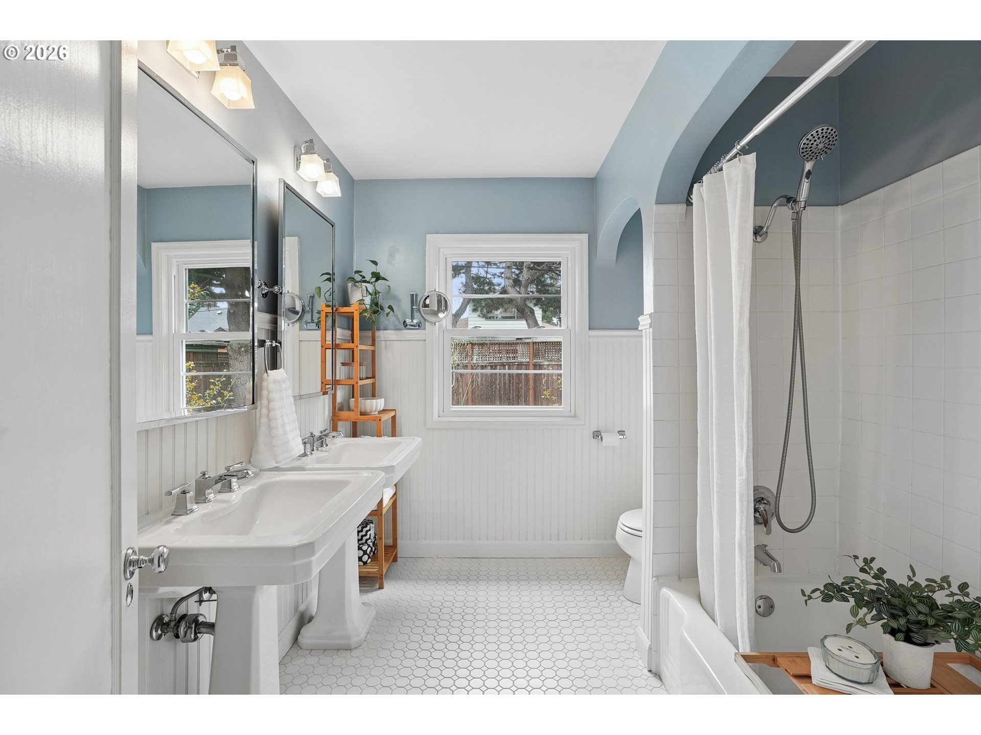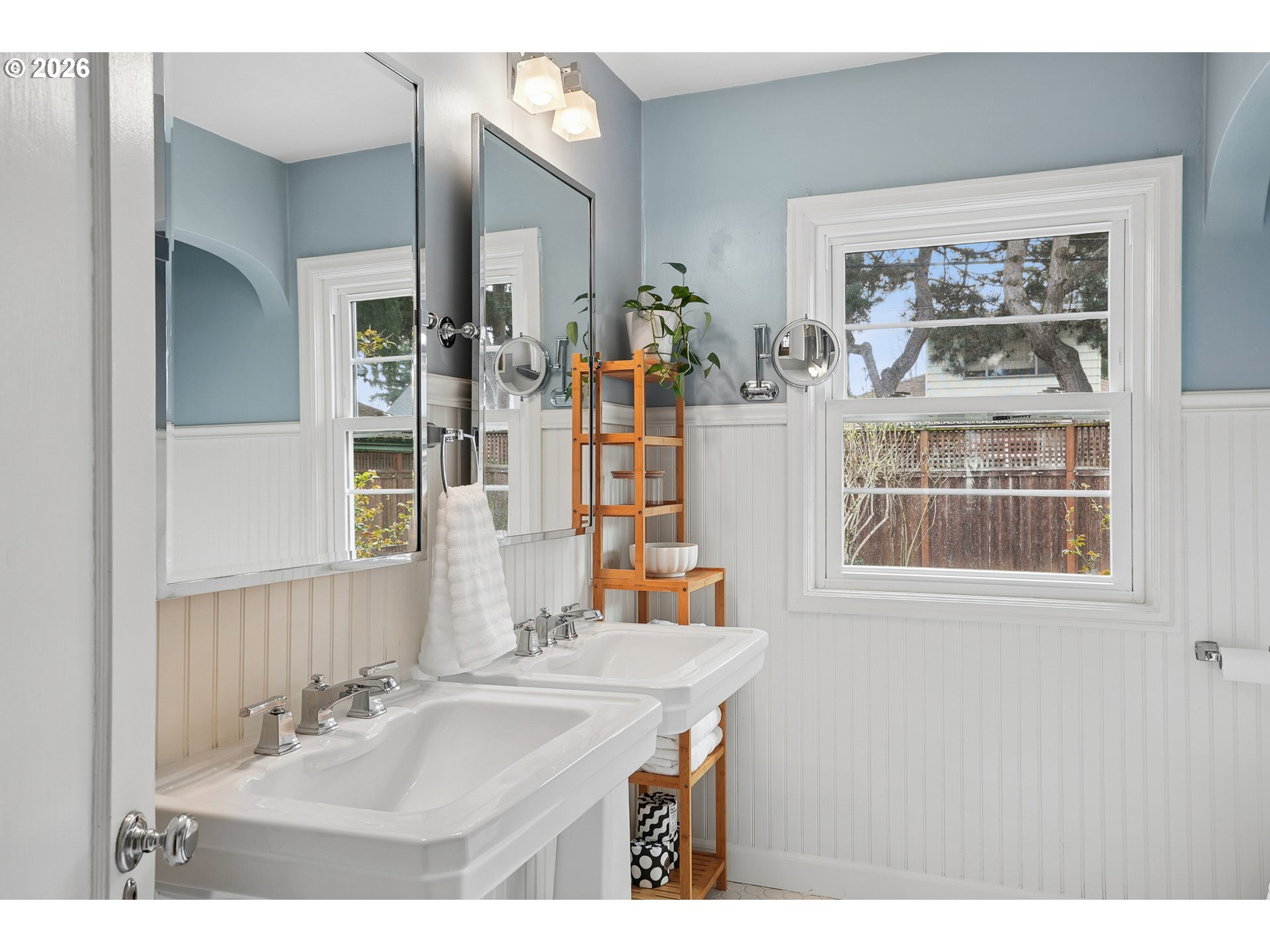 A beautifully maintained 1941 home where classic architectural details meet thoughtful modern updates. Original features like coved ceilings and graceful archways bring character and continuity throughout, while natural light fills the living spaces and highlights the gorgeous refinished wood floors. Beautiful fixtures and finishes including Rejuvenation lighting, Pottery Barn mirrors, and Moen faucets add a thoughtful design layer to the home’s timeless foundation. Extensive improvements including updated windows, plumbing, electrical, Trane furnace, Rinnai water heater, and EV charger provide modern comfort while preserving the integrity of the home. The flexible layout offers versatile living spaces for gathering, relaxing, or working from home. Outside, the garden is filled with blooming roses, lilacs, rhododendrons, and clematis, creating a lovely backdrop for outdoor living and evenings on the deck. The finished lower level adds exceptional versatility with a separate entrance, bedroom, bathroom, kitchen, and dual upper and lower laundry areas, ideal for guests, separate living quarters, or a private office or media space. Located in North Portland’s beloved Arbor Lodge neighborhood, with easy access to parks, local shops, and tree-lined streets perfect for walking, running, or biking. Ask for an updates list!