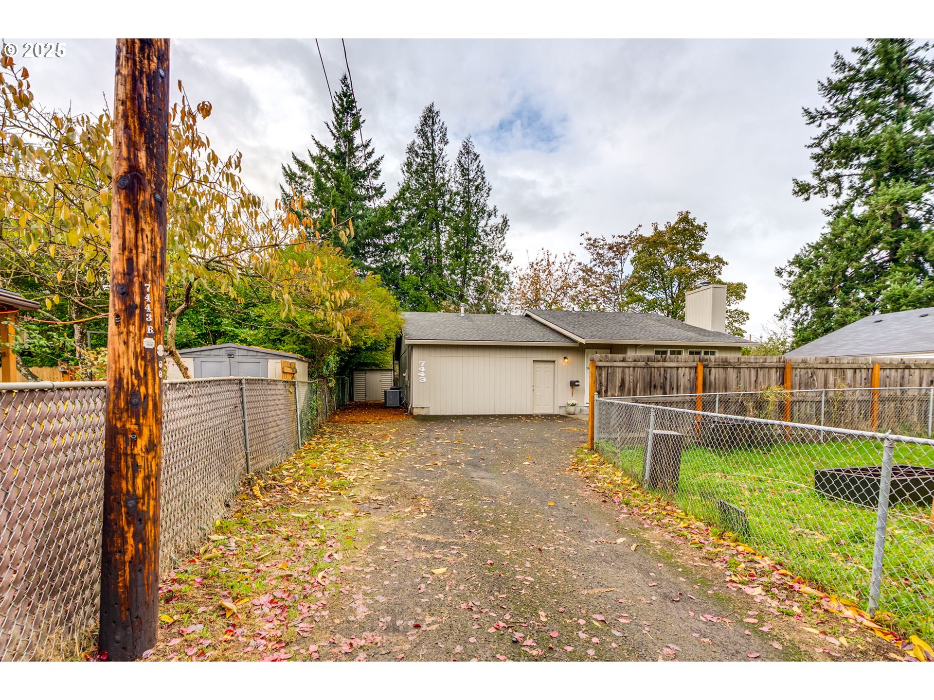Just listed! Bright and open 1-level home. Tucked away on a pleasant street near Woodstock shops and cafes and close to Brentwood Park and Mt. Scott Park/Pool/Community Center. Great-room style floor plan with abundant light from the slider to deck and big front window! Inviting deck for 3 season use and covered outdoor dining. Spacious primary bedroom with double closets has ensuite bath with a new walk-in shower. Have fun with the converted garage, to become your combination home gym, yoga space, media room, band room, crafts area or something else. Or add a window or two and make it your art studio. New furnace and Central Air in 2024. Excellent energy score of "8" indicates very reasonable utility costs. (See link to Home Energy Score report.) Freshly painted inside and out. Raised bed for your kitchen garden in the sunny front yard and room for more. Flag lot setting (behind another home) gives you a feeling of seclusion from the street and cars. (Buyer to verify all details.) Don't miss this one! [Home Energy Score = 8. HES Report at https://rpt.greenbuildingregistry.com/hes/OR10242870]