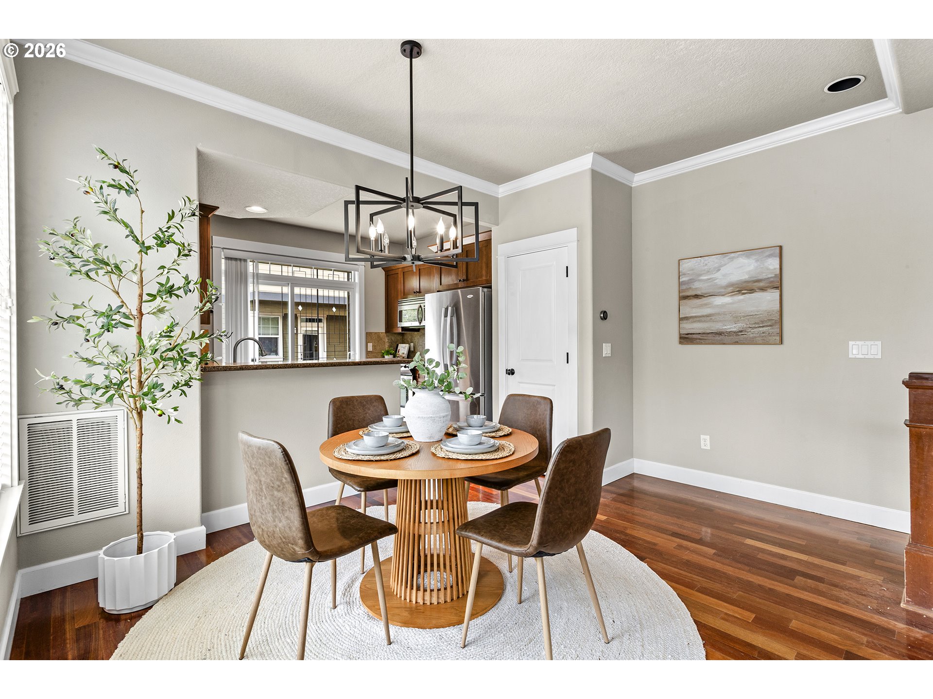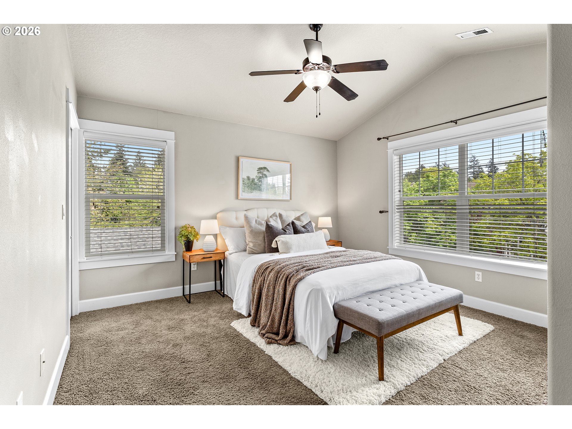 Beautiful end-unit townhouse in the heart of Multnomah Village featuring 3 bedrooms and 2.5 bathrooms. The lower level offers a versatile third bedroom, den, or home office, along with a convenient half bath, in-unit washer and dryer, coat closet, private patio access, and direct entry to the garage.The main level showcases an open-concept living space with a cozy gas fireplace, a well-appointed kitchen, and a private balcony with sliding glass doors that fill the home with natural light.Upstairs, the primary suite features vaulted ceilings and a relaxing soaking tub. An additional guest bedroom—also with vaulted ceilings—along with a full hall bathroom completes the upper level.Located in Multnomah Village, enjoy easy access to one of Portland’s most beloved neighborhoods, known for its charming small-town feel, local boutiques, coffee shops, parks, and popular dining spots—all just moments from your front door. [Home Energy Score = 7. HES Report at https://rpt.greenbuildingregistry.com/hes/OR10166670]