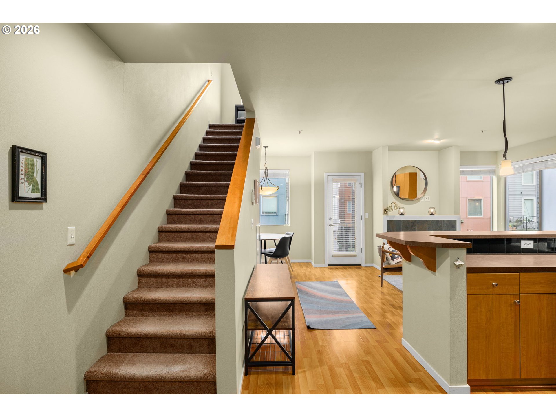 Welcome to this thoughtfully designed townhouse-style condo in the heart of St. Johns, one of North Portland’s most vibrant and community-driven neighborhoods. Scoring a 10 out of 10 home energy score, this 2-bedroom, 2.5-bath home features Earth Advantage certified construction, superior energy efficiency, comfort, and long-term sustainability. The open-concept main level is filled with natural light and designed for both everyday living and entertaining. Clean lines, modern finishes, and smart use of space create a warm, contemporary feel throughout. Upstairs, two spacious bedrooms, including a primary with its own ensuite bath and walk-in closet, providing privacy and flexibility for guests, roommates, or a home office setup. Appliances are included! Enjoy the peace of mind that comes with high-performance construction, lower utility costs, and environmentally conscious design. All of this is just moments from St. Johns’ local shops, restaurants, parks, and iconic Cathedral Park, with easy access to downtown Portland and beyond. A stylish, efficient home in a beloved North Portland neighborhood. This is St. Johns living at its best. [Home Energy Score = 10. HES Report at https://rpt.greenbuildingregistry.com/hes/OR10179179]