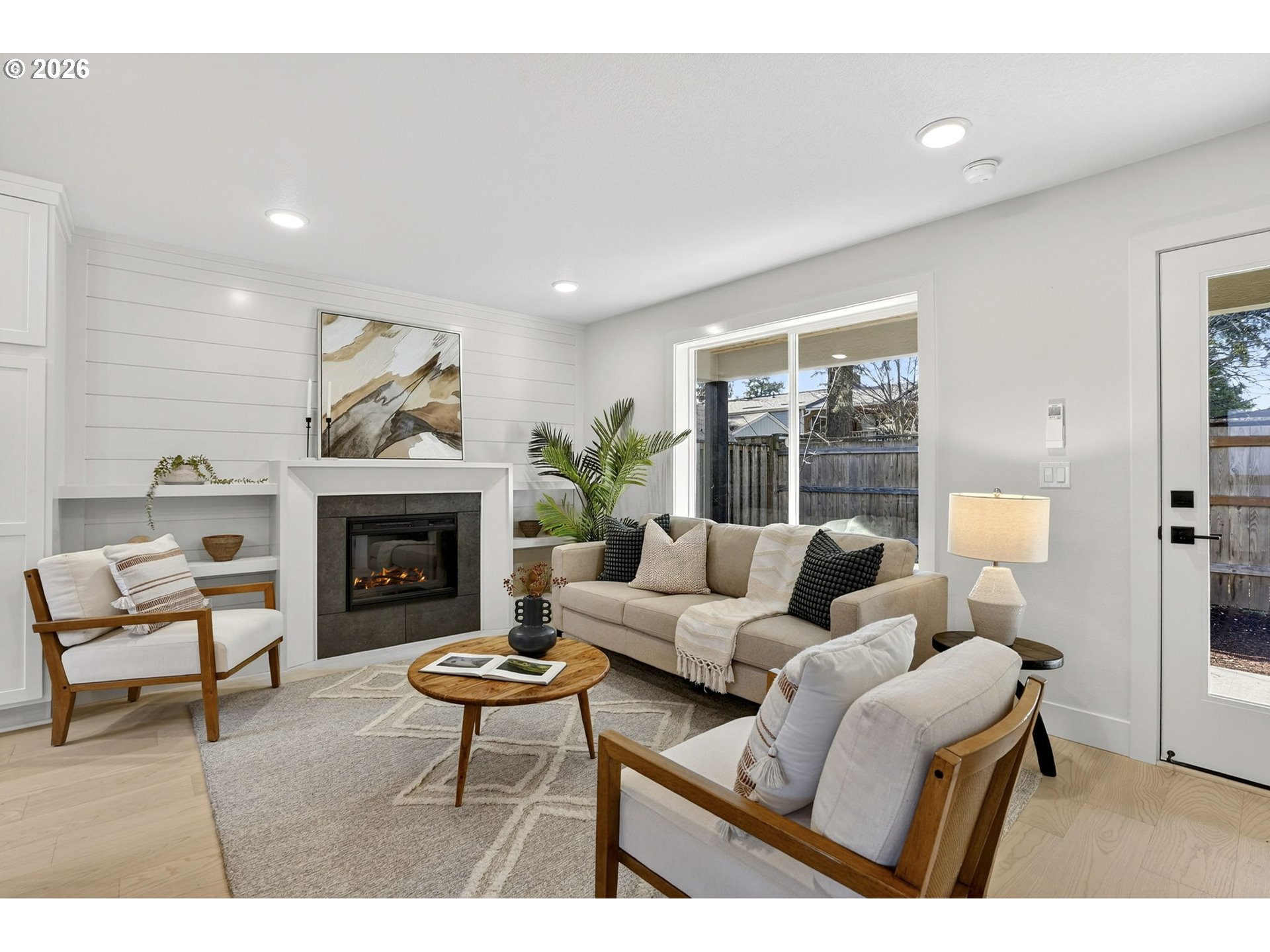 Hard to find, this brand-new 2 bed, 1.5 bath standalone home offers all the bells and whistles with a design savvy interior and modern amenities around every corner. The open concept kitchen flows seamlessly into the living room and features quartz countertops, stainless steel appliances, ample cabinetry and a large cook island overlooking the warm and inviting living space. You’ll love relaxing at home with a cozy fireplace surrounded by built-in bookcases, ideal for everyday living and entertainment. Both bedrooms are spacious with vaulted ceilings and a walk-in closet. The primary full bathroom has extra countertop space, loads of storage and a large soaking tub/shower combo. Outdoor living shines with a fully fenced yard, covered back patio and an attached storage room. Additional features include a half bath for guests, dedicated laundry room, A/C, off street parking and the added security of gated entry. Located just minutes from the heart of Woodstock, three blocks from Mt. Scott Community Center and one block from a bike lane, this exceptional home offers comfort, style, and an unbeatable location.