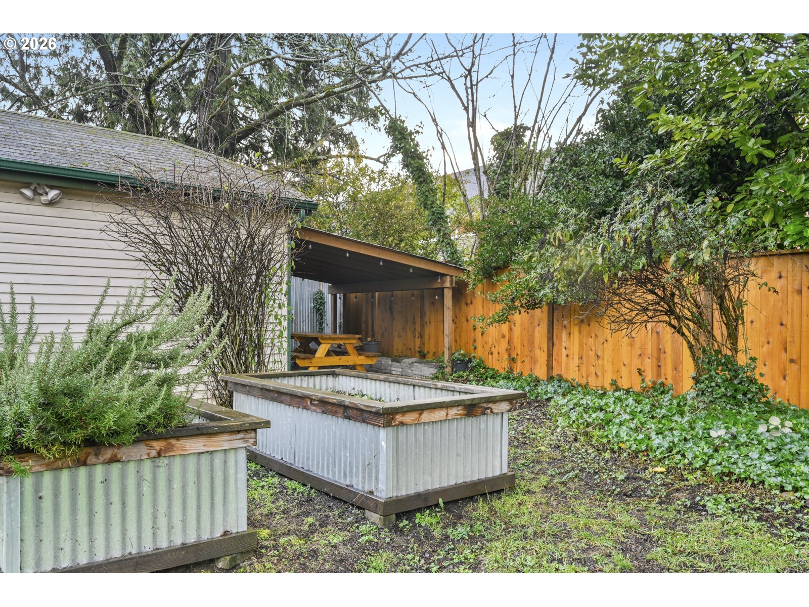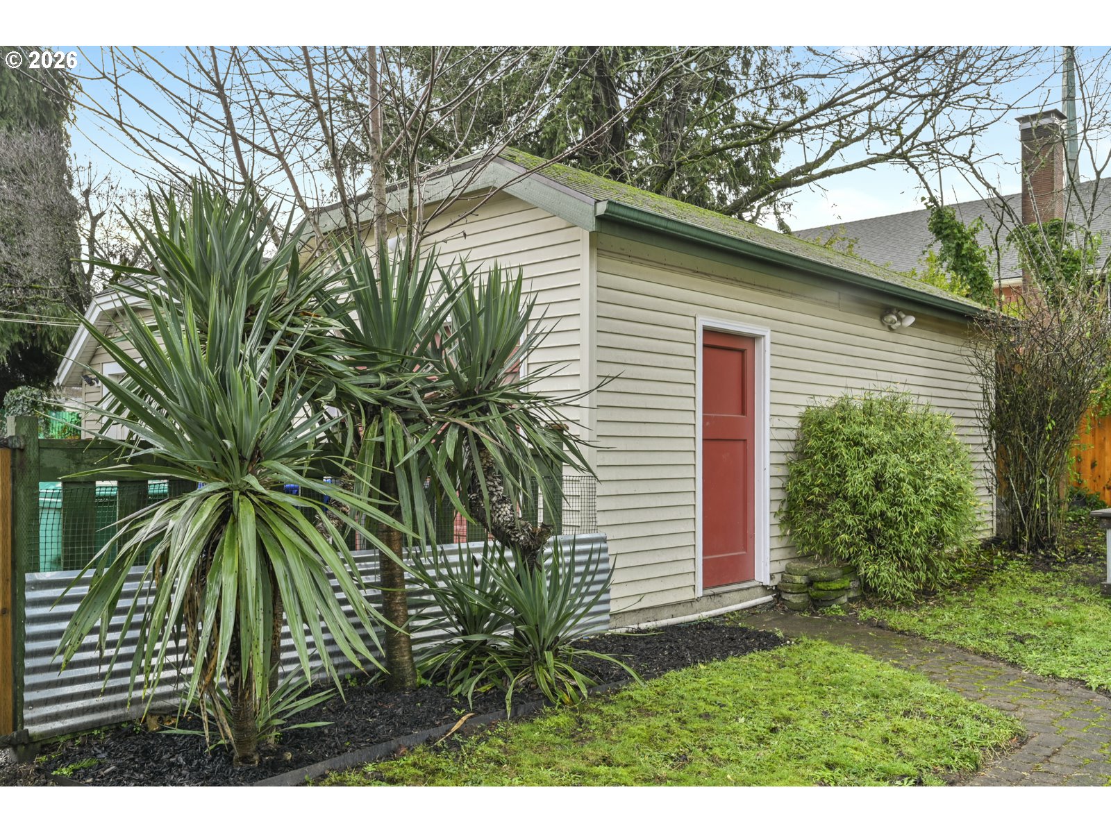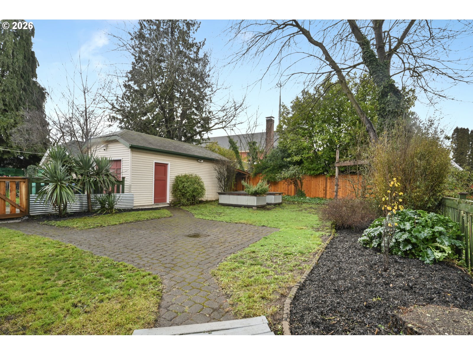 Charming Portsmouth bungalow filled with natural light, tucked into a lush, private garden setting. Bamboo floors, newer windows, and fresh interior paint throughout. The kitchen features new flooring, a gas range, and dishwasher. Forced-air gas furnace and central A/C for year-round comfort. Unfinished basement with good ceiling height offers excellent storage or future potential for expansion. Out back is truly where this home shines. The spacious, fenced yard is perfect for dogs, gardening, or long summer evenings, with raised beds, mature trees, and established landscaping. A large detached garage offers exciting future potential—think studio, home office, or ADU. There’s also a covered outdoor area with a picnic table, ideal for casual gatherings and relaxed entertaining. A long driveway and off-street parking add everyday convenience. The location seals the deal. Just steps from Columbia Park, enjoy tree-lined walking paths for daily runs. Neighborhood favorites like Chill n Fill Beer Hall, Chill Chill Chill Cocktail Bar, and Twilight Bar are right nearby, with NE Alberta Arts District just minutes away. Groceries are easy with New Seasons Market and Fred Meyer close by, plus quick access to St. Johns, farmers markets, University of Portland, and public transit. A sweet bungalow, a great yard, and a neighborhood that truly feels like home…don’t miss it! [Home Energy Score = 4. HES Report at https://rpt.greenbuildingregistry.com/hes/OR10193869]