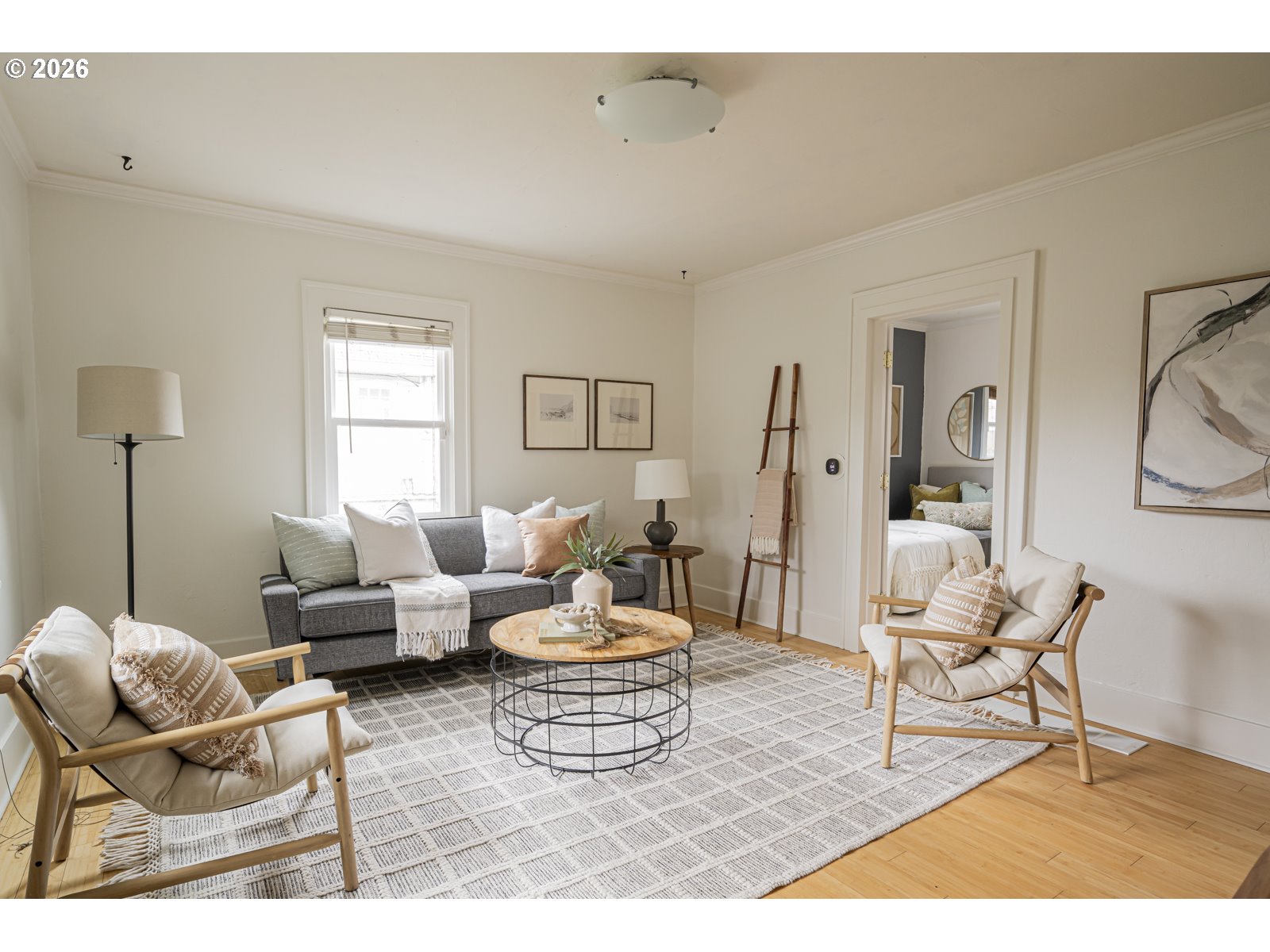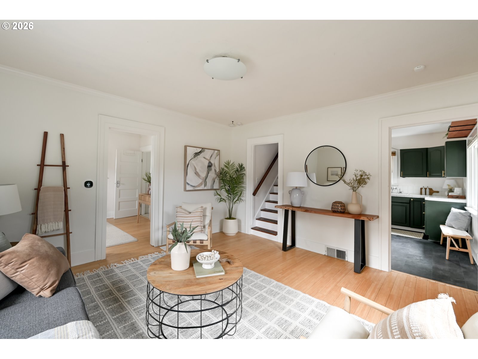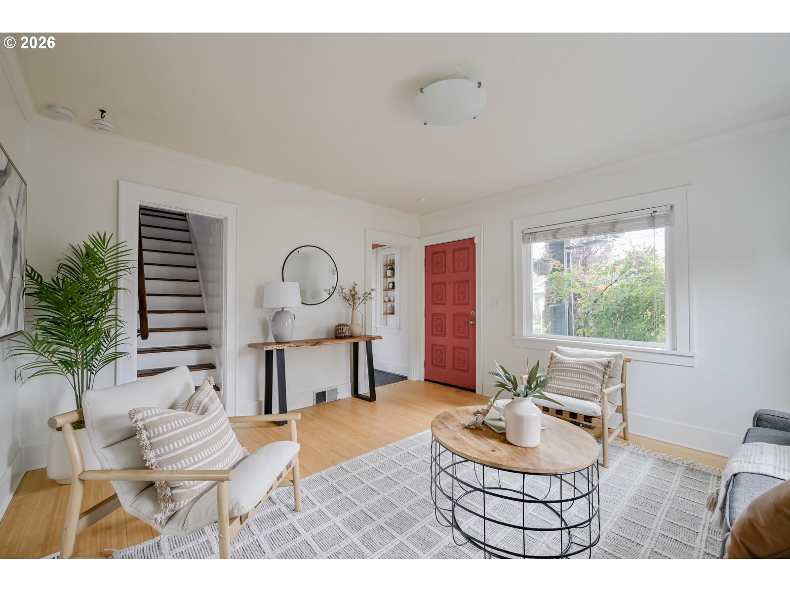 Charming Portsmouth bungalow filled with natural light, tucked into a lush, private garden setting. Bamboo floors, newer windows, and fresh interior paint throughout. The kitchen features new flooring, a gas range, and dishwasher. Forced-air gas furnace and central A/C for year-round comfort. Unfinished basement with good ceiling height offers excellent storage or future potential for expansion. Out back is truly where this home shines. The spacious, fenced yard is perfect for dogs, gardening, or long summer evenings, with raised beds, mature trees, and established landscaping. A large detached garage offers exciting future potential—think studio, home office, or ADU. There’s also a covered outdoor area with a picnic table, ideal for casual gatherings and relaxed entertaining. A long driveway and off-street parking add everyday convenience. The location seals the deal. Just steps from Columbia Park, enjoy tree-lined walking paths for daily runs. Neighborhood favorites like Chill n Fill Beer Hall, Chill Chill Chill Cocktail Bar, and Twilight Bar are right nearby, with NE Alberta Arts District just minutes away. Groceries are easy with New Seasons Market and Fred Meyer close by, plus quick access to St. Johns, farmers markets, University of Portland, and public transit. A sweet bungalow, a great yard, and a neighborhood that truly feels like home…don’t miss it! [Home Energy Score = 4. HES Report at https://rpt.greenbuildingregistry.com/hes/OR10193869]