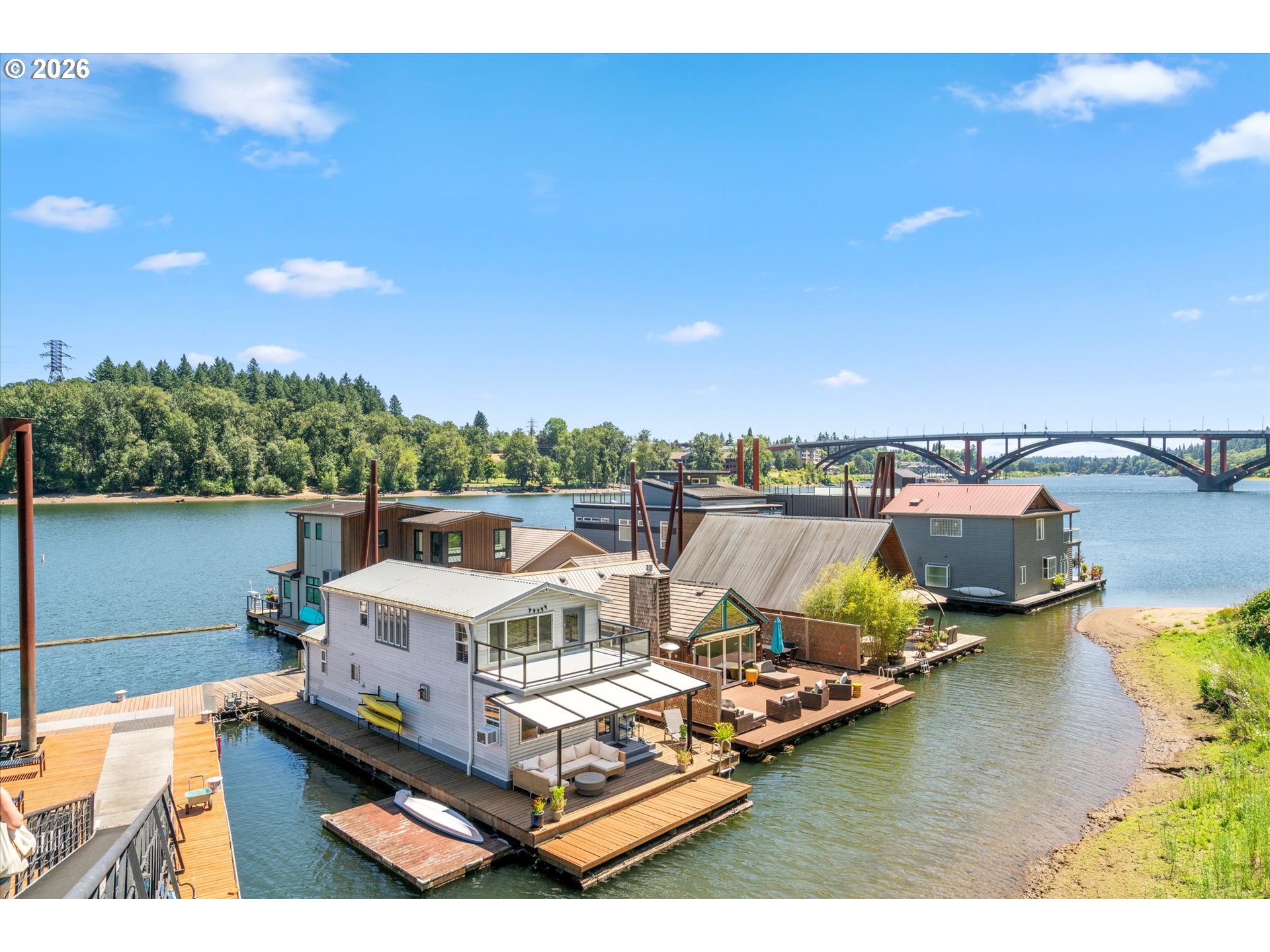 Portlands Willamette Waterfront is calling! Wake up on the river and play! There are very few places in Portland where the river is not a view but a lifestyle. This is one of them. Two beautifully updated floating homes (one a tiny home) within its own single coveted slip at Macadam Bay Club, a Floating Home Moorage. Nestled against a peaceful, tree-lined bank with your own direct access to the water, wake up and enjoy kayaking out your front door. Included with each slip comes free access to park your boat at the boat slip just feet from your front door! Ready for move in with a newer steel and wood beam float foundation, fresh decking, interior updates throughout. The modern kitchens and bathrooms will delight and the open nature of the floor plans allow for great room living - as functional as they are extraordinary. Live in one. Rent one. Host in both. The Willamette is waiting for you this summer! Welcome home.