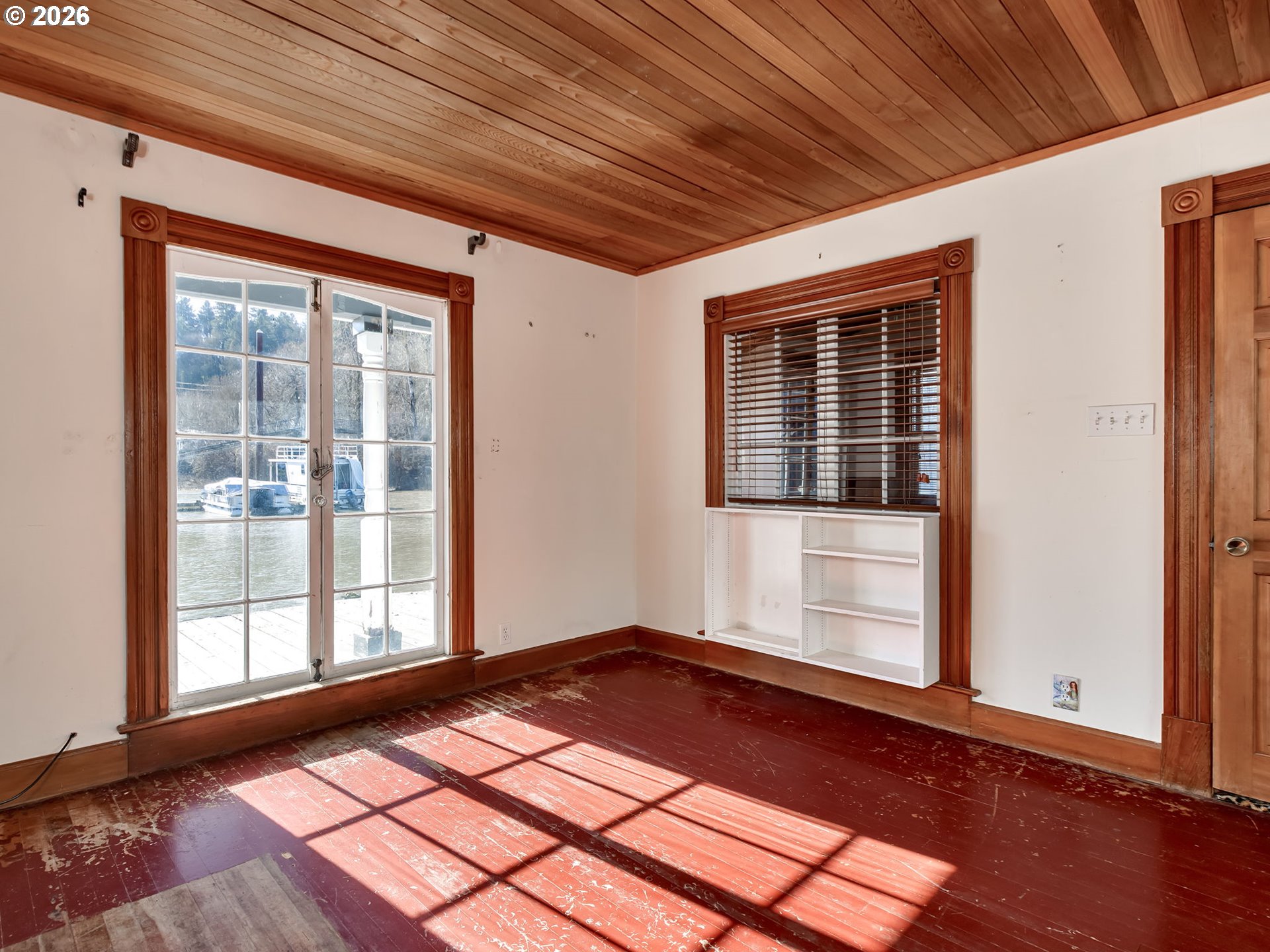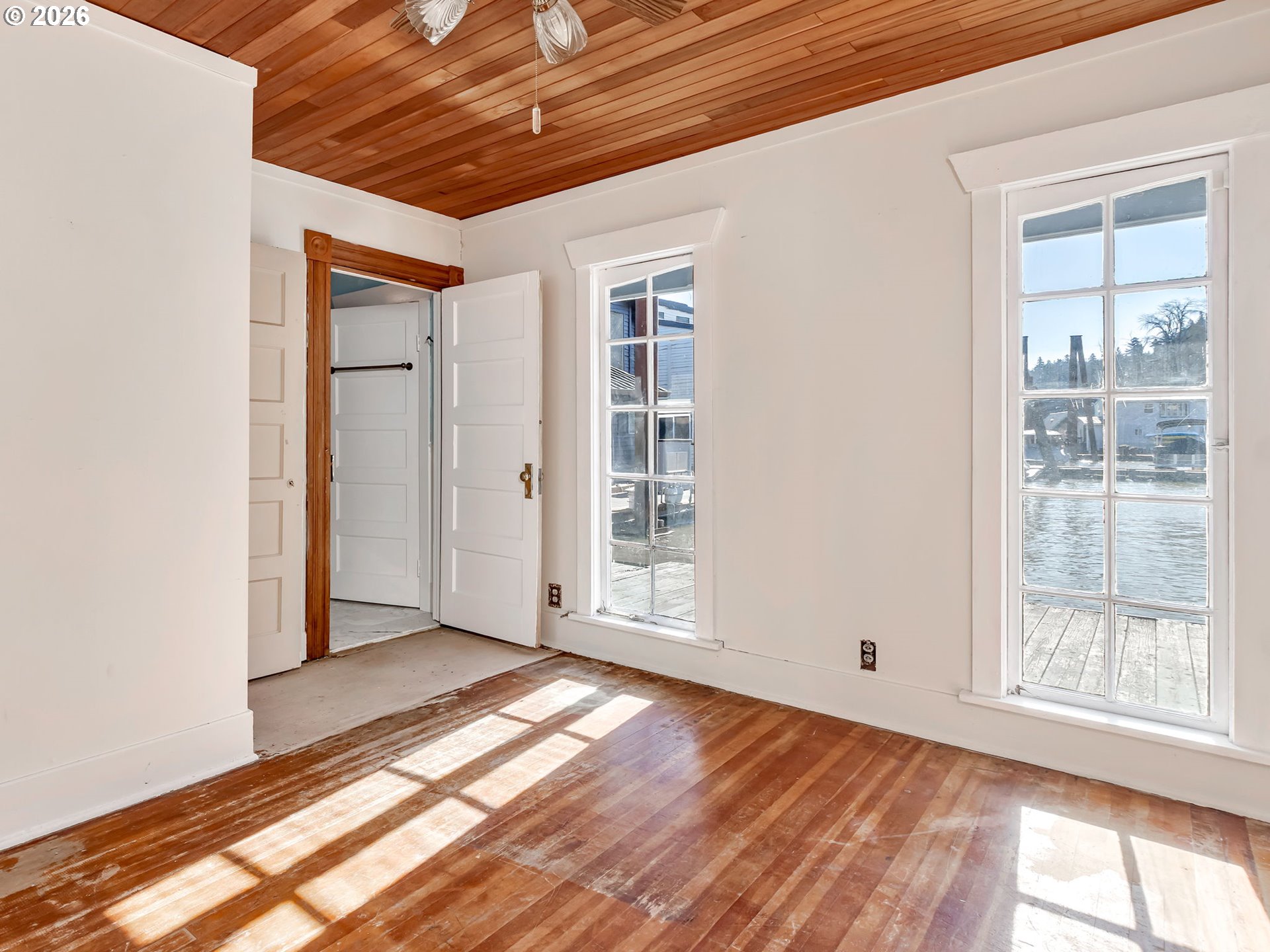 (503) 893-8874Offered for sale is Slip 16 at the beautiful Macadam Bay Moorage, located on the west side of the Willamette River in the John's Landing neighborhood. This is a private ownership floating home community. Slip 16 (35' wide & 70' long) is an end slip on the calmer water shoreside, with views of the water & Portland's Butterfly Park. A perfect slip location & water on two sides! This is a friendly & safe neighborhood with secured entrance & parking lot. HOA assigns parking & garages based on seniority. Each slip has 2 parking spaces. Plus THE WILLAMETTE GREENWAY is adjacent to the parking lot with an easy walking 5-mile paved walkway along the Willamette River with great views of the river & downtown Porland. Included in the sale is a one-of-a-kind 85-year-old wooden floating home, rich with nostalgia. The signature curved roof enhances this rustic retreat & covered patio. Most of the interior has wood ceilings & wood floors. The warm woodwork can be seen in the photos. Entry to the floating home is a door at the kitchen. Most windows & cabinets are original. Attached to the kitchen is a small bump-out nook. The bathroom is super cute: marble floor, glass vessel sink, & incredible chandelier, with a door to the nook & primary bedroom. The primary bedroom has 2 long windows facing the water, a walk-in closet & ceiling fan. The 2nd bedroom has good separation on the far side of the main living area, with beautiful woodwork, 2 closets, & bench storage. The living & dining areas have many original glass windows (some used as doorways) including to the covered patio. Heat is from electric wall heaters and a Lopi gas stove. Plus, a laundry room & W/D. HOA payments are $665 per month. The fee pays for your water, sewer, garbage, maintenance & electricity for the common areas. DISCLOSURES: The floating home is sold as-is. There are weathered decks, docks & significant problems with the float system. Rough interior & in need of repairs. Roof 2015, hot water heater 2021.
