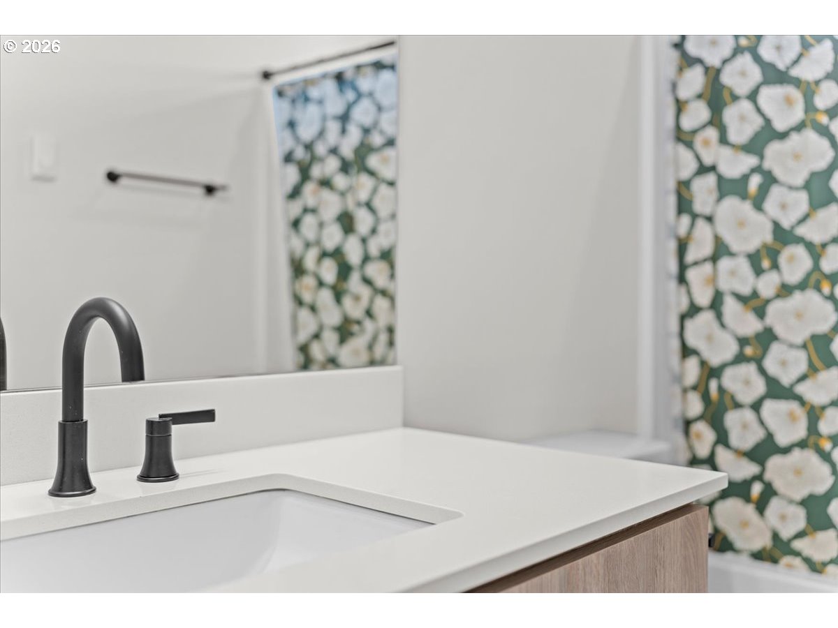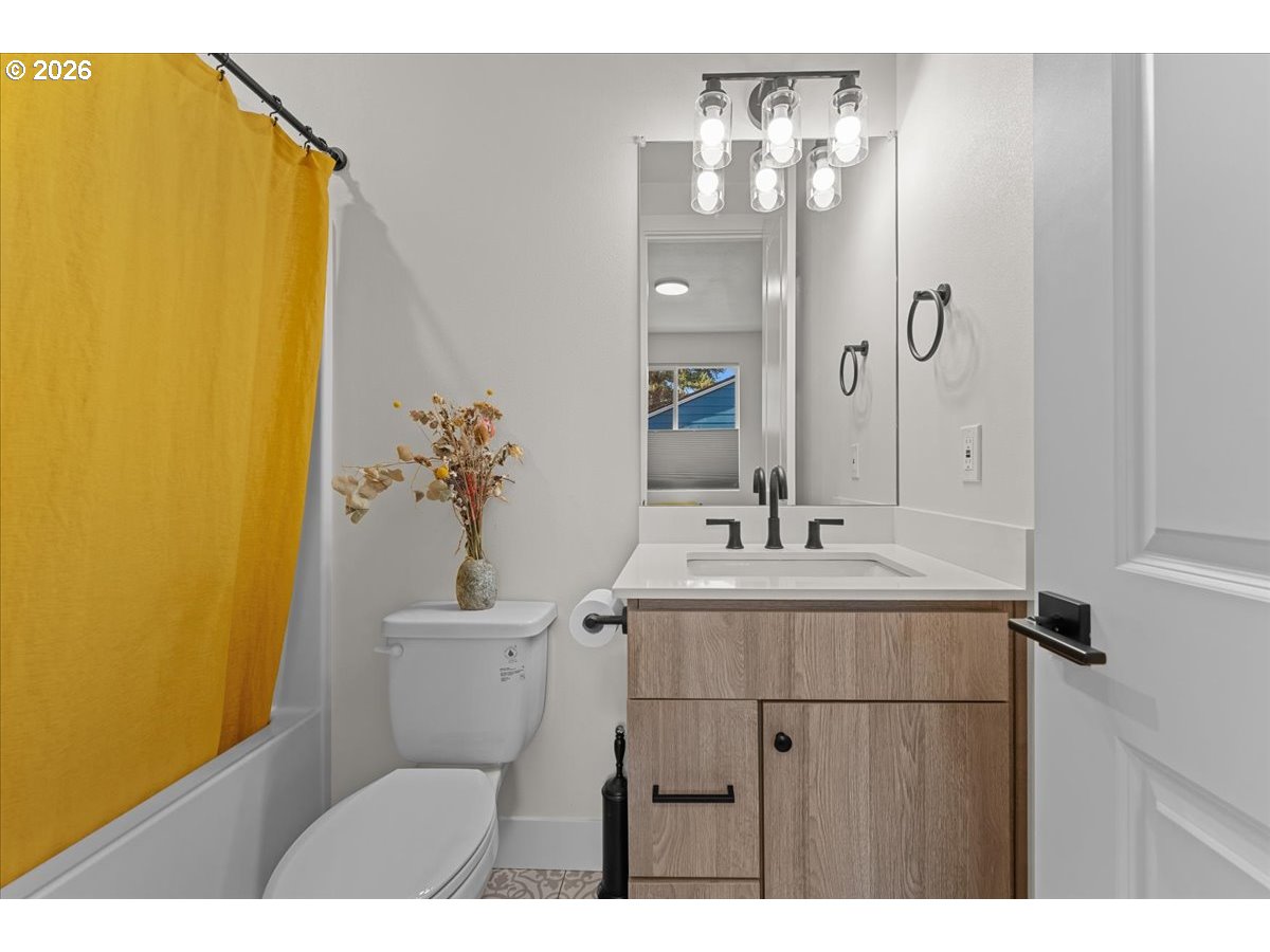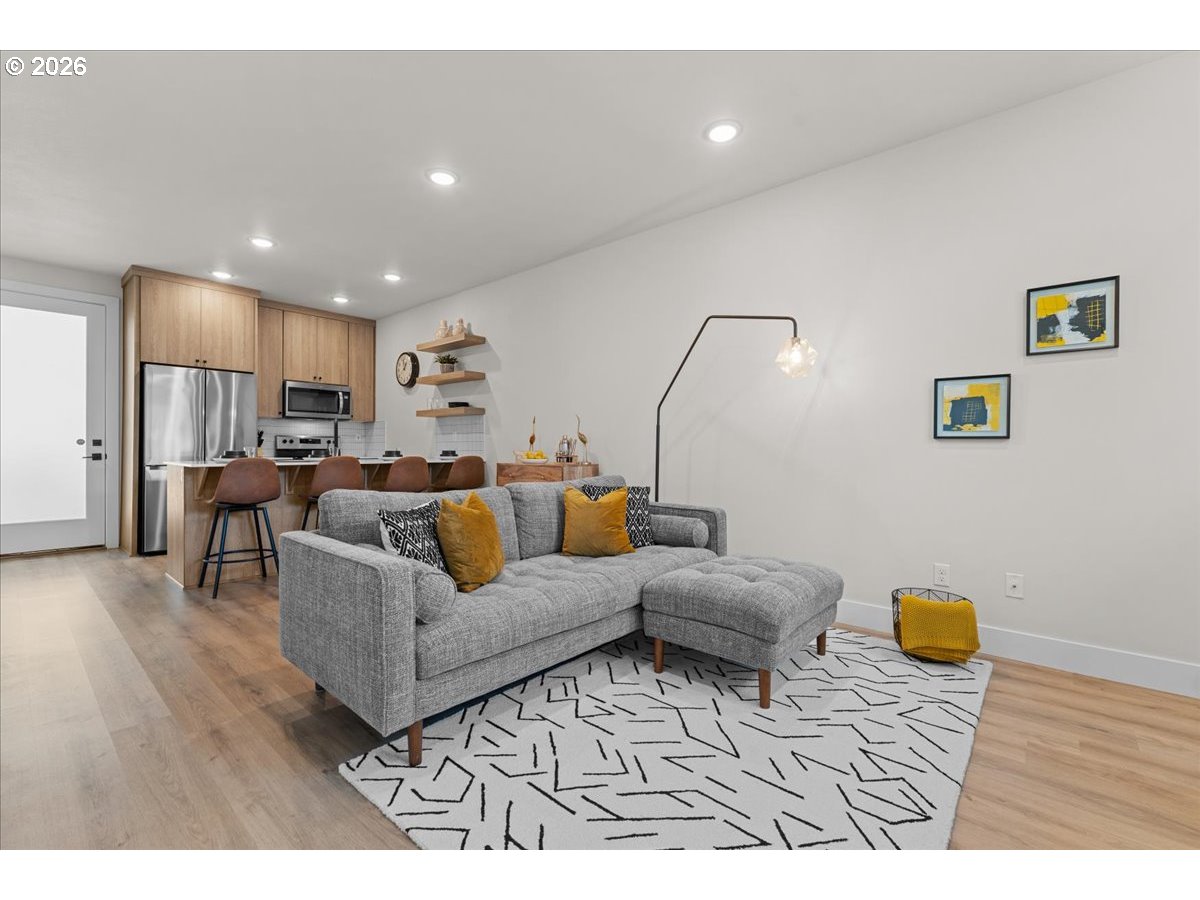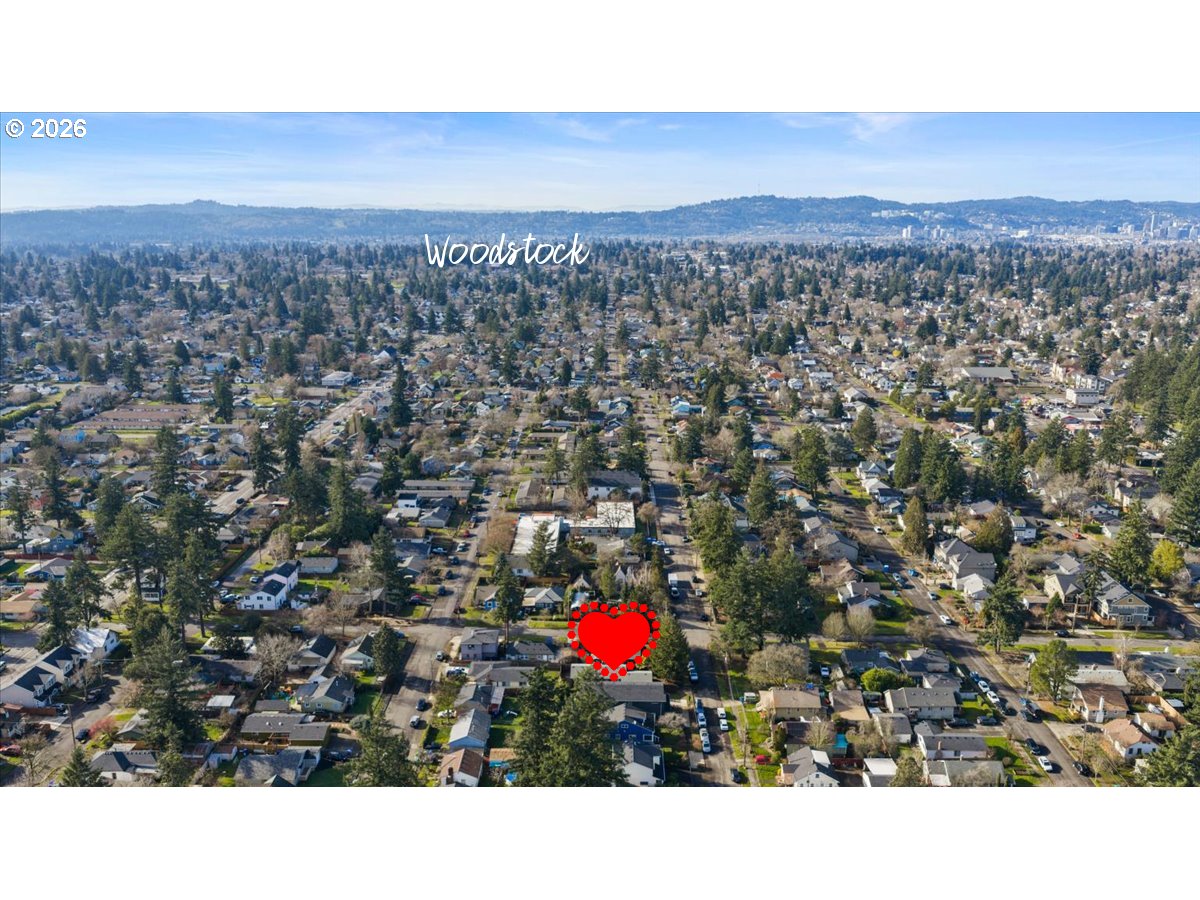 Modern style meets a great SE location—NO condo, NO HOA. This home features clean modern architecture, neutral tones, and an open-concept layout that feels bright and inviting. The primary bedroom includes an ensuite bath with tub/shower, plus a second full bath for guests and the second bedroom. Upstairs laundry makes life easy, with washer and dryer included. The kitchen has sleek tile, floating shelves, and SS fridge included. Air conditioning keeps things comfortable year-round. Just enough backyard space to make it your own! Steps from Mt. Scott Community Park and around the corner from Woodstock, with plenty of shopping, dining, and everyday conveniences nearby. Truly move in ready, schedule your private showing today! [Home Energy Score = 9. HES Report at https://rpt.greenbuildingregistry.com/hes/OR10244137]