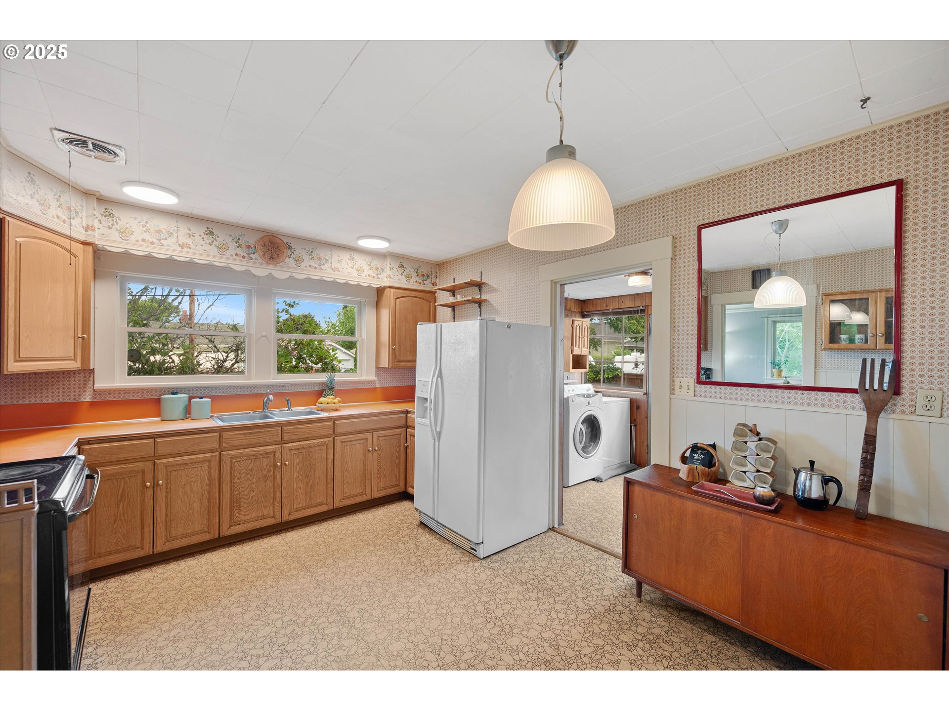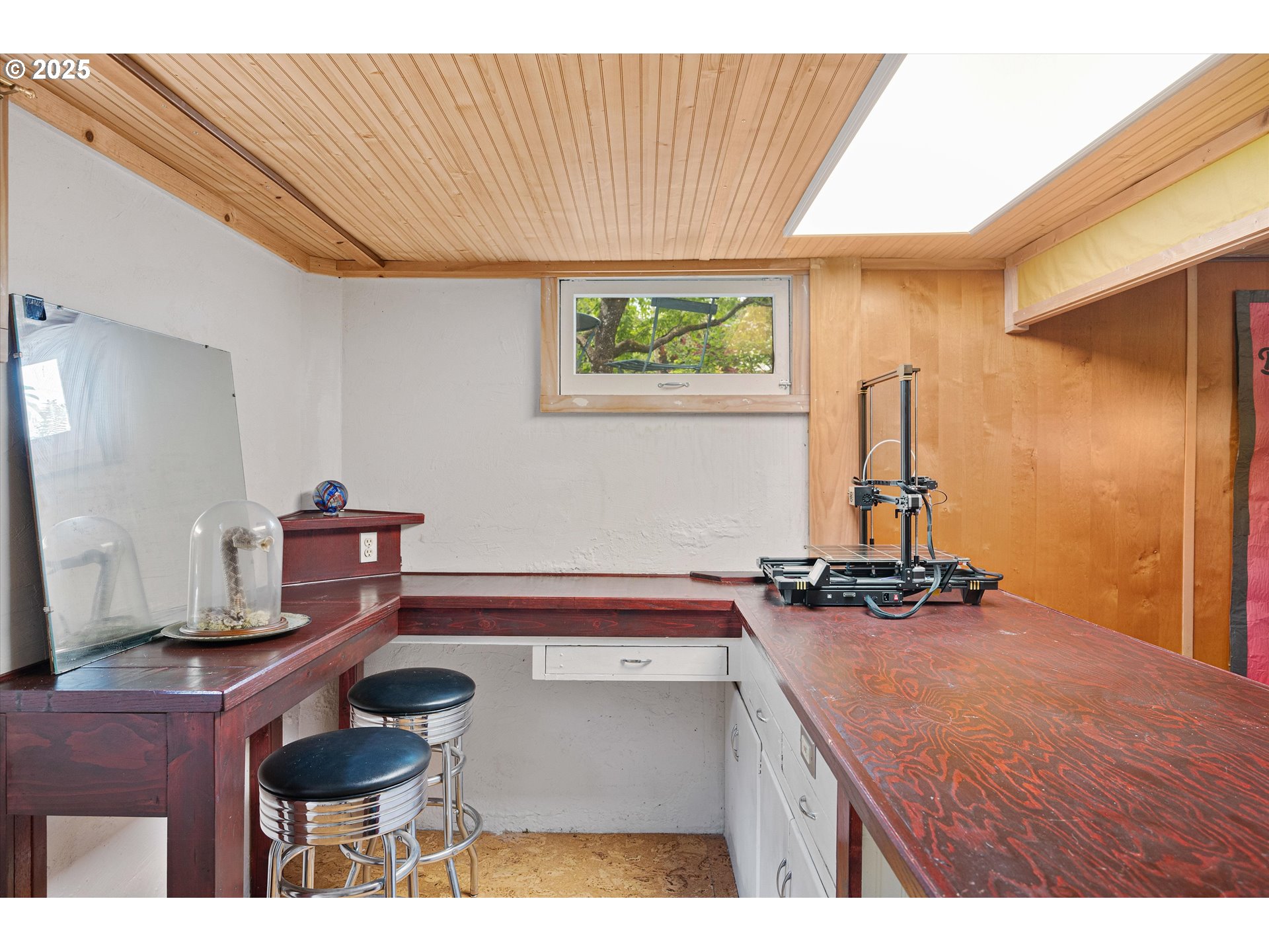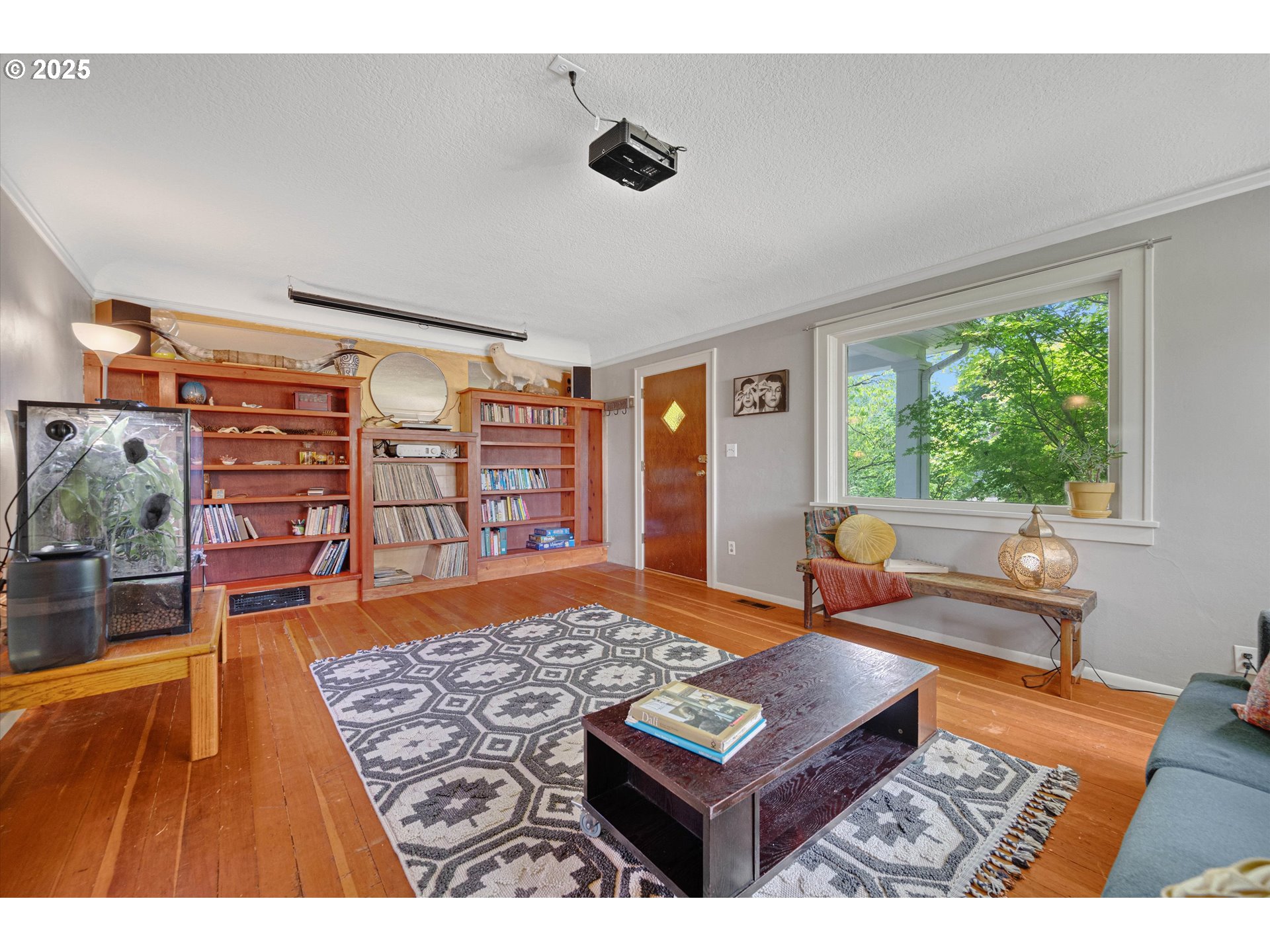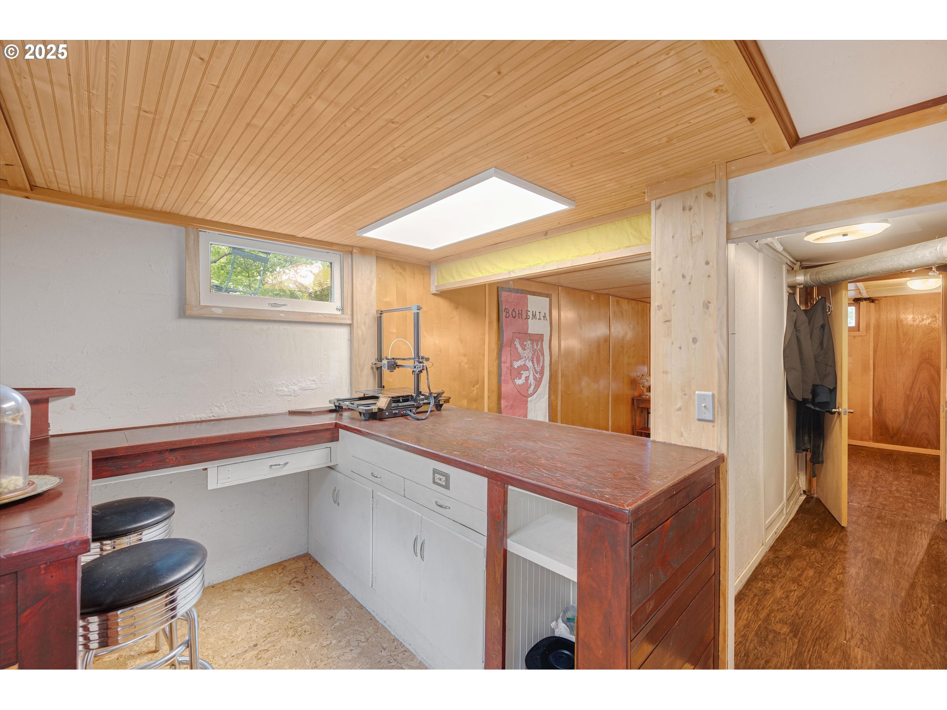 Original Charm Meets Modern Living in the Heart of North Portland!Vintage vibes and modern upgrades come together on a sunny corner lot in the vibrant Portsmouth neighborhood. This light-filled, single-level 3-bedroom, 1.5-bath home is move-in ready, stylish, and full of character. Inside, you’ll find an open and inviting living space with custom built-ins, original charm, and tons of natural light. The thoughtfully designed floorplan includes three generous bedrooms on the main level, plus a versatile bonus space in the basement—perfect as a guest suite, family room, home office, or creative studio—with egress, an exterior entrance, and a built-in bar.Enjoy your own private backyard oasis: mature landscaping, a covered patio for year-round lounging, a secret side garden, detached garage and covered bike storage. Recent updates include a newer roof, updated HVAC, fresh interior paint, and more.Prime location just blocks to New Seasons Market, the University of Portland, Columbia Park (pickleball, splash pad, and soccer field await), and your go-to St. Johns and Kenton favorites like Gracie’s Apizza, Daydreamer Coffee, Sparrow Bakery, Chill N Fill food cart pod.