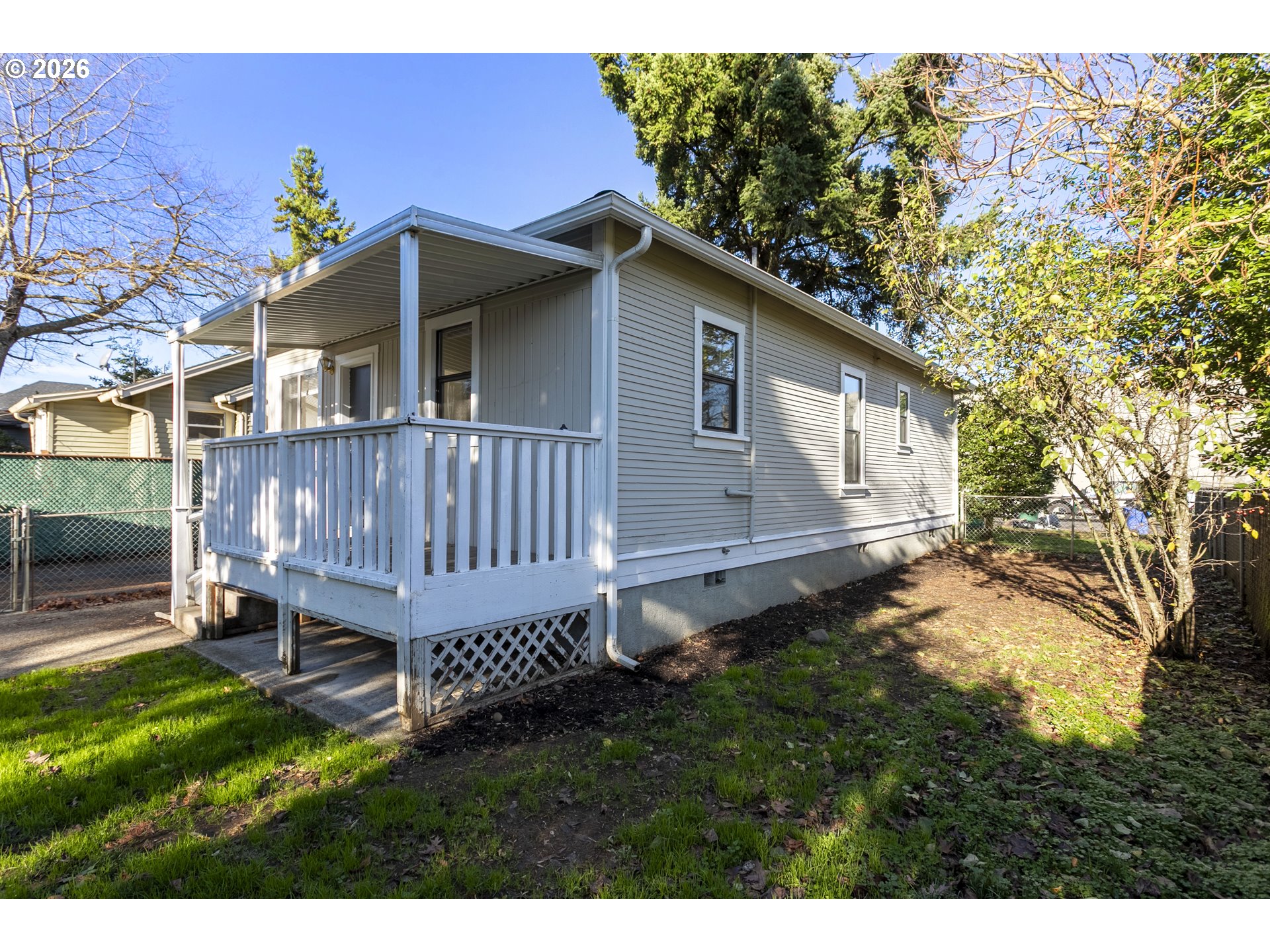 Updated, historic 1911 bungalow just steps from the cultural treasures found in the Jade District along SE 82nd Avenue of the Roses. This charming home boasts lap siding, period molding, and updates throughout. The fully fenced front yard and driveway welcomes visitors to the covered front porch. Step inside to the formal living and dining rooms with high ceilings and period molding. Convenient access to the two bedrooms which share a Jack-and-Jill bathroom with updated fixtures and a tub/shower combo. Spacious kitchen with full suite of appliances and direct access to the mud/laundry room with washer and dryer. Brand new wall frnc to be installed by 2/1/26. Extra-wide rear porch overlooks fenced backyard and has access to the detached garage and basement cellar with bonus storage. Walk/bike score of 92/90 and easy stroll to the 11ac Mt Scott Park and Community Center, schools, shops, cafes, and multiple transit options. Quick commute to downtown and a short drive to I-205. Don’t miss. [Home Energy Score = 6. HES Report at https://rpt.greenbuildingregistry.com/hes/OR10243030]