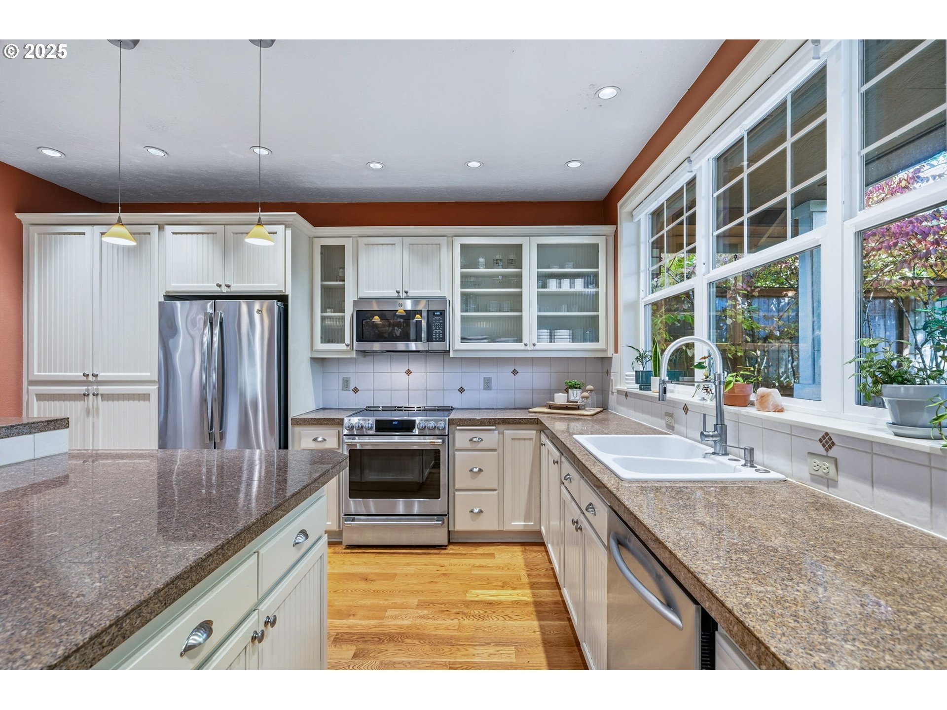 (503) 893-8874Just blocks to the heart of Multnomah Village! This contemporary craftsman offers equal parts modern convenience and classic charm on an enchanting fenced lot. Thoughtful touches throughout include intricate millwork, large windows, and lustrous hardwoods. The generous open kitchen welcomes cooking and conversation with an island, breakfast bar, built-in desk, modern appliances, and lots of light. The airy formal dining room leads to an impressive great room with soaring vaulted ceilings, gas fireplace, and slider out to the spacious deck. Deluxe primary suite on the main floor! The plush bedroom offers more vaulted ceilings, stylish design, a private door out to the deck, and dream en suite bathroom with double sinks, vanity, clawfoot tub, and walk-in closet. Endless possibilities for work and play upstairs with two additional bedrooms, open loft, bonus room, flex space, and lots of storage. Beautifully tiered backyard that flows from deck to patio to flat grassy area, all surrounded by established landscaping. Attached two-car garage. Just minutes to the best dining, shopping, and entertainment in Multnomah Village. Ask for features list! Updated HVAC, roof, water heater, appliances! [Home Energy Score = 5. HES Report at https://rpt.greenbuildingregistry.com/hes/OR10144915]
