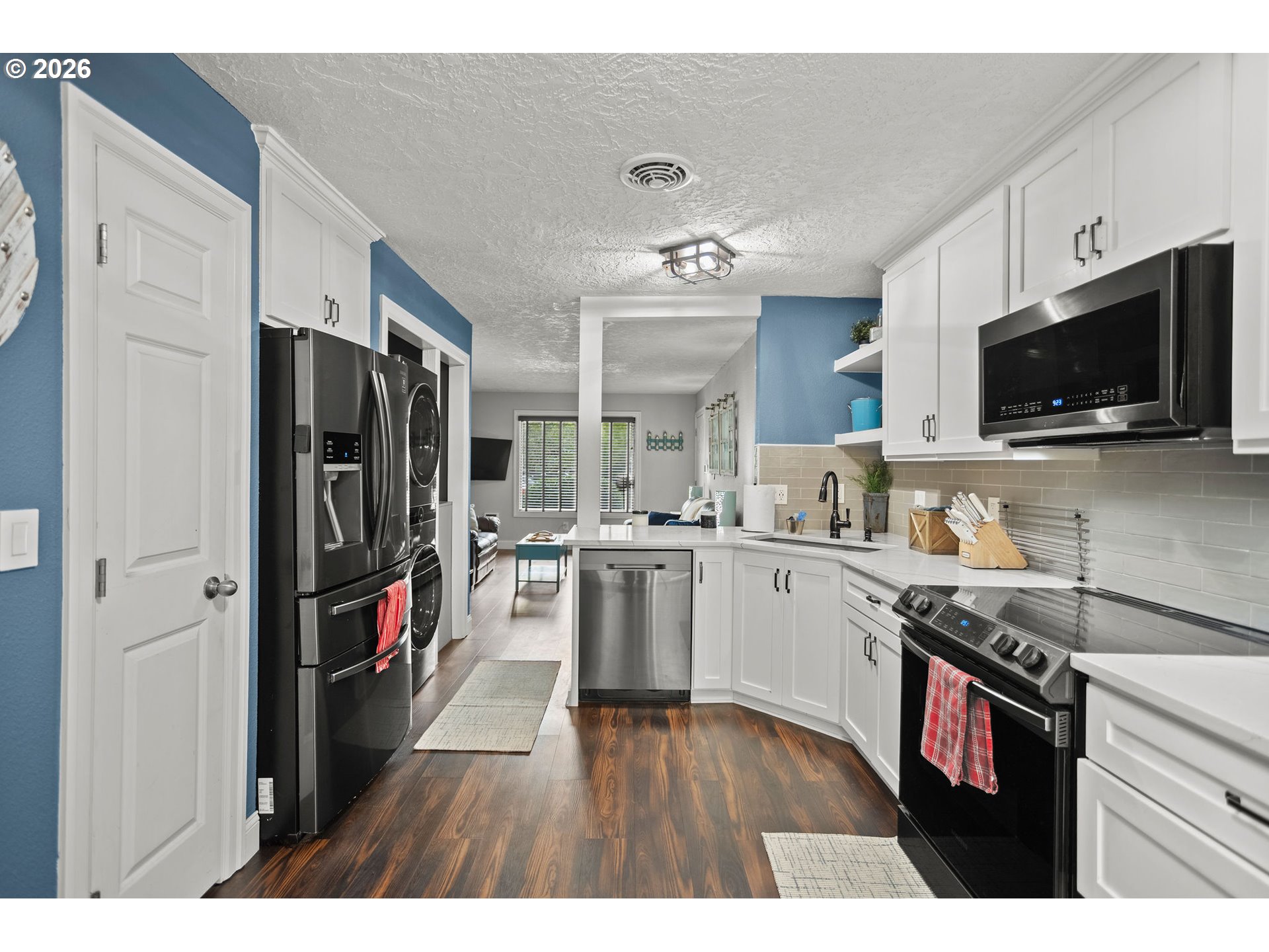 This stylish, renovated, ground-floor condo blends modern convenience with private outdoor living in the heart of one of Portland’s most vibrant neighborhoods. Boasting an impressive 93 Walkscore, this home puts the best of St. Johns right at your doorstep; you are just steps away from a movie or a pint at McMenamins St. Johns Theater & Pub and within easy walking distance to local coffee shops, eclectic restaurants, and daily grocery needs.The interior was thoughtfully renovated within the last four years and features luxury vinyl plank flooring, updated lighting, and custom blinds throughout the 771-square-foot layout. The kitchen is a standout with its quartz countertops, custom cabinetry, and high-end appliances, while the bathroom offers a complete overhaul including a new tub/shower, vanity, and charming shiplap accents. Practicality is built-in with an in-unit washer and dryer and a dedicated storage unit in the basement. Perhaps the rarest feature for condo living is the private, fenced backyard with a patio, providing a secluded outdoor oasis. With a low $330 monthly HOA that covers water, sewer, and garbage, this 2-bedroom gem offers an incredible value in a premier North Portland location.