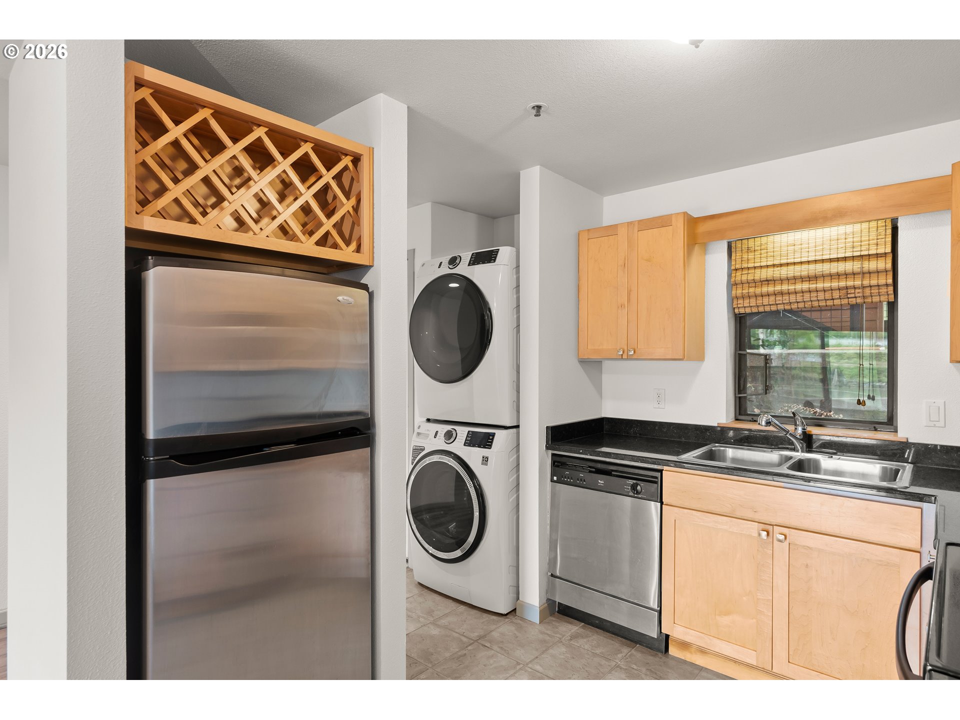 Impressive riverfront condo in prime McCormick Pier location. One-level ground floor unit boasts 180-degree views of the Willamette River and direct access to a 15-mile waterfront walking/biking path. Incredible amenities include 24-hour security, community BBQ, firepit, pool, and hot tub. Deeded, covered parking conveniently located directly across from the building. Inside features an open floorplan flooded with natural light. Fully equipped kitchen with stainless steel appliances and granite counters. Spacious living/dining room combo with slider to covered patio. The primary bedroom features a double closet with organizers and beautiful river views. Outstanding location near restaurants, entertainment, parks, and shops.