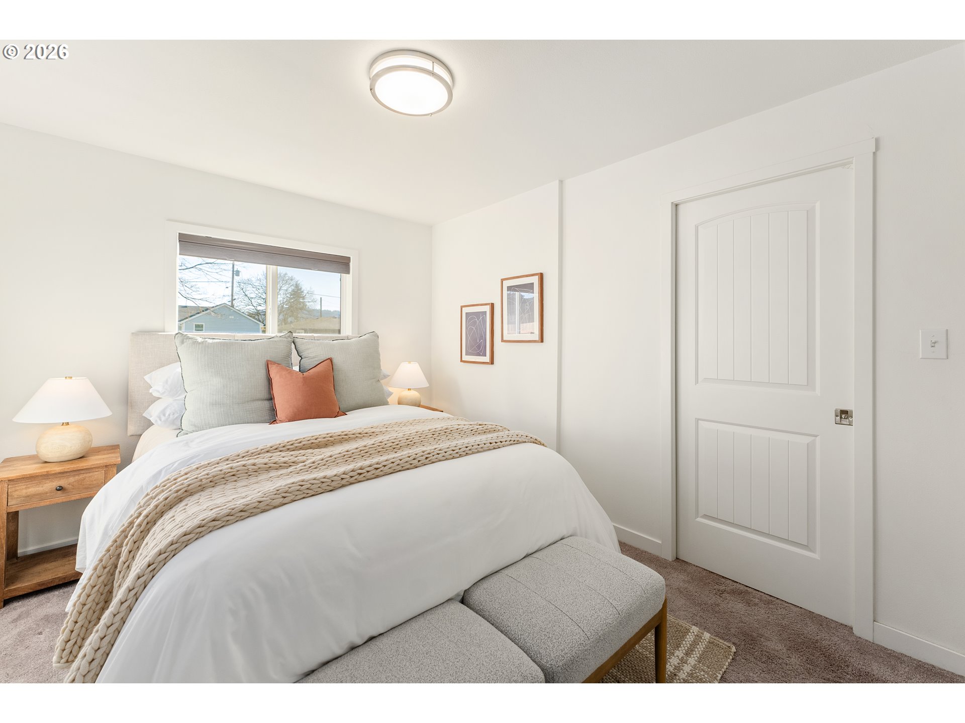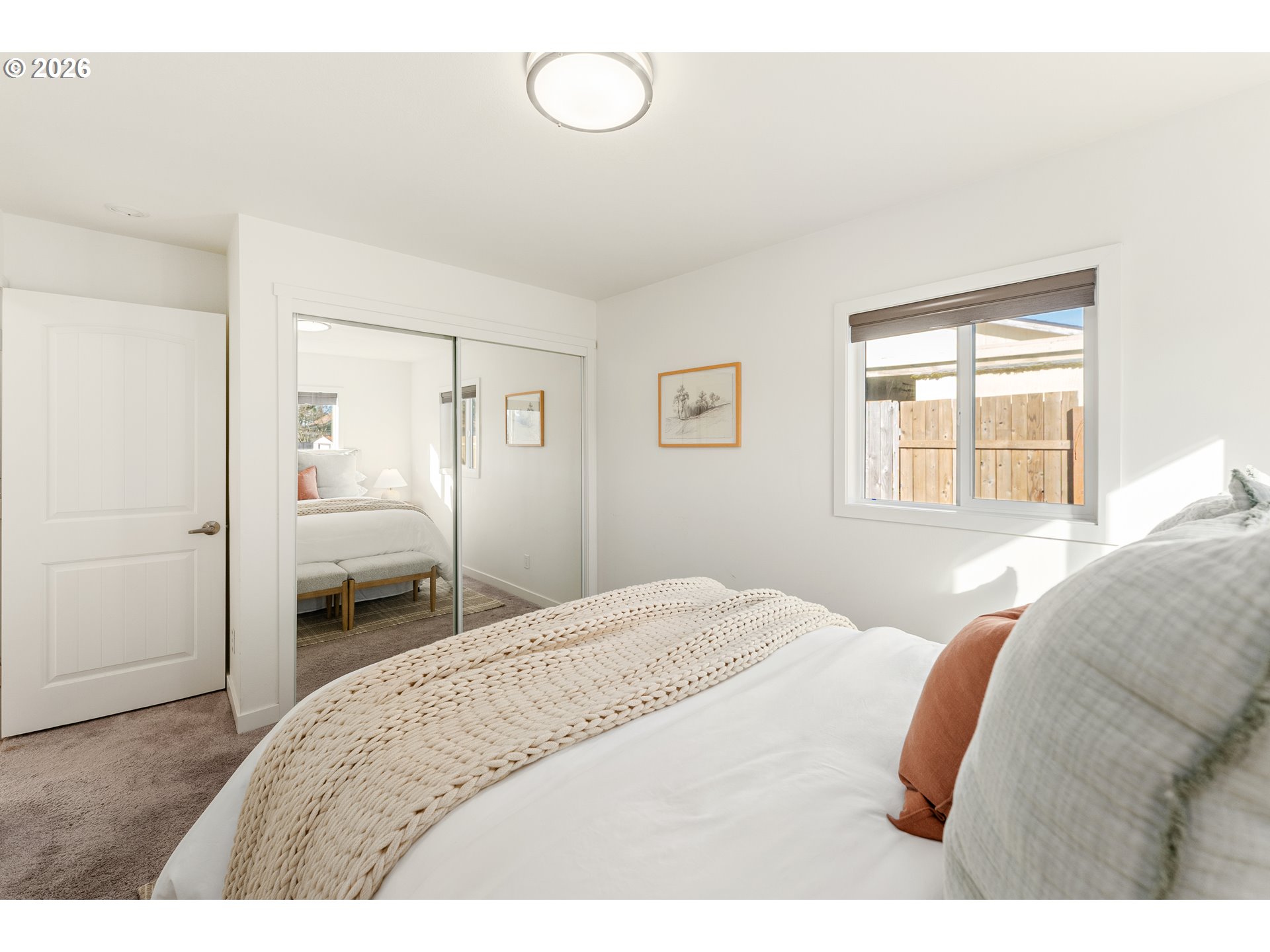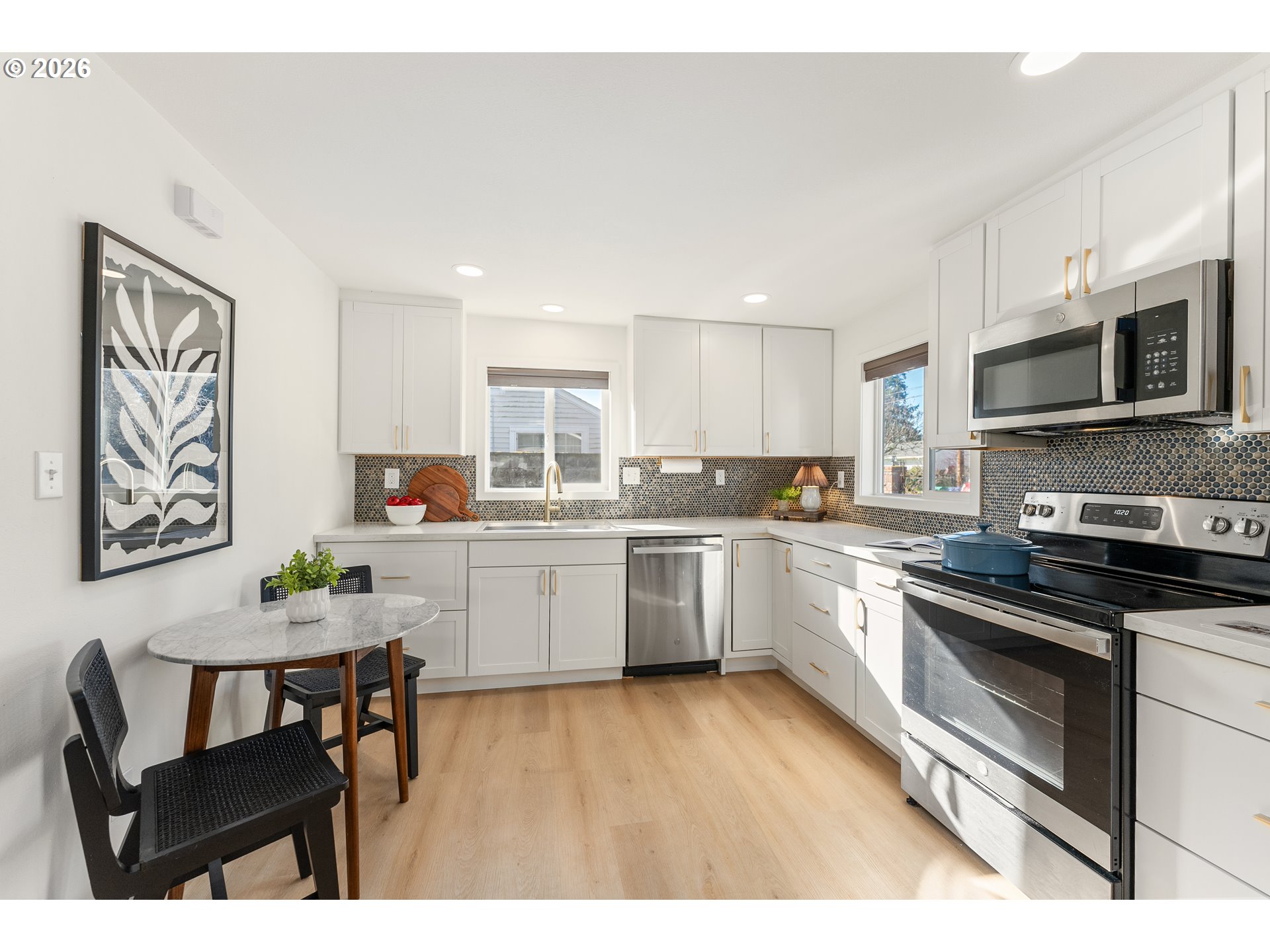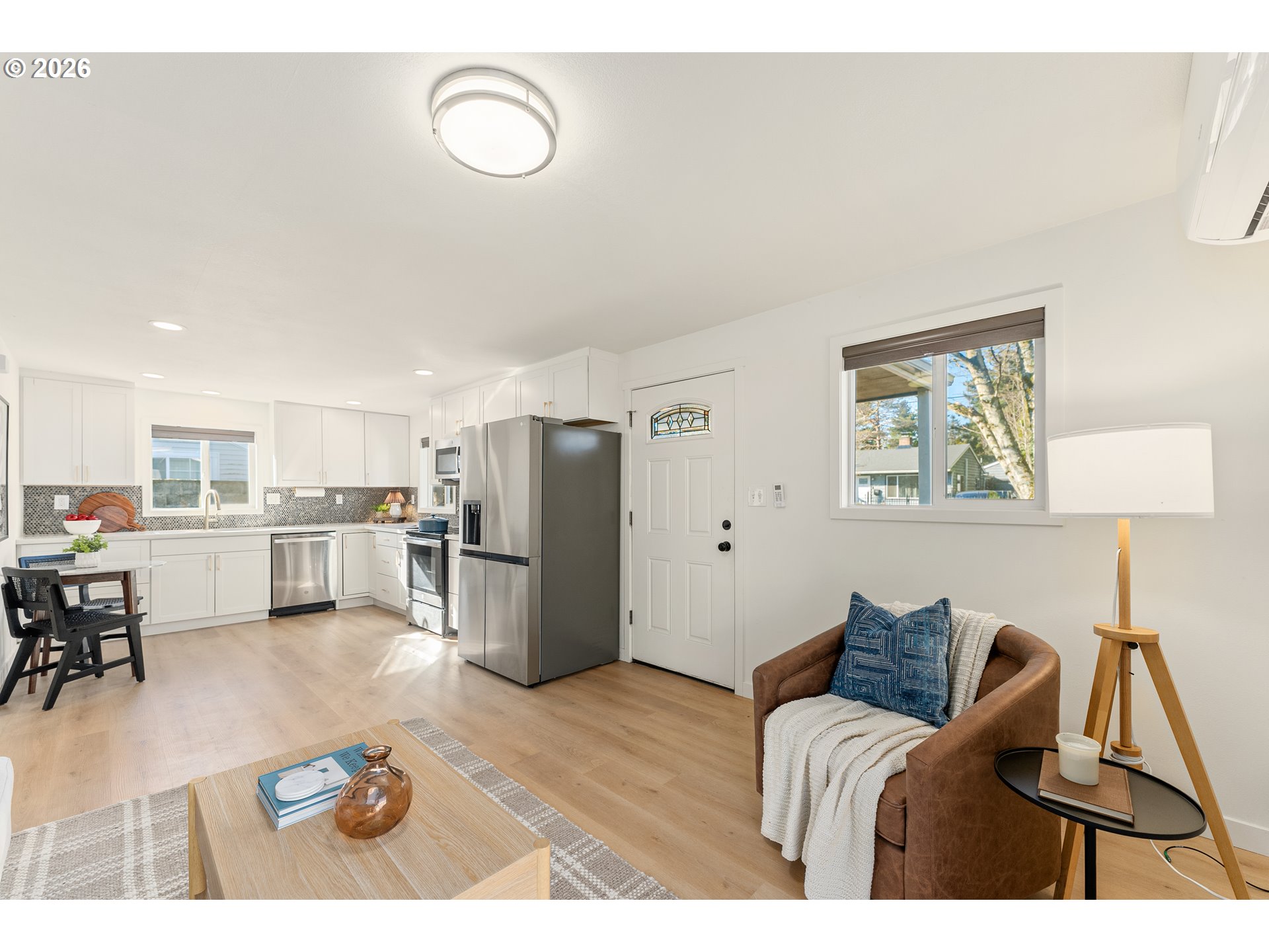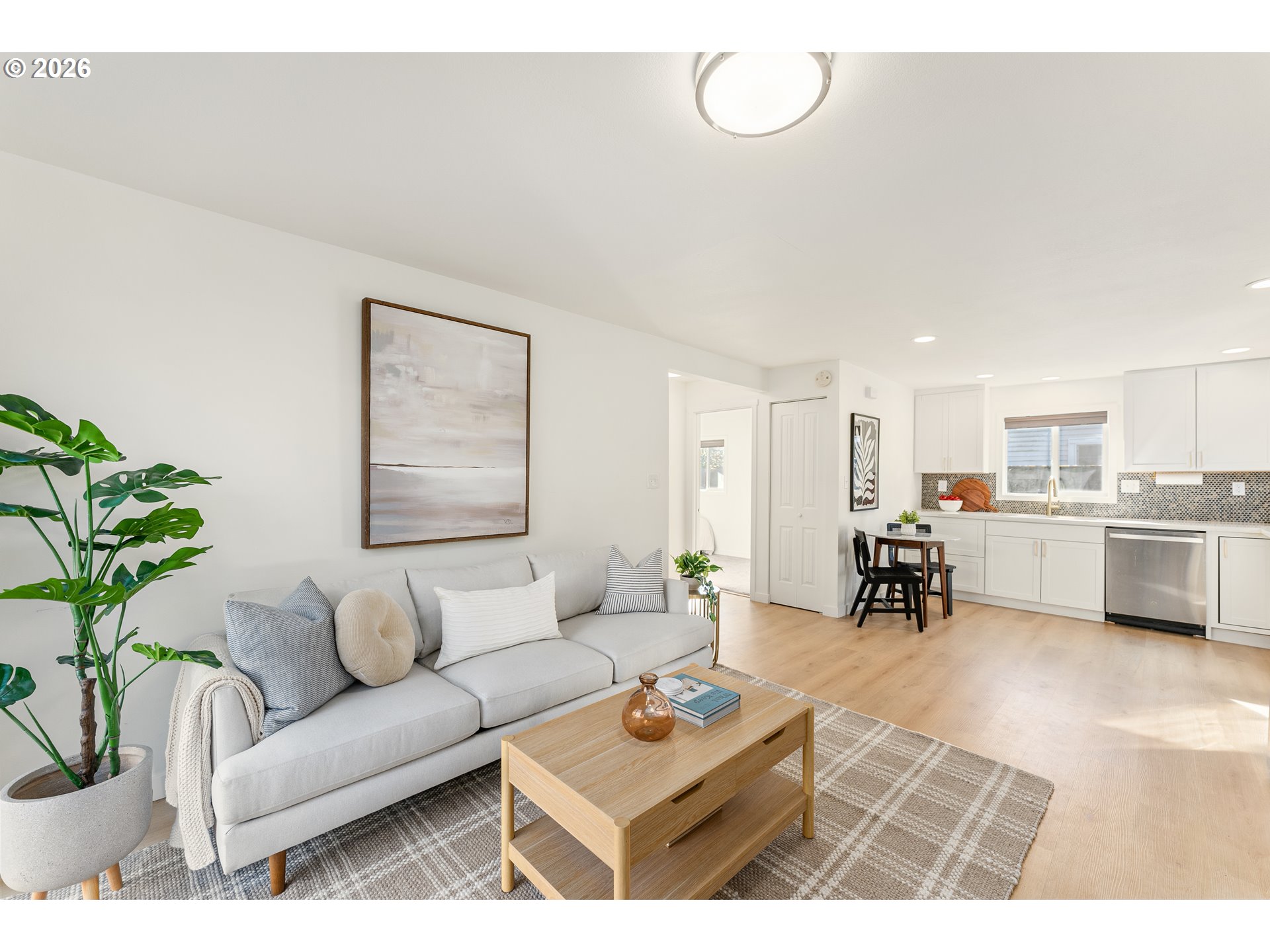 Fully remodeled, turn-key condo alternative on a fantastic lot in prime Brentwood-Darlington! Open living, dining, and kitchen spaces make this home feel much larger than its square footage. Sliding doors from the living room lead to a private deck, perfect for entertaining or relaxing outdoors. The kitchen features quartz countertops, a tile backsplash, and stainless steel appliances including GE dishwasher, GE smooth-top electric range, GE over-the-range microwave, and LG refrigerator. Two bedrooms with plush carpet and a full bathroom on a single level make everyday living easy. Expansive front and back yards plus a detached shed provide space to garden, play, or store. Nearby parks and local amenities make this move-in ready home a rare find in a prime location. OPEN SUN, 2/22 11AM-1PM [Home Energy Score = 9. HES Report at https://rpt.greenbuildingregistry.com/hes/OR10204869]