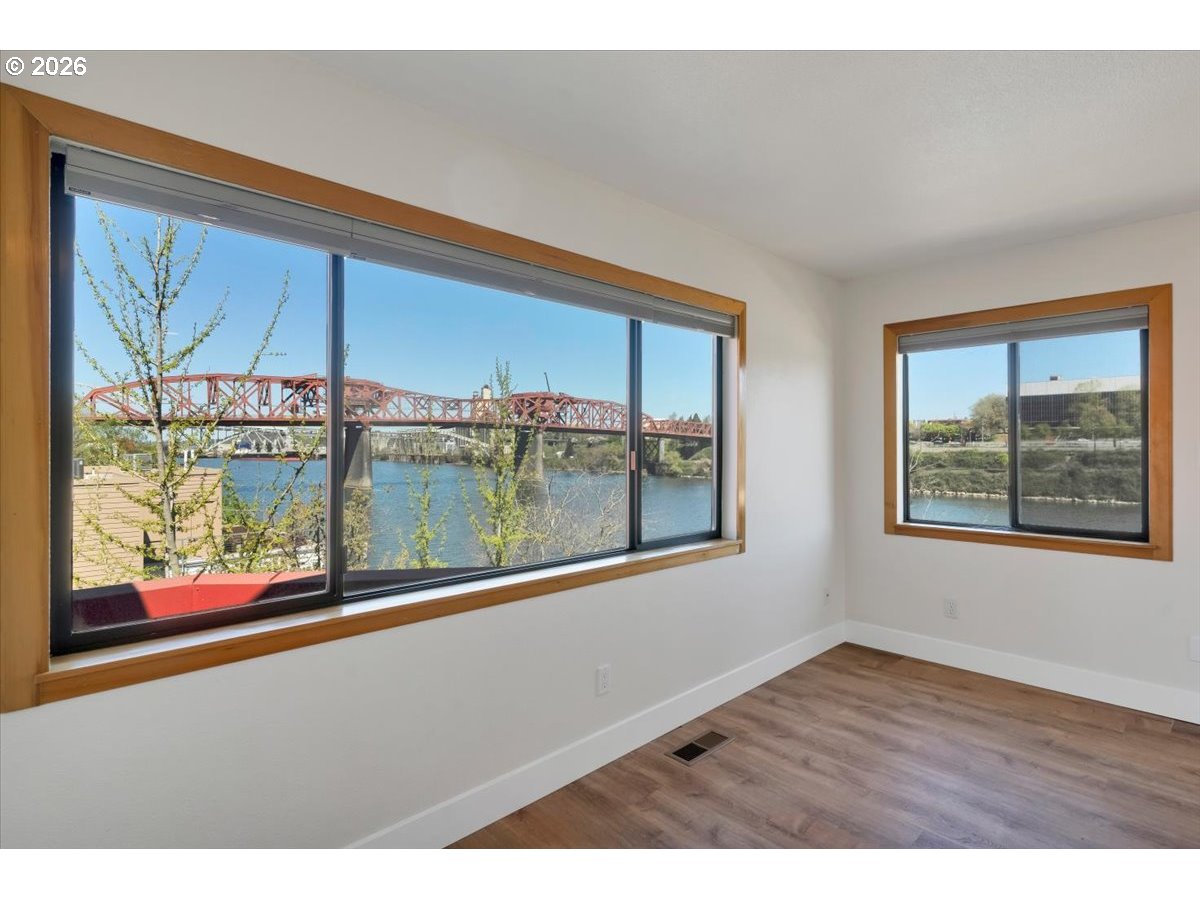 (503) 893-8874Beautiful affordable riverfront luxury behind the gated McCormick Pier Condos. Awesome river view and Broadway Bridge view looking downriver from the living room & deck, and bedroom. Close to riverfront walking path. Granite counters, luxury vinyl plank flooring, Common area swimming pool, fire pit, and covered parking. Please see our video tour. See Instructions.