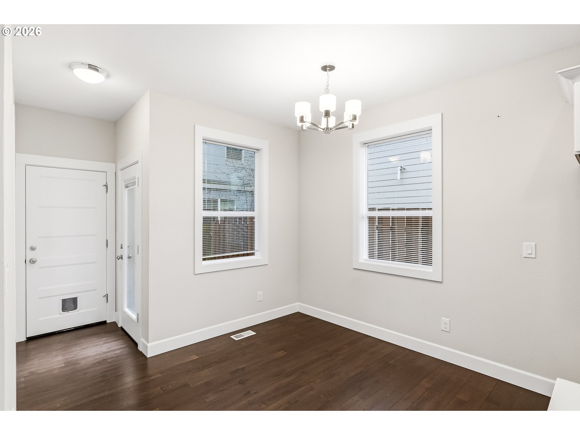 Modern comfort meets thoughtful design in this 2018-built contemporary home located in the Brentwood-Darlington neighborhood. Situated on a corner lot just moments from Harney Park, this two-level home offers a bright and open layout with stylish finishes throughout. The main level features beautiful hardwood floors and expansive floor-to-wall windows that fill the living spaces with natural light. The sleek kitchen is appointed with quartz countertops and stainless steel appliances. The kitchen flows seamlessly into the living and dining areas, where a cozy gas fireplace creates a welcoming focal point. Upstairs, you’ll find all three bedrooms, including the primary suite, along with two full bathrooms featuring elegant tile flooring. A conveniently located laundry room on the second floor adds everyday ease right where you need it most. Outside, enjoy a private fenced yard with a patio—perfect for relaxing, entertaining, or low-maintenance outdoor living. Additional highlights include a one-car attached garage and modern contemporary styling throughout. With parks, neighborhood amenities, and easy access to Bike paths, such as the I205 multiuse path & Springwater corridor, this home offers the perfect blend of comfort, style, and location. [Home Energy Score = 6. HES Report at https://rpt.greenbuildingregistry.com/hes/OR10245782]
