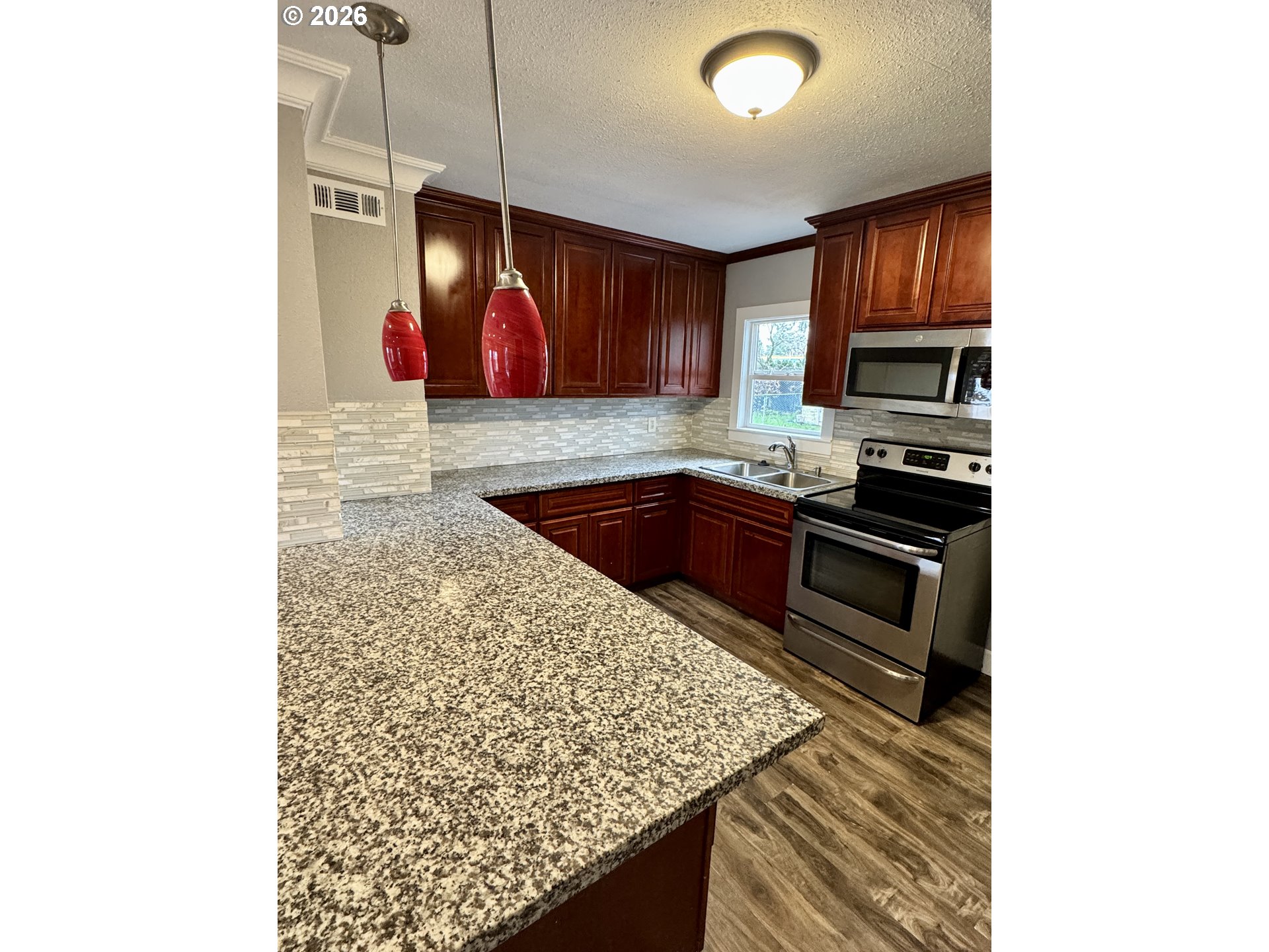 Move in ready home in Portland’s Lents neighborhood with recent updates throughout. The interior has been freshly painted, and new carpet was installed in two of the bedrooms. Updated flooring runs through the main living areas, creating a clean and comfortable space.The kitchen features granite countertops, a tile backsplash, and stainless steel appliances, offering a functional layout for everyday living. The living room is open and bright with plenty of natural light.The primary bedroom includes vaulted ceilings and a ceiling fan for added comfort. One of the standout features of this property is the large fenced backyard, offering plenty of space for outdoor activities, gardening, pets, or future possibilities.Bring your refrigerator, washer, and dryer and move right in. Conveniently located near Lents Park, the Portland Pickles baseball field, and with easy access to Highway 26 and I-205 for commuting around the city.