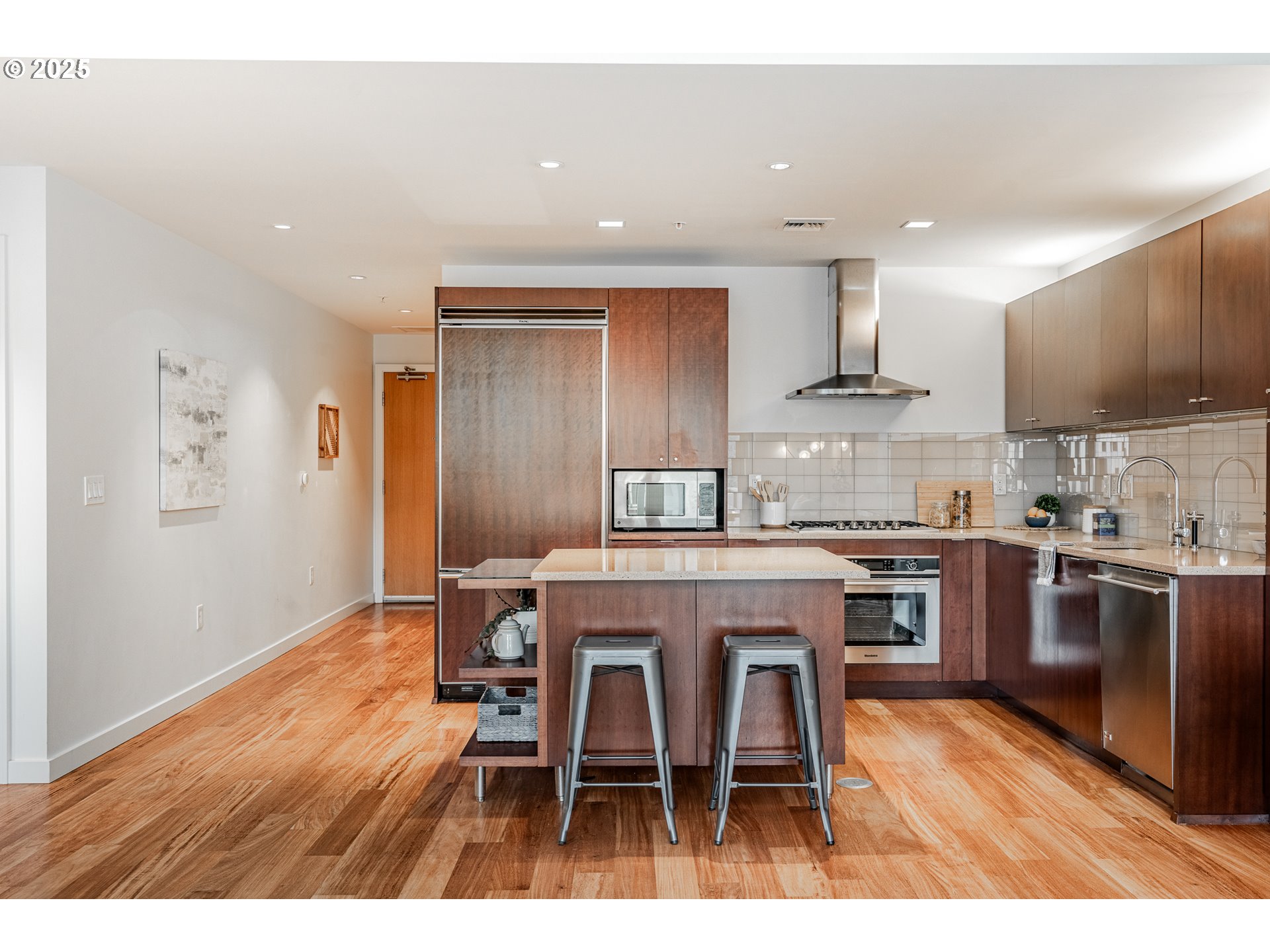 Perched above the city with sweeping panoramic views, this meticulously designed one-bedroom, one-bathroom condominium embodies refined urban living in the heart of Portland. The expansive open-concept main living area showcases a chef’s kitchen with high end cabinetry, premium quality appliances, an elegant tiled backsplash, and a generous custom built island that seamlessly blends form and function. Floor-to-ceiling windows fill the living space with natural light while framing striking cityscapes, and a covered balcony provides the perfect setting for morning coffee or evening relaxation. Thoughtfully designed for both comfort and sophistication, the home features a large laundry room with abundant storage conveniently located off the entry. The primary suite offers a serene retreat with breathtaking views, a custom window bench next to a built-in desk space, and a walk-in closet enhanced by a bespoke organization system. The spa-inspired bathroom exudes modern elegance, complete with a double vanity, elevated finishes, and a spacious layout designed for everyday indulgence. Perfectly situated in one of Portland’s most desirable locations, the South Waterfront, this residence offers a seamless blend of luxury, functionality, and convenience, placing the city’s vibrant dining, shopping, and cultural destinations just moments away. This condo has both storage and parking.