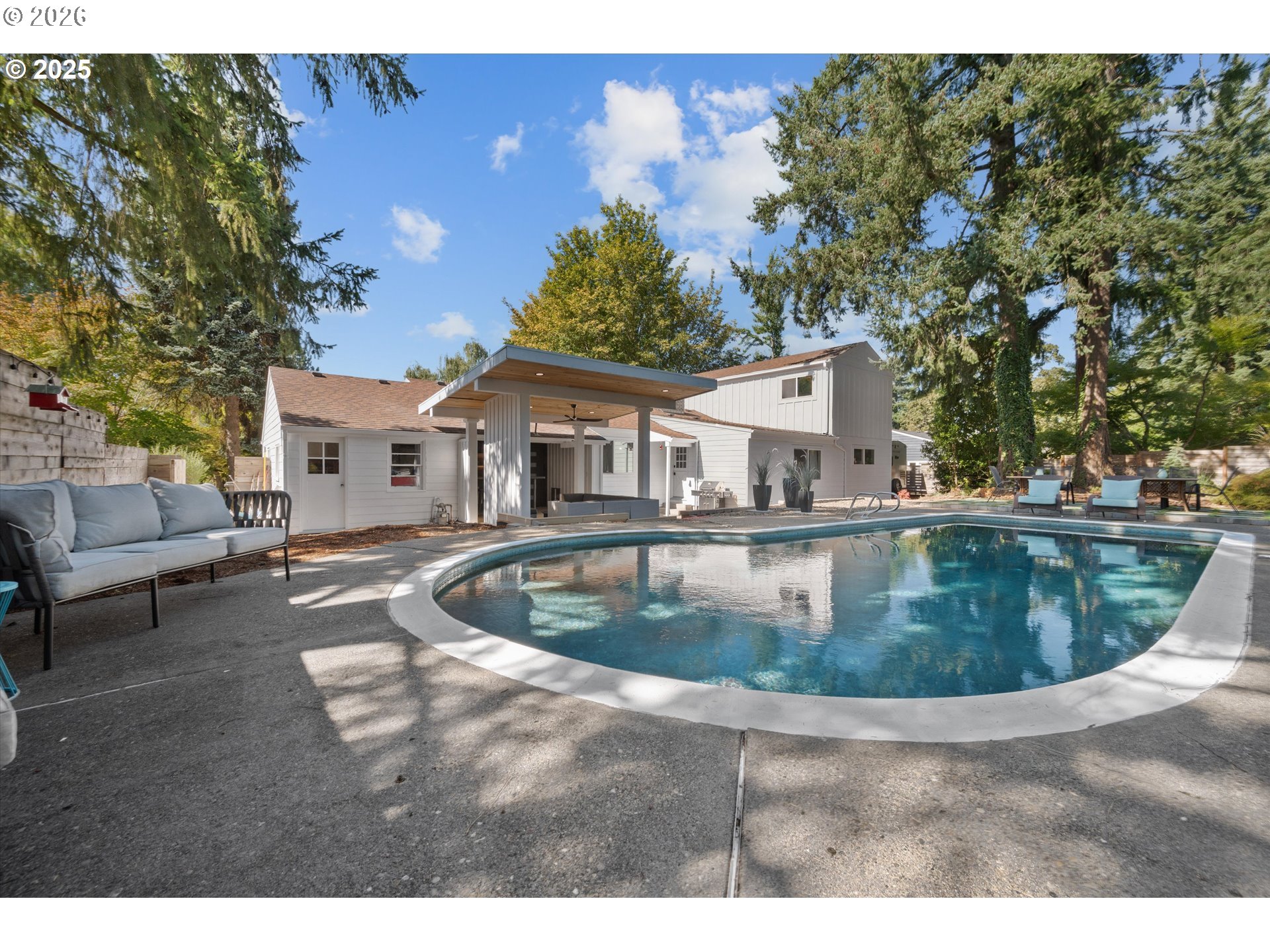 (503) 893-8874Experience private, resort-style retreat in Garden Home — minutes to Multnomah Village, downtown Portland and the westsidesuburbs while living at the end of a quiet street with direct access to walking trails. The highlight is a sparkling in-ground pool, surrounded by multiple decks, a built-in bar with mini fridge, outdoor ceiling fan, and misting system — a perfect setting for entertaining or relaxing. Inside, vaulted ceilings and maple engineered hardwoods frame the open great room. The kitchen features an island with gas range and a sink with backyard views, while the dining area offers a buffet bar and wine cooler. A gas fireplace anchors the living area and flows through to the family room on the opposite side. Three bedrooms are located on the main level, one ideal as a private office, while the upstairs primary suite includes a walk-in shower, double sinks, convenient laundry, and a large walk-in closet that doubles as a dressing room. Recent updates include a new pantry and fourth bedroom/den, along with the practicality of a garage and RV parking. This home blends comfort, function, and everyday luxury. [Home Energy Score = 1. HES Report at https://rpt.greenbuildingregistry.com/hes/OR10241890]