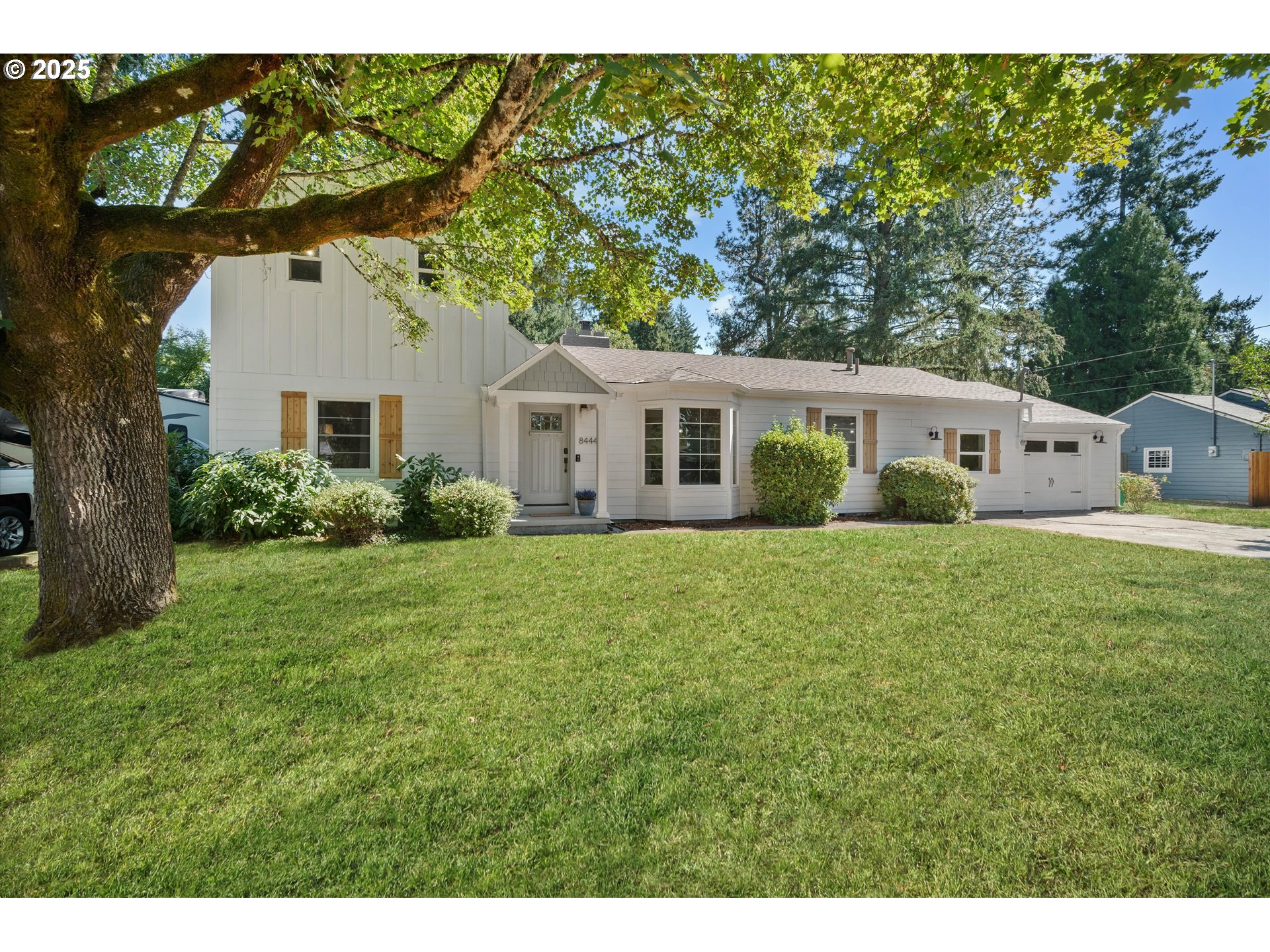 Experience private, resort-style living at the end of a quiet street with direct access to walking trails. The highlight is a sparkling in-ground pool, surrounded by multiple decks, a built-in bar with mini fridge, outdoor ceiling fan, and misting system — a perfect setting for entertaining or relaxing. Inside, vaulted ceilings and maple engineered hardwoods frame the open great room. The kitchen features an island with gas range and a sink with backyard views, while the dining area offers a buffet bar and wine cooler. A gas fireplace anchors the living area and flows through to the family room on the opposite side. Three bedrooms are located on the main level, one ideal as a private office, while the upstairs primary suite includes a walk-in shower, double sinks, convenient laundry, and a large walk-in closet that doubles as a dressing room. Recent updates include a new pantry and fourth bedroom/den, along with the practicality of a garage and RV parking. This home blends comfort, function, and everyday luxury. [Home Energy Score = 1. HES Report at https://rpt.greenbuildingregistry.com/hes/OR10241890]