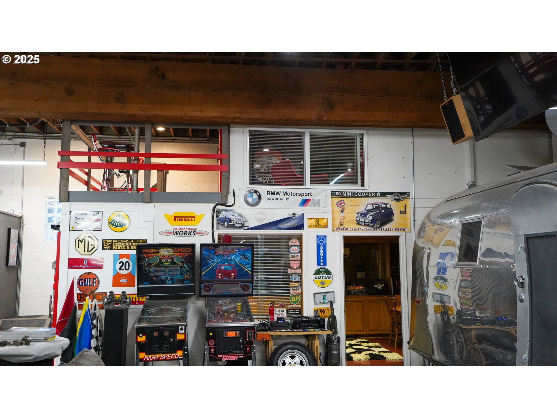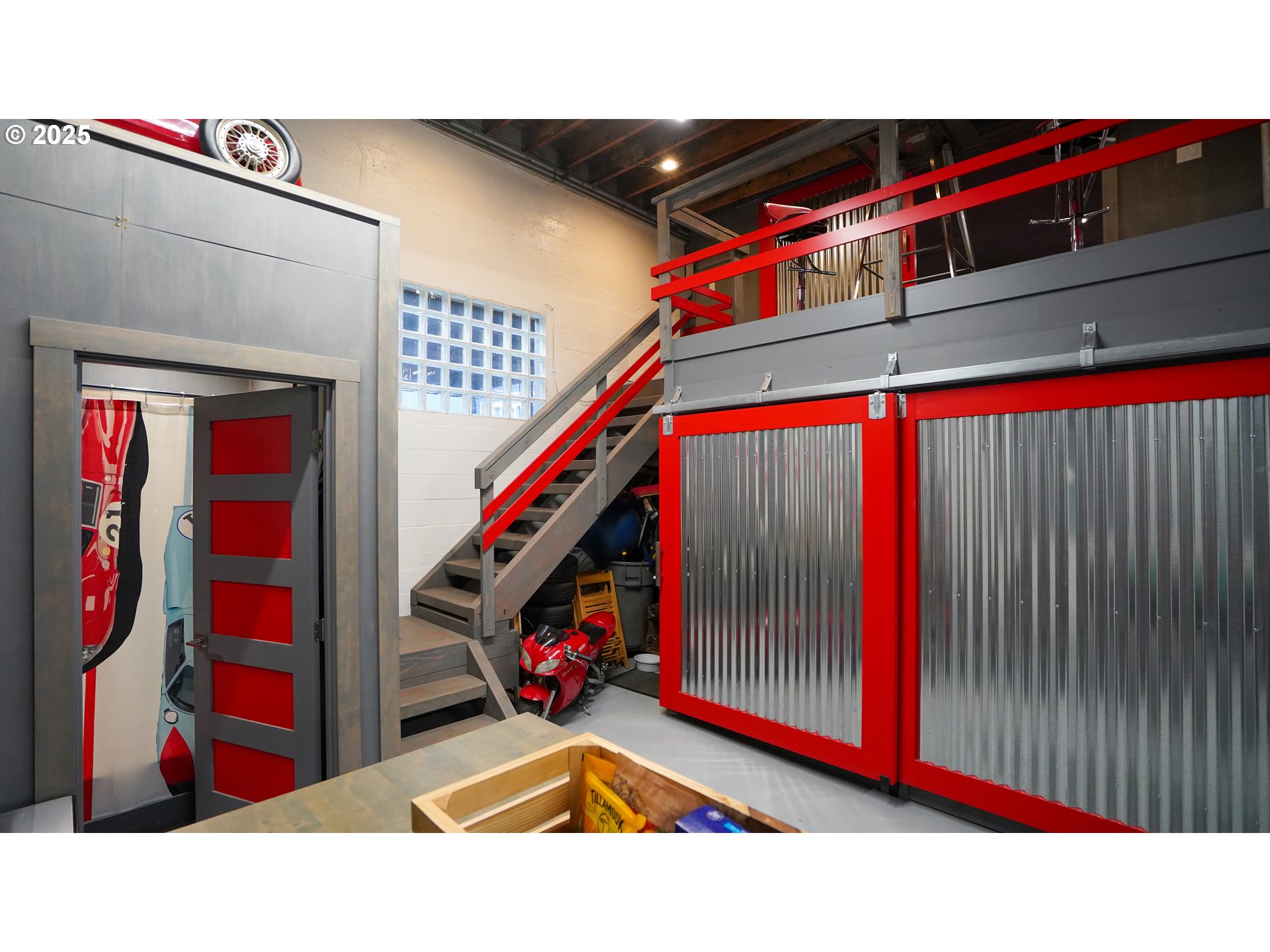 Looking for the ultimate Toy Barn within the urban environment? Here is the Letson Garage, a warehouse used as a private garage and automotive social club for decades. It is located one block from the St Johns Bridge, and just mere blocks from downtown St Johns. Recent improvements and enhancements have brought it into the modern era with lighting, HVAC, security, and seismic updates. The interior is 4200 square feet of open space, while the outside fenced yard is 800 square feet of secured parking. Inside you will find a one bedroom loft upstairs, while a matching office space on the main floor suggests a speakeasy poker room. Full bathroom with a shower, as well as laundry facilities, and a basic kitchen. Access to the side parking area and patio is through a private door. Recent improvements include period-inspired exterior lighting, seismic retrofitting, security screening for windows, a new rollup door, and extensive security system. Vehicle lifts and automotive artwork available for separate purchase. CN2 zoning allows for multiple uses, including a mix of commercial and residential options, as per Chapter 33.130, contact the City of Portland for all land use questions.