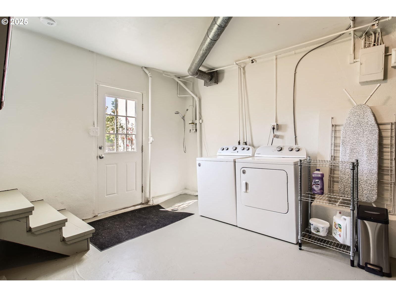 (503) 893-8874Perched in a peaceful setting with sweeping views of Rocky Butte, this charming bungalow/ranch offers remarkable flexibility with TWO SEPARATE UNITS, for shared living or instant income potential. Restored to its original character in 2022, the main home features hardwood floors, an updated kitchen with w/quartz countertops, farmhouse sink, handmade tile, & Miele dishwasher. The living room centers around a cozy wood-burning fireplace, perfect for quiet evenings or entertaining. Charming archways and spacious bedrooms. The lower level provides flexibility to grow with your needs, featuring a daylight basement with a half bath and ample space to create a third bedroom, guest suite, or even a third separate living unit. Brand new water heater this month. All new in 2022: Heat pump furnace, Central Air. A separate apartment (fully renovated in 2025), an original 2BD/1BA apartment complete with its own electrical meter, makes this an ideal standalone unit. It features brand-new casement windows, new plumbing, new electrical, new heat, polished concrete floors, new kitchen cabinets with walnut counters, a vintage range, new water heater, and new washer/dryer hookups. All brand new updates. Enthusiasts of all kinds will appreciate the oversized two-car garage, ideal for use as a studio, workshop, storage, or more, with two brand new garage doors and openers (2024). The large lot opens up endless options: subdivide (buyer to verify), create an urban garden, build additional outbuildings or dwellings by exploring further development. Just blocks from the People’s Courts, local restaurants, new food cart pods, as well as ongoing streetscape improvements on 82nd. Across from a community garden and surrounded by great neighbors, frequent dog walkers to Rocky Butte, and the ideal spot to enjoy sunsets. [Home Energy Score = 5. HES Report at https://rpt.greenbuildingregistry.com/hes/OR10197146]