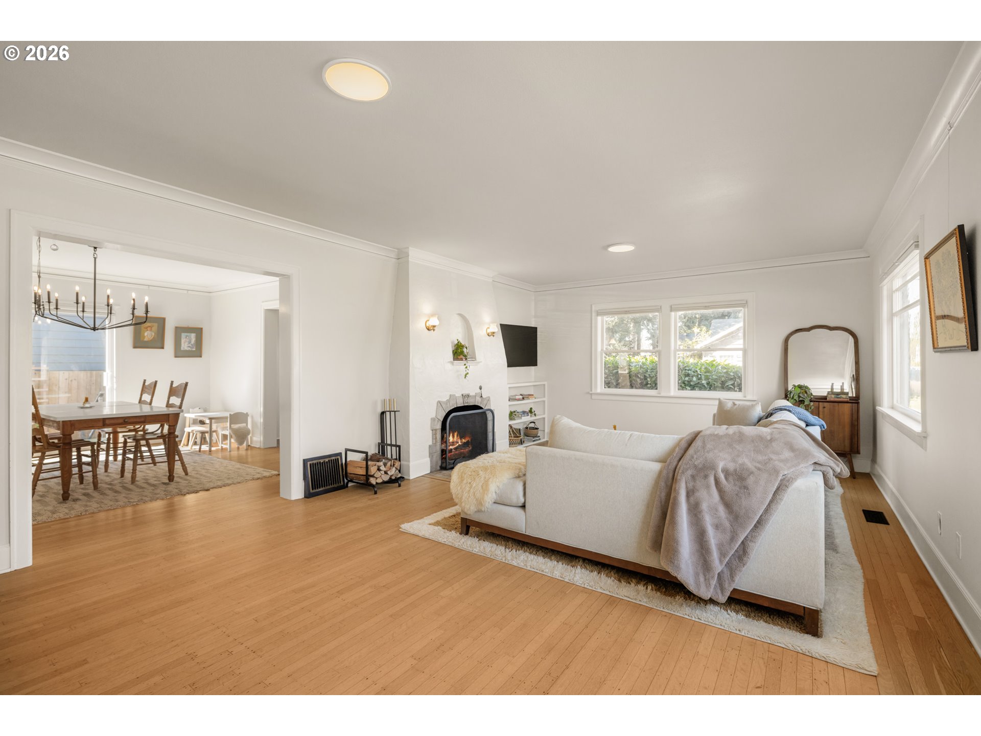 Kenton bungalow offering an ideal urban lifestyle. Featuring 3 bedrooms and 1 bath, the home has been thoughtfully updated throughout. The kitchen features quartz countertops, stainless steel appliances, shaker-style cabinetry, and beautiful hardwood floors. An oversized living room serves as a warm and inviting space, complete with a cozy wood-burning fireplace and an abundance of windows that fill the home with natural light. The primary bedroom is complemented by a sunroom—perfect for a reading nook, home office, or relaxing retreat. Situated on a corner lot, the property enjoys a bright and airy feel throughout. Additional updates include select newer windows and air conditioning for comfort during the warmer months. The lower level offers a large basement ideal for storage, along with a utility room with a washer and dryer. Upstairs, over 350 square feet of accessible unfinished attic space presents incredible potential—perfect for a future primary ensuite, fourth bedroom, or great room. Bring your design ideas and make it your own. Outside, enjoy a low-maintenance, fenced yard and a backyard porch—perfect for relaxing summer evenings. A move-in ready opportunity, ready for its next owner. OPEN HOUSE SAT 4/11 12:00-2:00pm [Home Energy Score = 2. HES Report at https://rpt.greenbuildingregistry.com/hes/OR10205334]