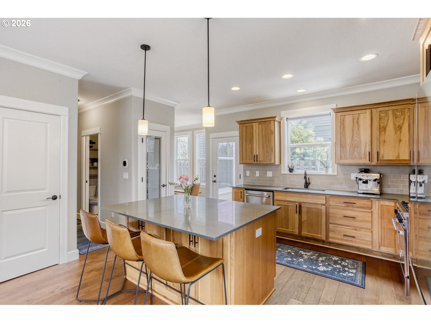 This modern Kenton Craftsman offers 2,238 square feet of thoughtfully designed living space across three versatile levels. Sustainable living is at the forefront with a 5.6KW rooftop solar system and central air conditioning. The main floor features an open-concept layout with engineered wood floors, a cozy gas fireplace, and a chef’s kitchen boasting quartz countertops, a large island, and stainless steel appliances. Upstairs, the primary suite includes a walk-in closet and double vanities, while two additional bedrooms and a full bath provide ample space. The expansive third-floor bonus room is a true standout, perfect for a fourth bedroom, home gym, or media room. Outside, the fully fenced low maintenance outdoor area serves as a private retreat featuring a outdoor sauna, ideal for relaxation. Complete with an attached one-car garage and a prime location just blocks from Columbia, Trenton and Kenton Park and the vibrant shops and dining on Denver Avenue, this 4-bedroom, 2.5-bathroom home combines contemporary style with eco-friendly efficiency. Move-in ready and perfectly situated, this property offers the best of North Portland urban living. [Home Energy Score = 8. HES Report at https://rpt.greenbuildingregistry.com/hes/OR10246478]