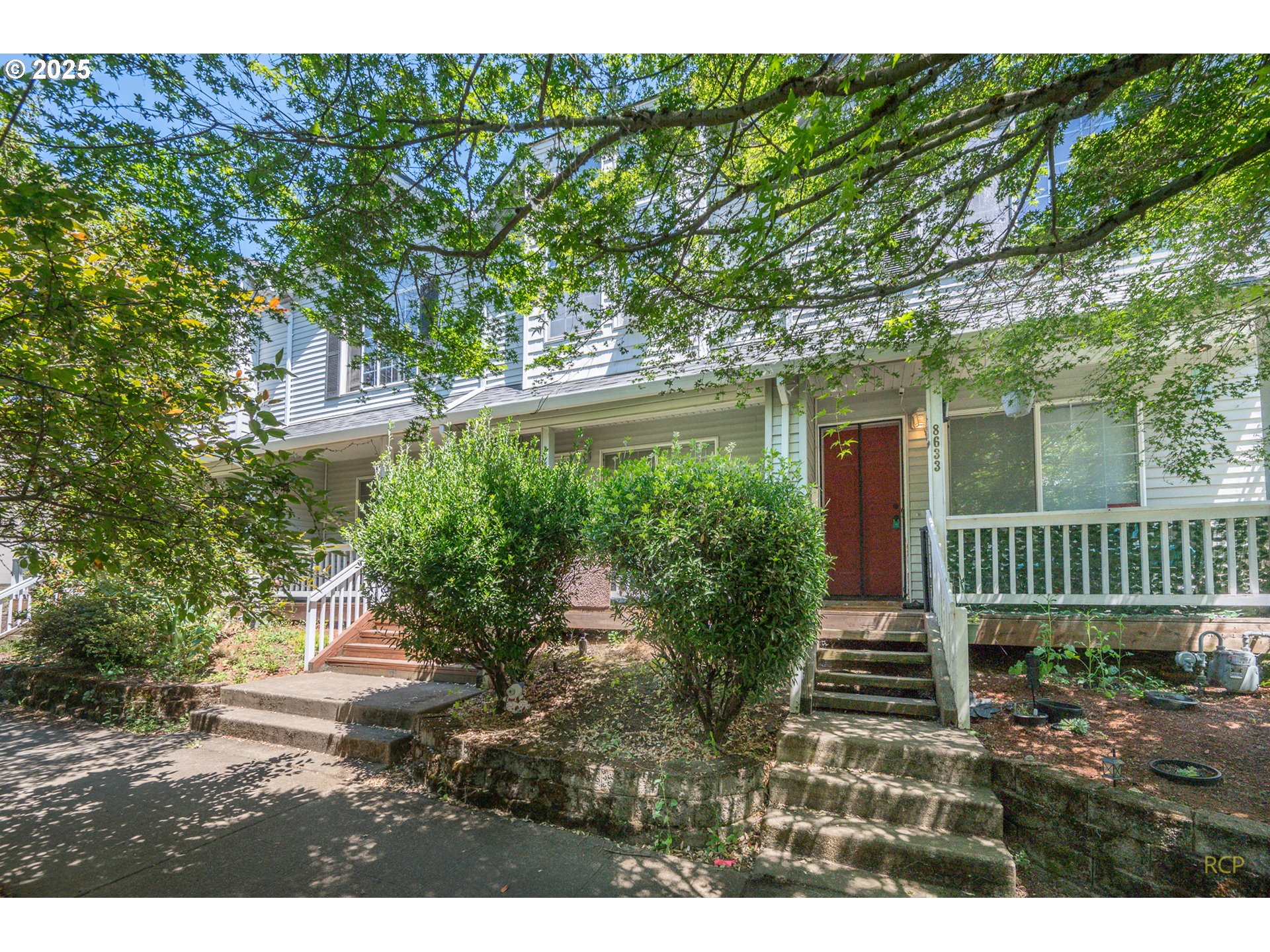 Fantastic rowhouse in heart of hot St Johns. Blocks to Cathedral park, St. Johns Twin Cinema, Pastifico d'Oro, St Johns Pub, Safeway & Starbucks. Wood lam floor, newer interior paint and roof, vaults & skylight. Covered front porch, and patio & off-street parking. No HOA & low taxes. Property now vacant, go and show