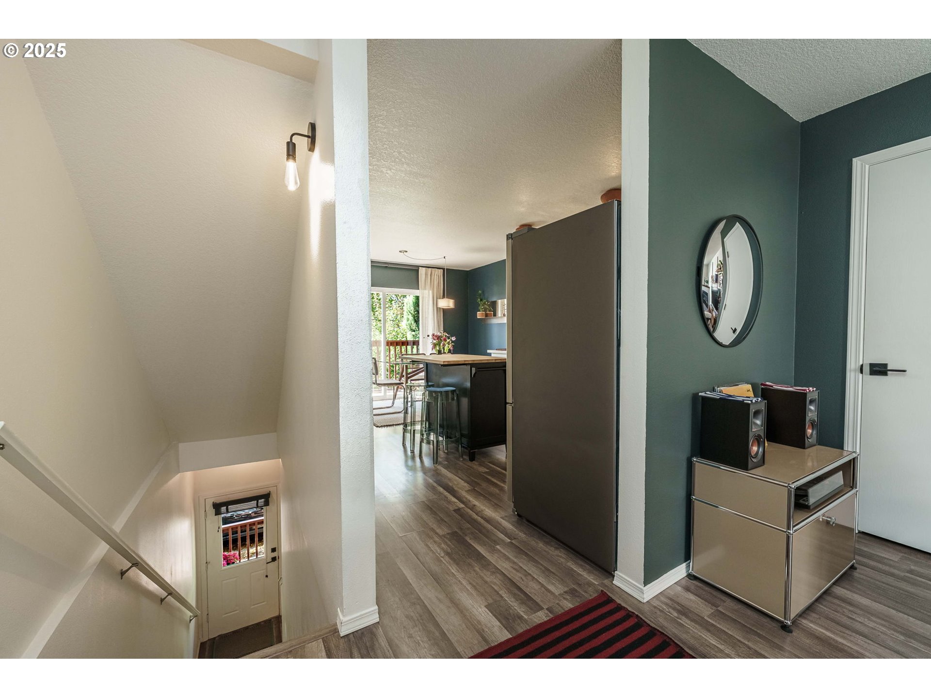 Discover the perfect blend of style, flexibility, and convenience in this 2-bedroom, 3-bath townhouse with a versatile bonus den/office. Just steps from Cathedral Park and the vibrant shops and eateries of St. Johns, this home puts you at the center of one of Portland’s most beloved neighborhoods.On the entry level, a bright den with soaring ceilings and a full bath offers endless options—ideal for a home office, private guest suite, or creative studio. Brand-new luxury vinyl plank flooring adds a modern touch.The main floor welcomes you with an airy open layout, cozy gas fireplace, and large windows that flood the space with natural light. The spacious kitchen boasts abundant counter space and cabinetry, flowing seamlessly into the dining area.Step outside to your private deck and take in sweeping territorial views of the iconic St. Johns Bridge and the lush expanse of Forest Park—the perfect setting for morning coffee, evening wine, or summer barbecues. [Home Energy Score = 8. HES Report at https://rpt.greenbuildingregistry.com/hes/OR10010522]