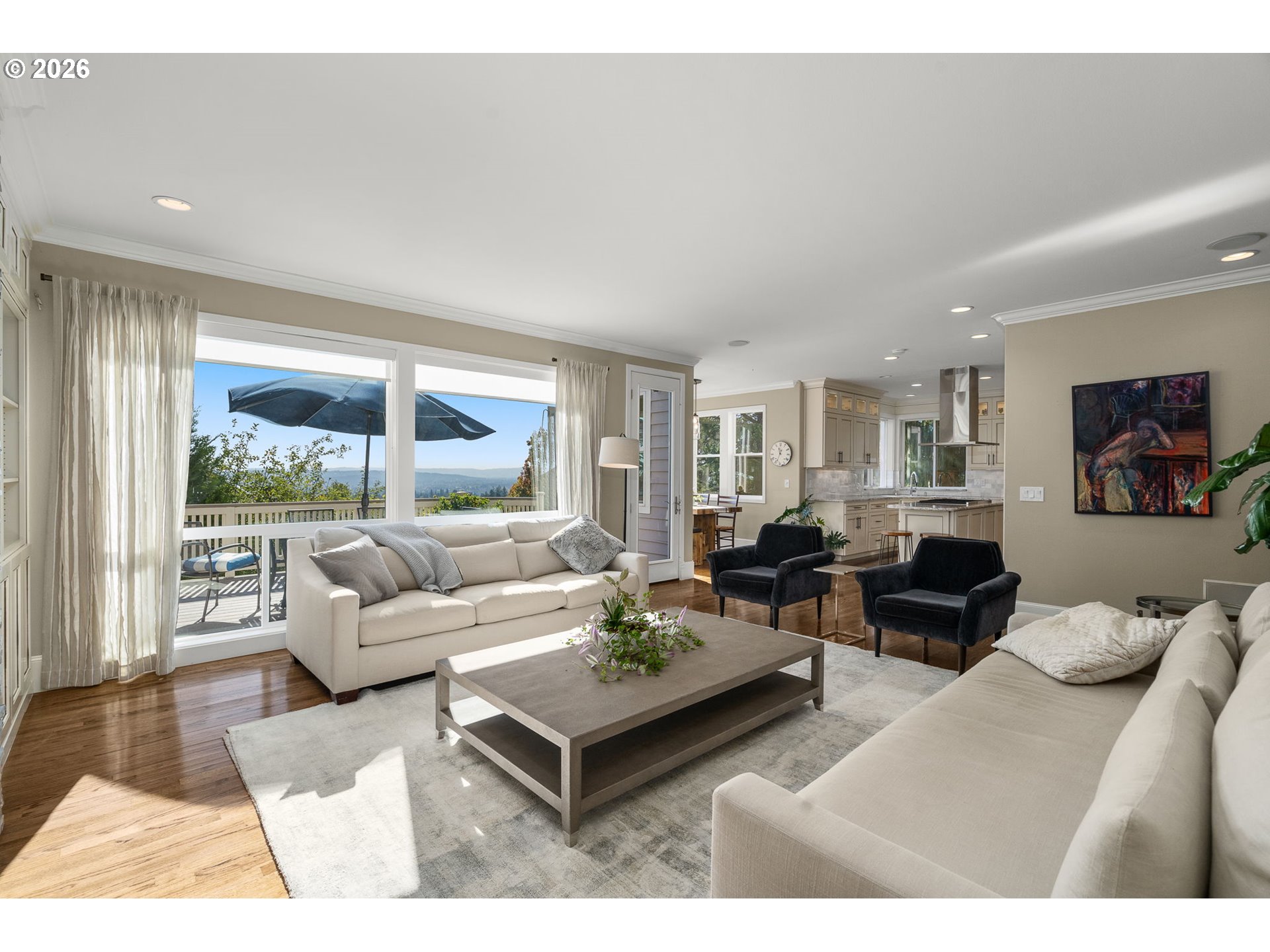 A MUST SEE! Premier NW Heights Location on a quiet cul-de-sac with Valley Views. Relax on the private deck off the primary suite and enjoy gorgeous sunset views. Every room of this open floor plan home has been beautifully updated and exceptionally Maintained! Main level with hardwood flooring throughout. Den/Office with built-ins, crown molding and wainscoting. Living Room with Gas start/wood burning Fireplace, adjacent to formal Dining Room. Chef's Kitchen with nook, walk-in pantry, and Top of the line stainless steel appliances including; Wolf 6 burner gas range and hood, Family Room with beautiful custom cabinets and Gas Fireplace with stone surround. Walk out to spacious deck and level backyard. Exceptionally Maintained! Oversized 3 car garage with plenty of built-in storage. Laundry with built-in ironing board. Upper level with Primary suite including; 2 walk in closets, jetted tub, walk in shower and separate sinks/cabinets. Two additional bedrooms with walk in closets and spacious bonus room which could double as a guest room.Excellent Schools: Forest Park Elementary, West Sylvan Middle & Lincoln High School. [Home Energy Score = 2. HES Report at https://rpt.greenbuildingregistry.com/hes/OR10233471]
