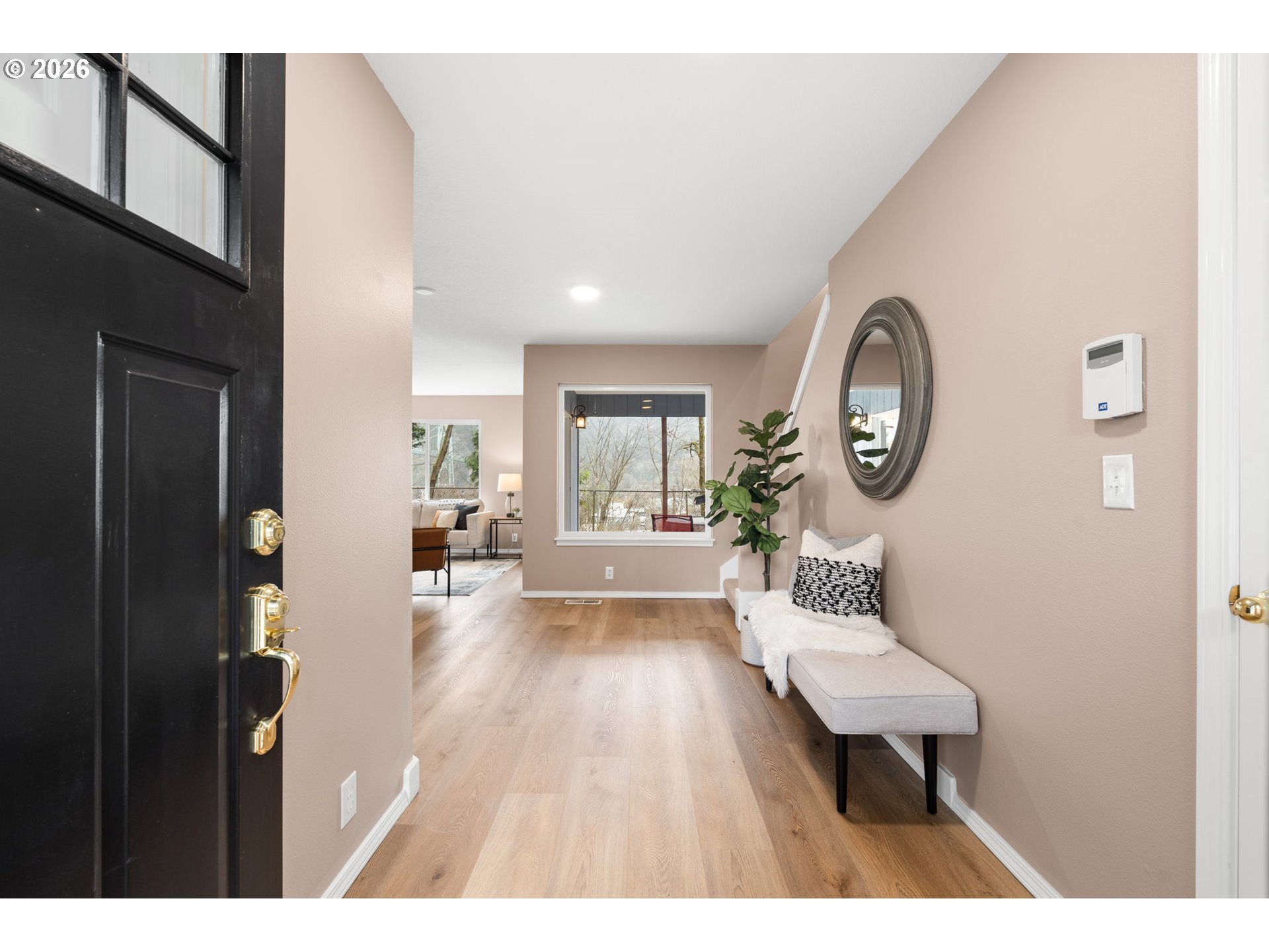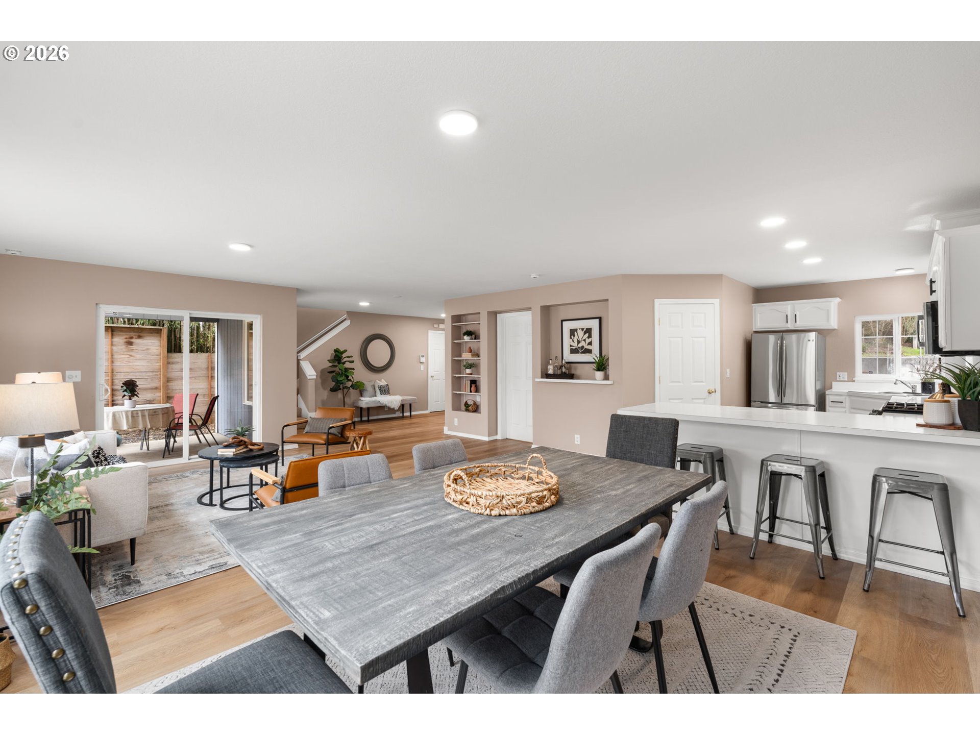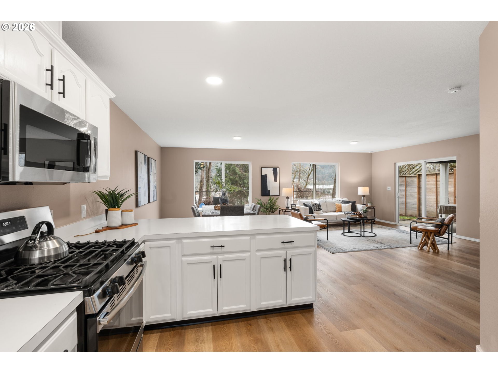 Desirable St. Johns location just two blocks from Cathedral Park with stunning views of the St. Johns Bridge, Willamette River, and West Hills. This light-filled home features a spacious Great Room floor plan designed for modern living and entertaining. The kitchen has been thoughtfully updated with newly installed soft-close hardware on the cabinetry, a large walk-in pantry, eating bar, and adjacent computer nook for flexible workspace. Recent improvements include new interior paint, updated flooring, modern lighting throughout, and a new HVAC system for year-round comfort and efficiency. Ideal layout features 4 spacious bedrooms all on the upper level, including a primary ensuite with ample closets, slider, deck and amazing views of the West Hills, Willamette River and the St Johns Bridge. Enjoy added privacy and a peaceful natural backdrop with designated open space behind the property. In Portland, “open space” typically refers to protected green space or environmentally designated land that cannot be developed—preserving trees, habitat, and natural landscape while enhancing privacy and long-term view corridors. Just two blocks to Cathedral Park and the boat launch, and minutes to shopping, TriMet, Fred Meyer, Starbucks, and downtown Portland. A rare opportunity to own in one of North Portland’s most sought-after neighborhoods with views, upgrades, and enduring natural surroundings. Open Saturday and Sunday 12-2