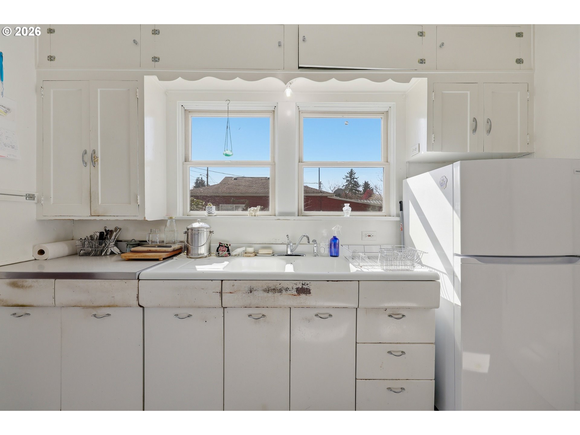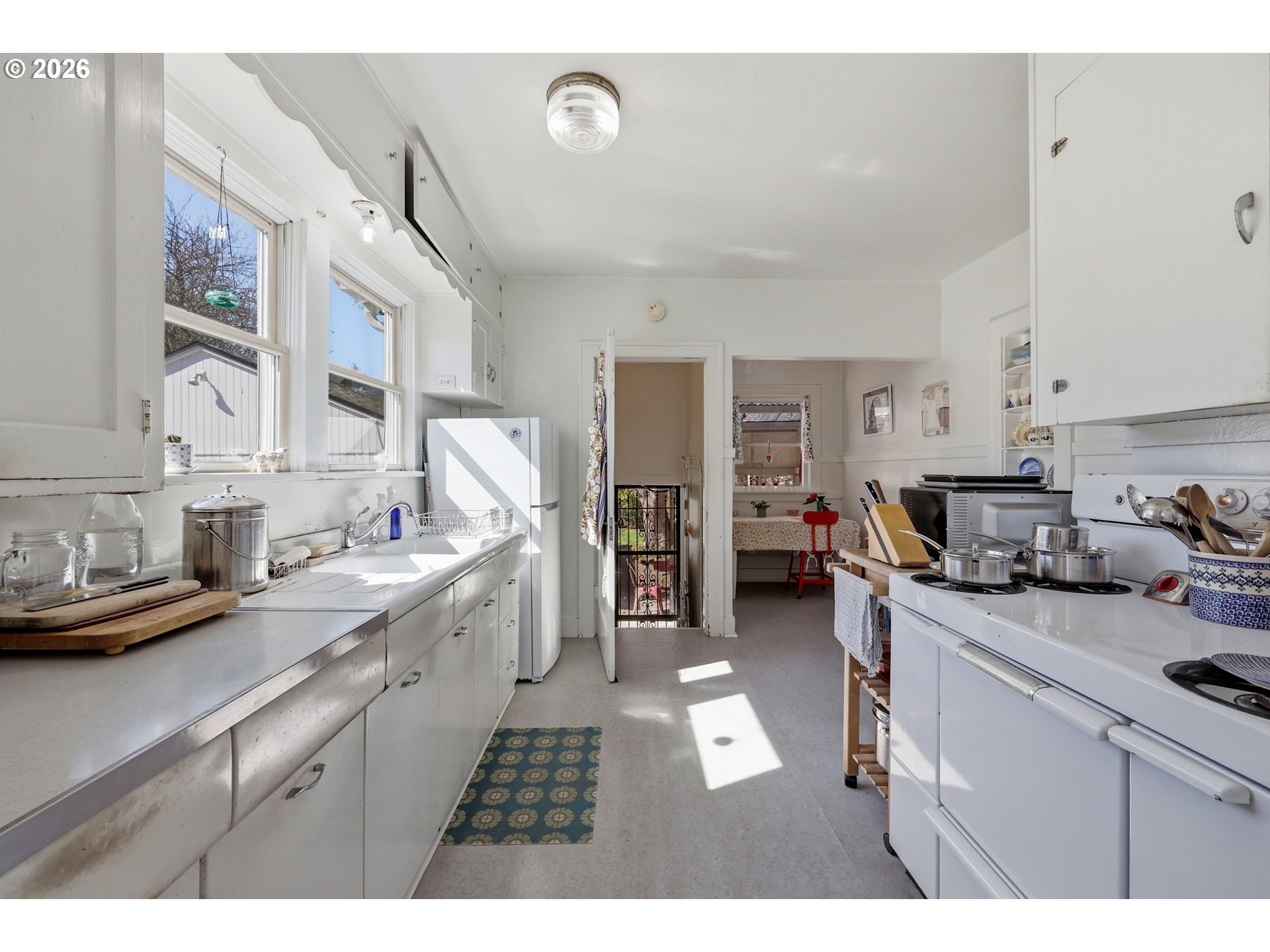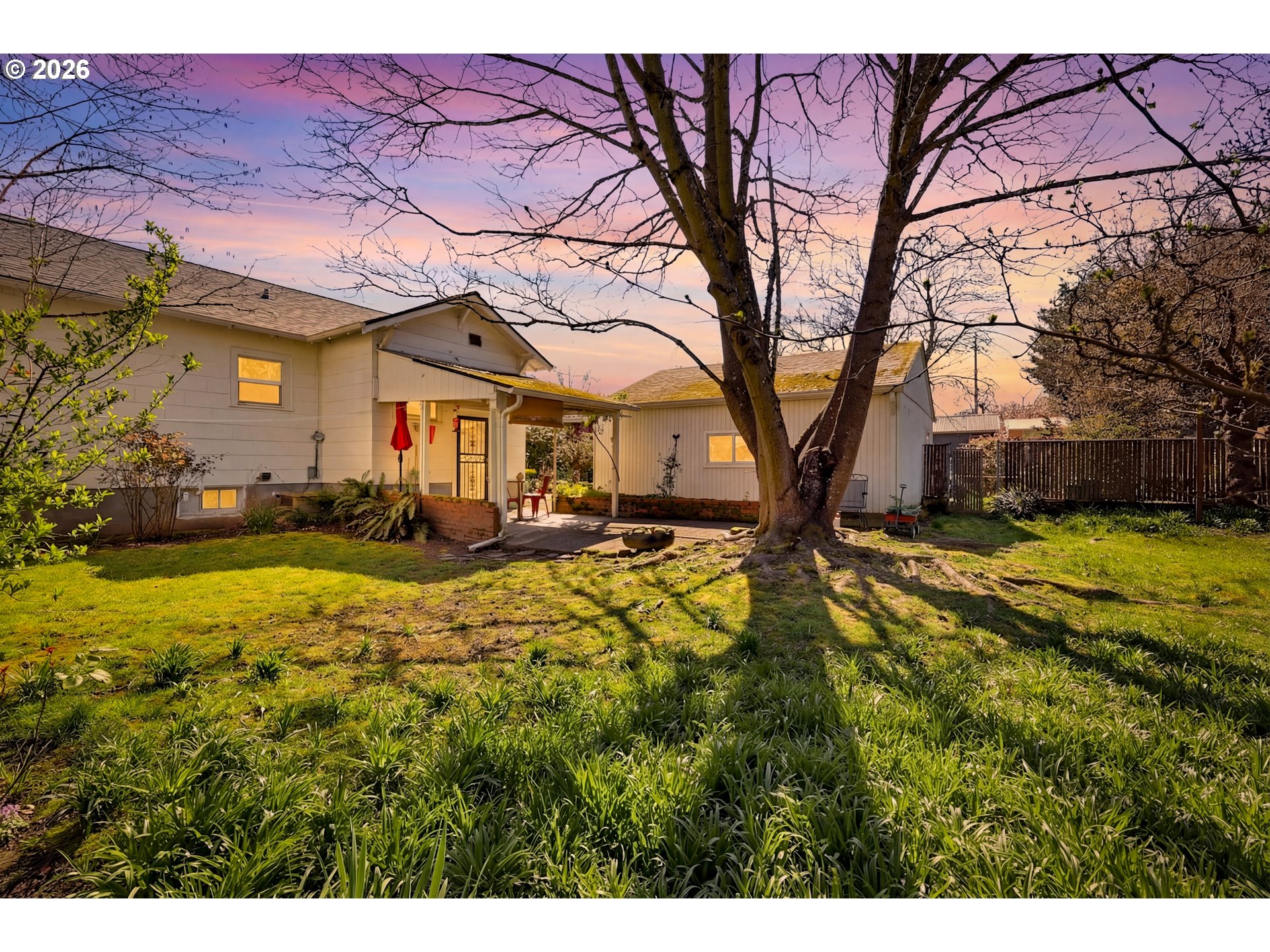 Charming bungalow brimming with potential, nestled on a quiet street in a well-established neighborhood. This solid home is waiting for its next chapter. The main floor offers two comfortable bedrooms and a spacious kitchen complete with an eating nook. Fully fenced yard and covered patio. Don’t miss the bright, skylit studio tucked alongside the detached garage. It is an added layer of versatility to this property. Turn it into a private home office, art studio or a quiet hobby room. Large fenced yard with trees and established flowering plants. Close to New Seasons and future North Portland Aquatic Center. New roof and water heater — both installed in 2021. Bring your personal style and vision to a property with exceptional bones in a location that truly delivers. [Home Energy Score = 5. HES Report at https://rpt.greenbuildingregistry.com/hes/OR10246213]