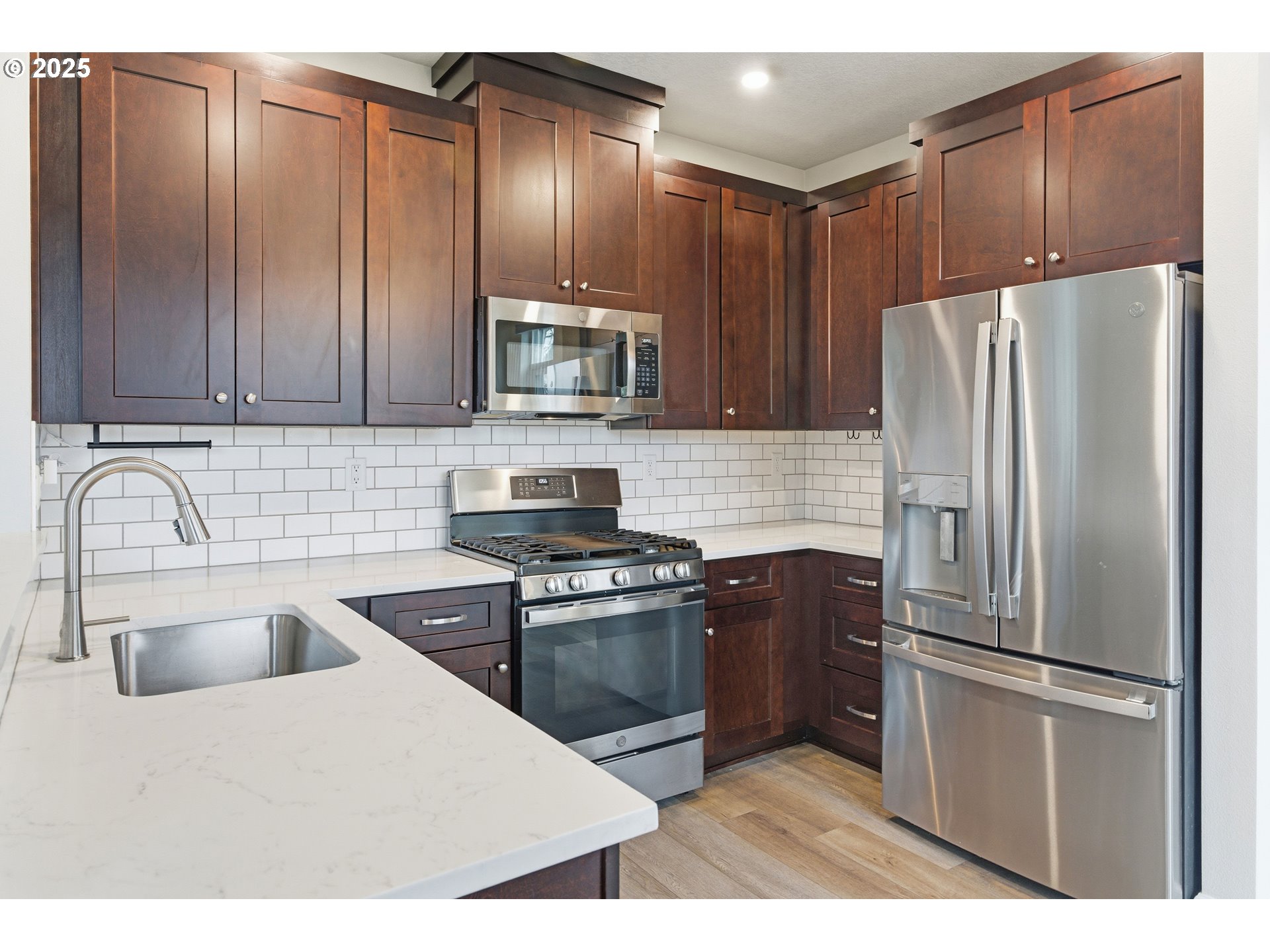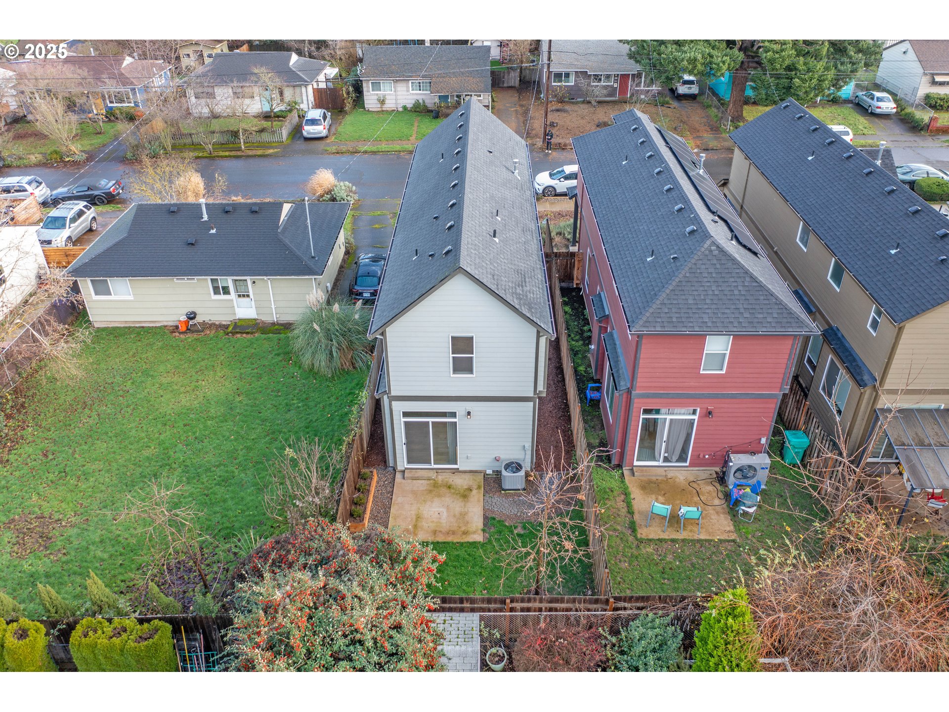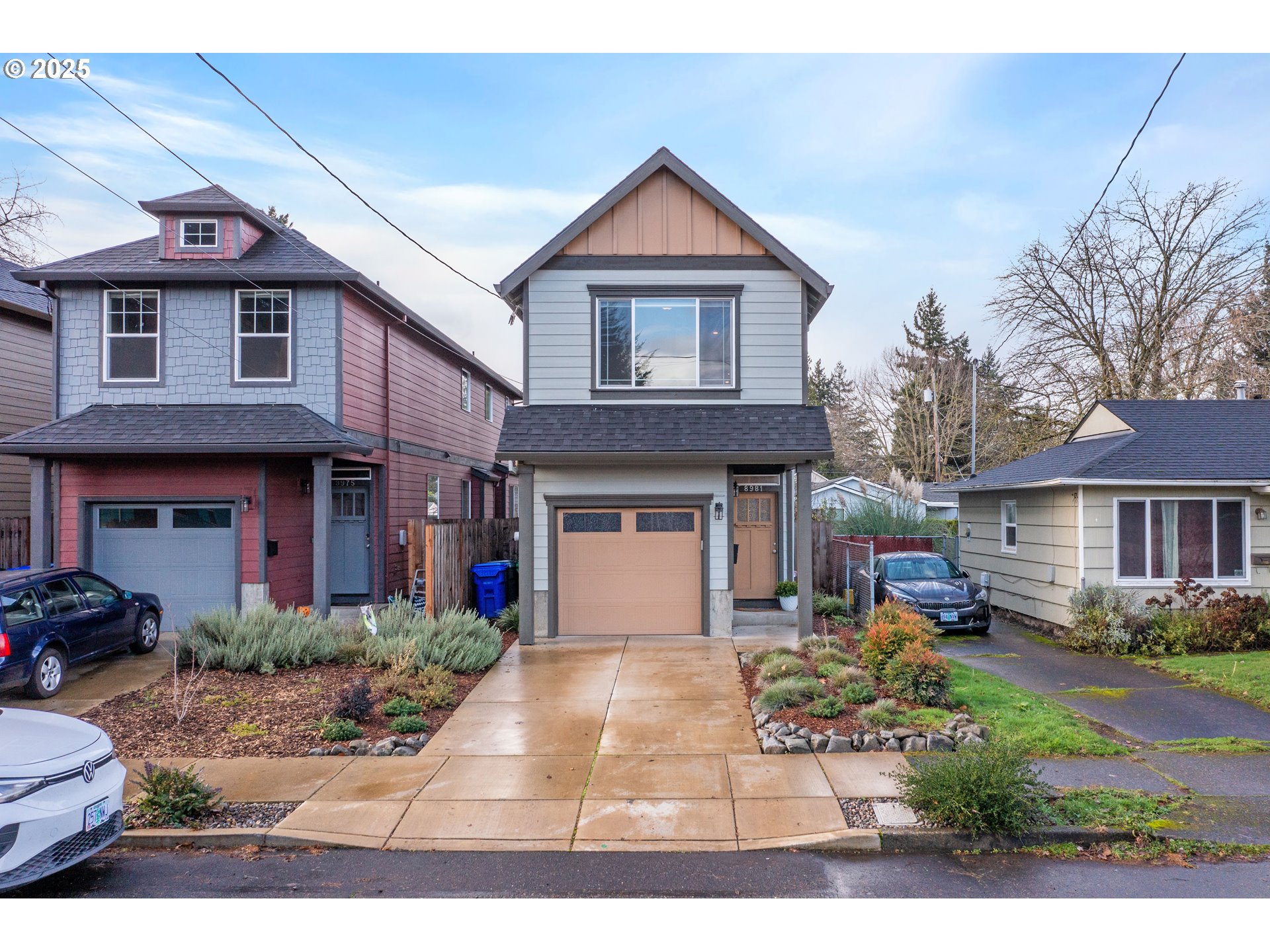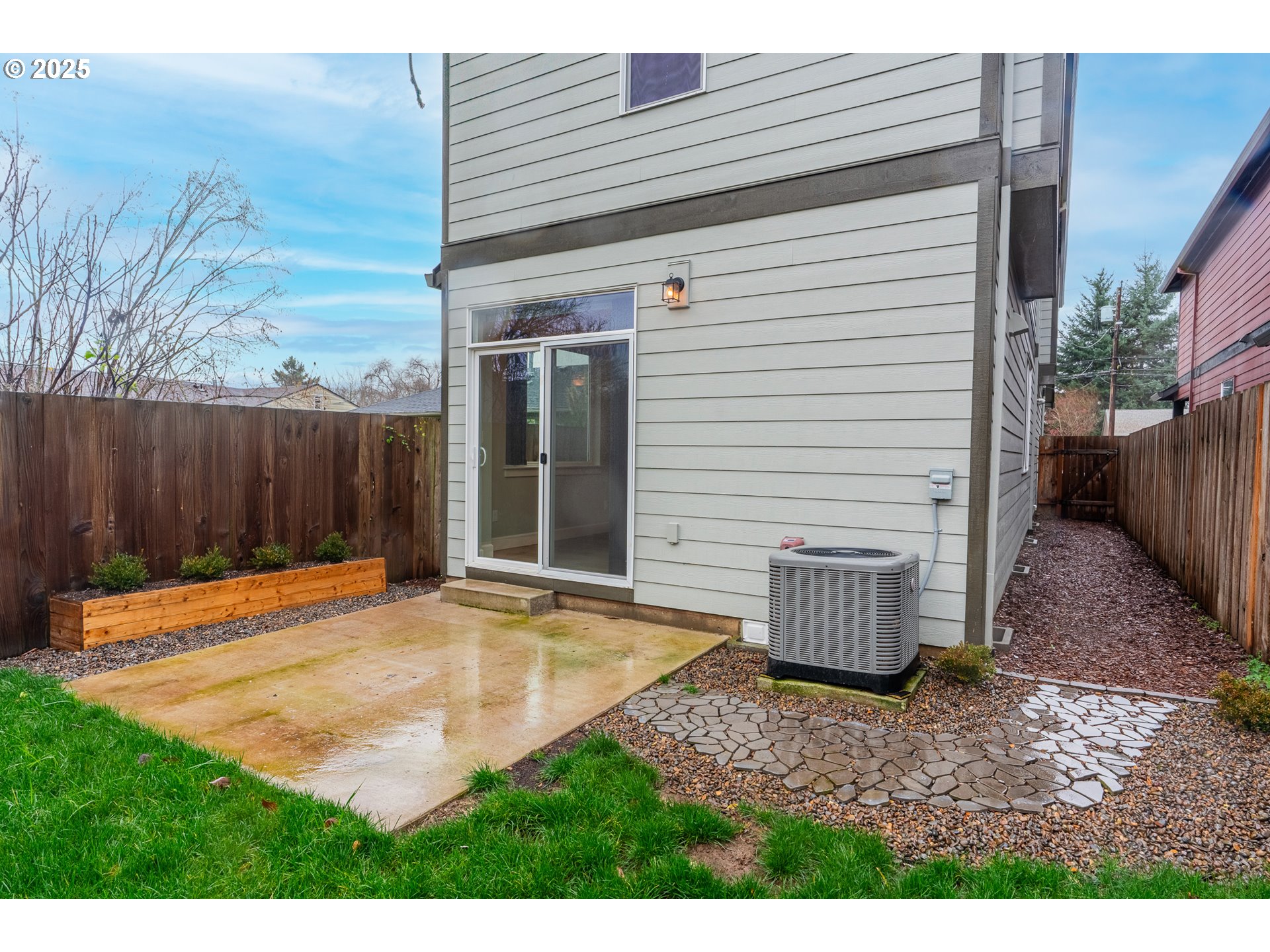 Tucked into a classic Portland neighborhood, this modern two-story home delivers clean lines, smart design, and effortless livability. The covered entry opens to a light-filled, open-concept main level where a statement fireplace anchors the living space and large windows bring the outdoors in. The kitchen blends style and function with stainless steel appliances, a tiled backsplash, an eat-up bar, and a dining nook made for slow mornings or lively dinners. Slide open the glass door to a fully fenced backyard with lush grass—your own private urban escape. Upstairs keeps things streamlined with all bedrooms on one level, a dedicated laundry room, a full hallway bath, and a generously sized primary suite complete with an ensuite soaking tub. An attached one-car garage adds everyday convenience to this polished, contemporary Portland home.