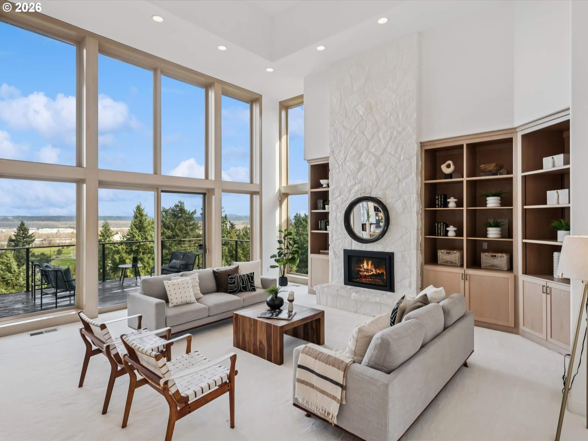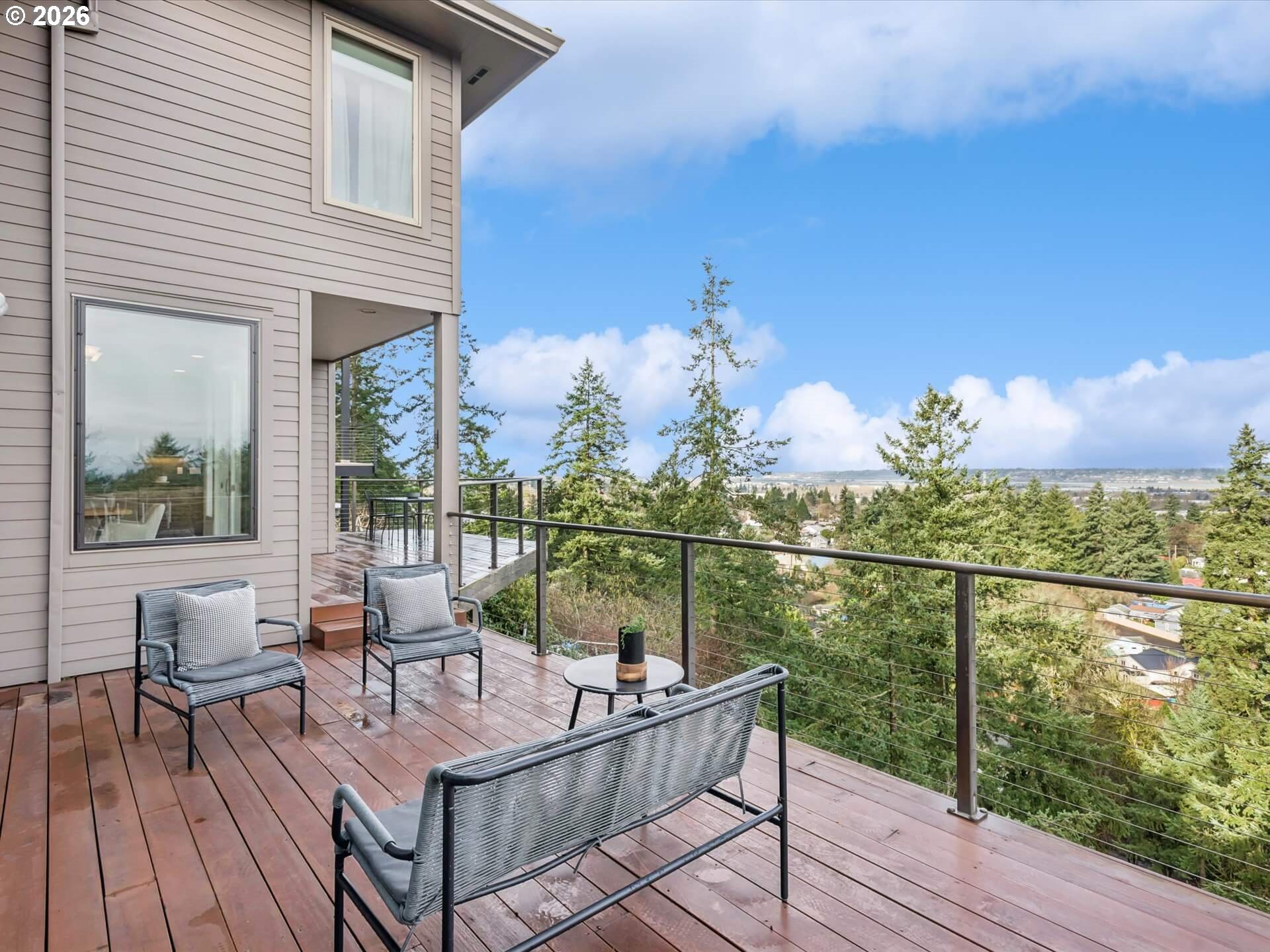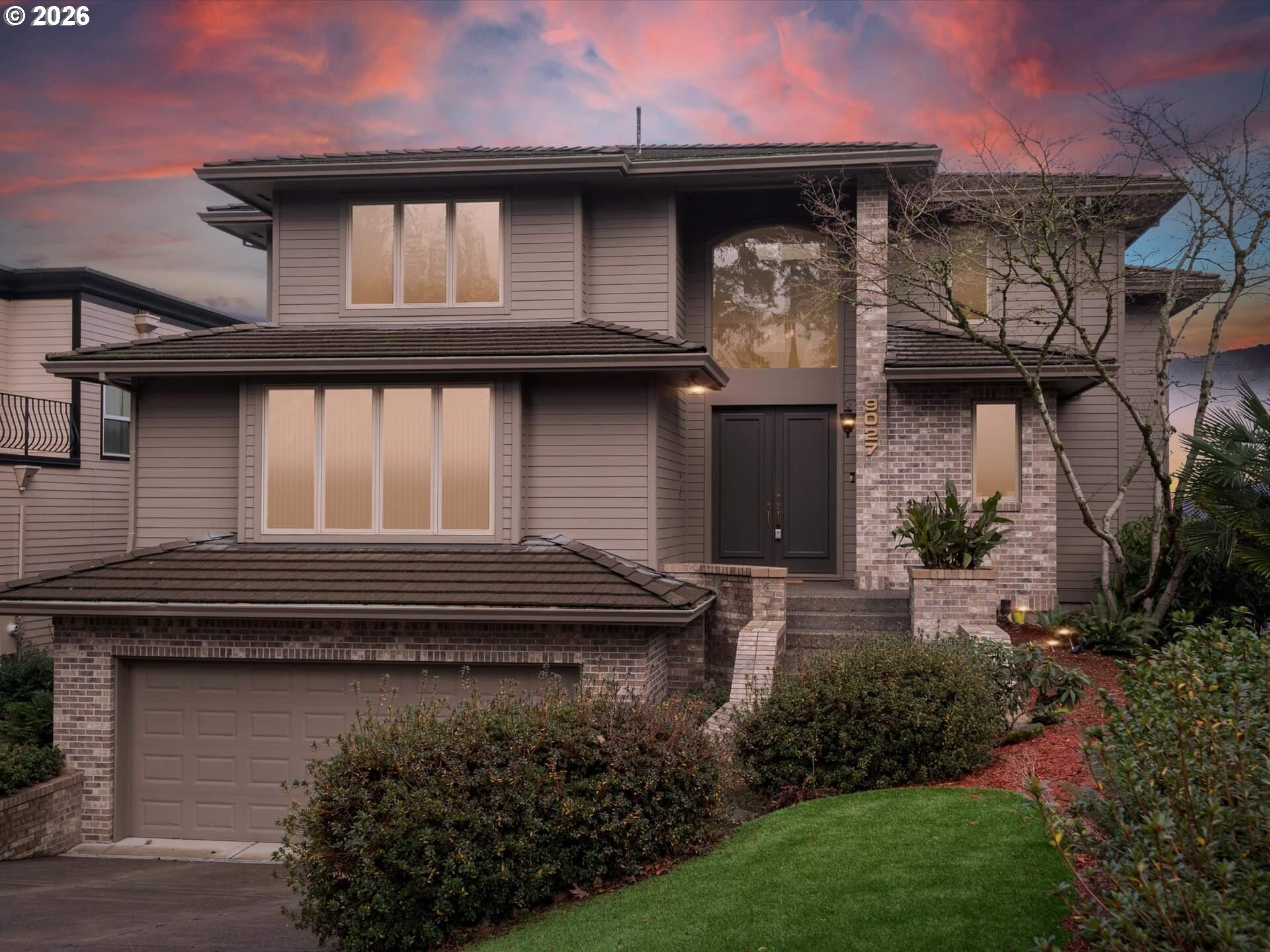 (503) 893-8874Stunning 1994 Northwest traditional with sweeping, unobstructed views of Mt. St. Helens, Mt. Adams, and Mt. Rainier. Soaring floor-to-ceiling windows and an expansive deck spanning the full width of the home create a front-row seat to the scenery. Over 5,200 square feet of thoughtfully designed living space includes a dramatic formal entry, four gas fireplaces, and an interior elevator serving all three levels. The primary suite is a true retreat with fireplace, private balcony, and north-facing mountain views. Enjoy multiple living areas, including a main-level family room or oversized den and a lower-level family room opening to a private covered deck. Tile roof, brick and fiber-cement siding, four-car tandem garage, abundant storage, private generator, sprinkler system, and central AC. A rare blend of scale, comfort, and unforgettable views. [Home Energy Score = 3. HES Report at https://rpt.greenbuildingregistry.com/hes/OR10243318]