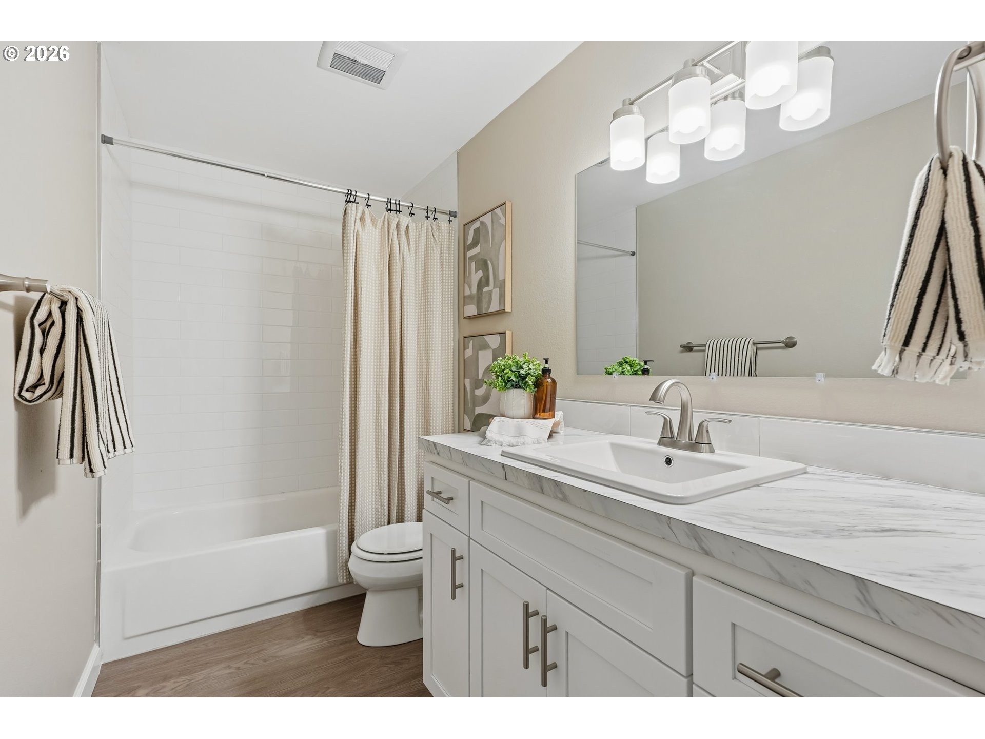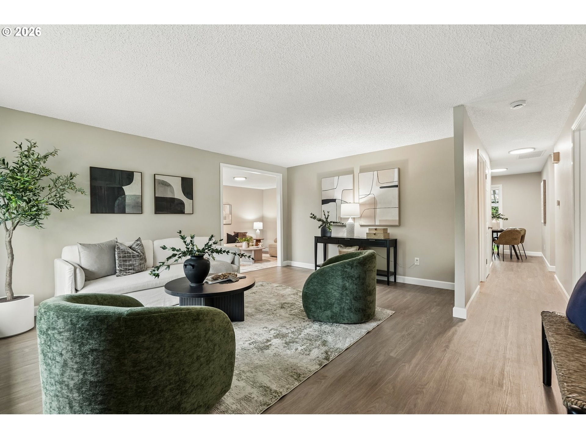 Welcome home to this beautifully refreshed 3-bedroom, 1.5-bath residence offering 1,240 square feet of comfortable living space on a generously sized lot. Thoughtfully updated inside and out, this home shines with modern finishes and timeless appeal. Step inside to find an inviting layout featuring new luxury vinyl flooring that flows seamlessly through the living areas, kitchen, hallway, and laundry room, complemented by plush new carpet in the bedrooms. The kitchen has been fully renewed with stylish cabinetry, sleek laminate countertops, new tile backsplash, brand-new appliances including a range, hood fan, and refrigerator—perfect for both everyday meals and entertaining. Bathrooms feature new tile backsplashes and tub/shower surround, new vanities, and coordinating countertops for a cohesive look. Throughout the home, updated lighting and fresh interior paint create a bright, welcoming atmosphere, while new doors and windows enhance energy efficiency and curb appeal. A fresh coat of exterior paint, new patio cover, and a roof replaced in 2021 provide peace of mind and long-term value. The large yard backs to a greenbelt-style corridor, offering privacy and endless potential for gardening, play, or outdoor gatherings, while the attached one-car garage adds convenience and storage space. With this good sized lot there is plenty of room for RV parking too! Move-in ready with thoughtful upgrades throughout, this home combines comfort, style, and practicality in one perfect package.