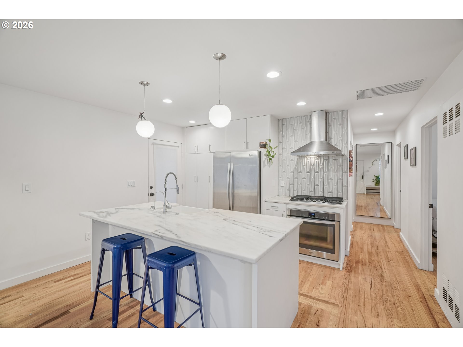 Instant CRUSH!! This Midcentury Ranch in St. Johns delivers style, comfort, and lifestyle! The open floor plan features three nice-sized bedrooms, an updated bathroom with zero threshold shower in custom concrete tile, a gourmet kitchen with marble counters, premium appliances, and a large island. Great room floor plan with custom accent wall including built in bookshelves and Osburn wood stove. Out back to your private covered deck and Finlandia Sauna! Set on a huge lot with a backyard built for entertaining, relaxing, all on a quiet street just three blocks from Pier Park and close to the St. Johns Community Center and iconic Cathedral Park. Minutes to Lombard Street's shops, dining, and neighborhood favorites. Upgraded, move-in ready with a new roof in 2023! Mortgage savings may be available for buyers of this listing. [Home Energy Score = 6. HES Report at https://rpt.greenbuildingregistry.com/hes/OR10218851]