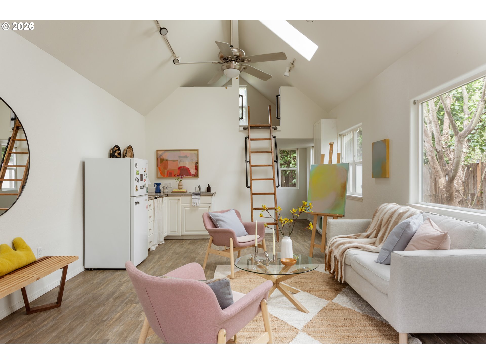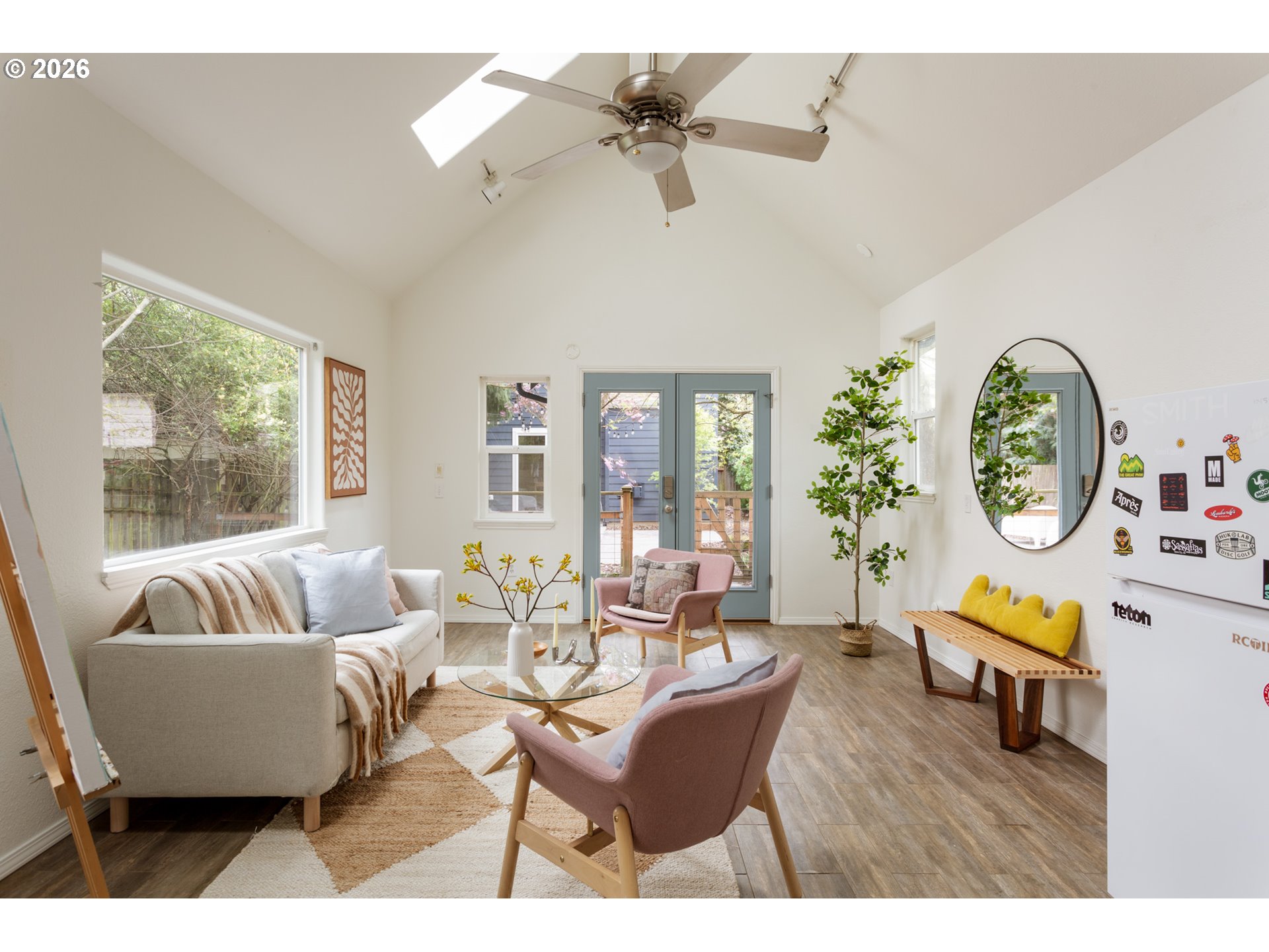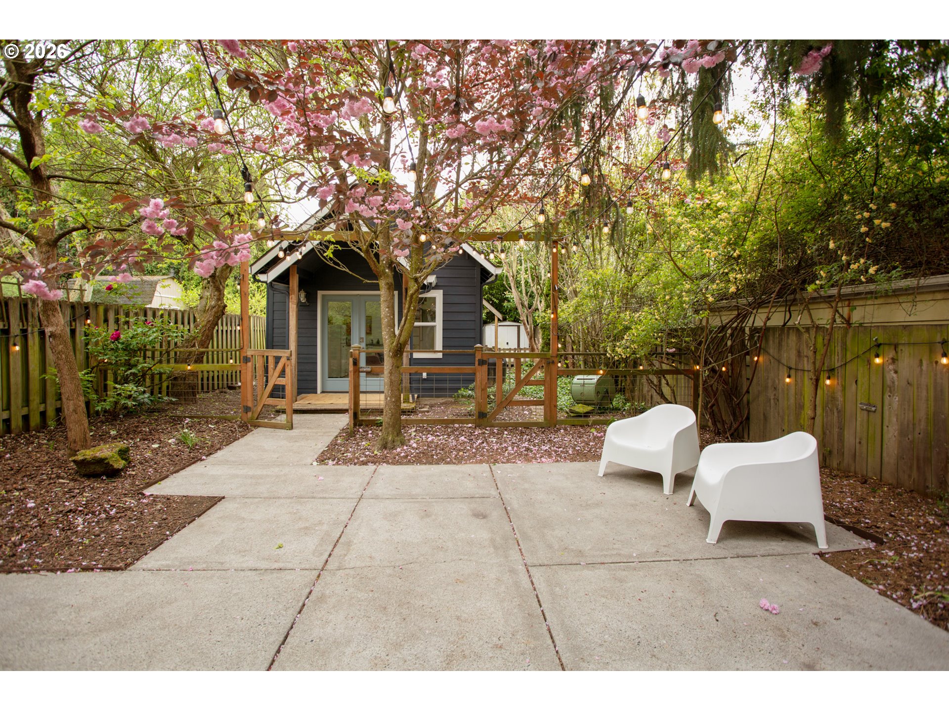 Not your typical tall-skinny. This one hits differently the second you walk in. It lives bigger than it looks, with a detached artist studio offering bonus space that expands how you live day to day. And the best part, it’s move-in ready - so you can skip the projects and get straight to easy livin'.Inside the home, tall ceilings bring volume and airiness. The kitchen flows right into the dining and living areas, with sliding doors out to a patio and fully fenced yard with real garden potential, offering room to entertain, unwind, or let things grow. Upstairs, the primary suite delivers in a big way with vaulted ceilings, a garden view, an en-suite bath, and a walk-in closet. The additional 2 bedrooms are generous in size, with large closets. The washer and dryer are conveniently found in the upstairs hallway closet. And then the bonus: a detached artist studio that brings a little extra magic. Fully equipped with its own 100 amp panel and new water heater, it’s ready to be whatever you need. Office, gym, creative space, movie nights… a true extension of the home, not an afterthought.Everything here has been handled. New carpet, fresh interior & exterior paint, refinished hardwoods, and updated lighting. Tucked into a quiet cul-de-sac, just one house from Northgate Park, the soon-to-be home of the North Portland Aquatic Center, a future indoor aquatic facility will have an indoor pool with play features, a competitive lap pool, and spa. Mins to New Seasons, St Johns, and Kenton. [Home Energy Score = 9. HES Report at https://rpt.greenbuildingregistry.com/hes/OR10247072]