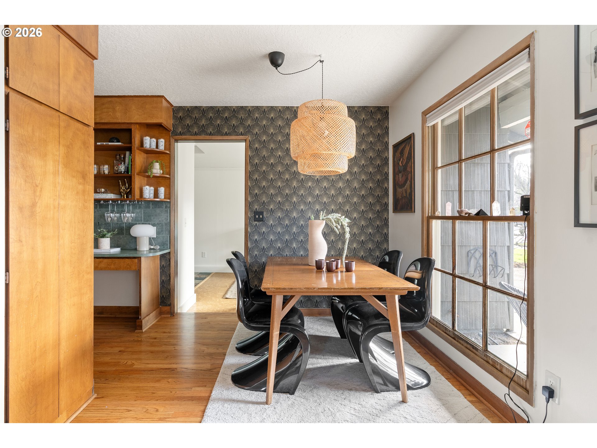 No boring white flipped kitchen here! This Mid Century beauty has soul, function, and serious big yard energy. Set on an oversized lot and lovingly cared for, the vibe here is warm and intentional, with original oak floors and updated wood windows and doors.The kitchen design has personality (imagine that) and storage galore. The stainless steel refrigerator, range + vent, and dishwasher are newer (2022), so you get the perfect trifecta: style, storage and systems. The bonus converted space adds flexibility and has cork flooring and a full light wood door out to the yard. Perfect for your office, gym, playroom or that hobby you need room for. The primary bedroom connects to a large private deck with a regularly serviced hot tub. Evenings outside in the tub relaxing under the stars anyone? Speaking of outside, so much room to streeeetchhhh out! Professionally designed native landscaping with drip irrigation, fruit trees, and custom raised garden beds built from sustainable juniper wood. It’s still in winter mode right now, but there’s a stunning front yard design already installed! Plus a big covered patio extending your space during the rainy times. And the practical upgrades? Handled for you: New roof (2022), fresh interior and exterior paint (2022), dual-fuel heating and A/C system (furnace + newer heat pump, serviced twice annually), Nest thermostat, crawl space clean up + vapor barrier (2022). All this AND just a quick jaunt to New Seasons for groceries. Come and see this outstanding oasis! [Home Energy Score = 6. HES Report at https://rpt.greenbuildingregistry.com/hes/OR10197935]