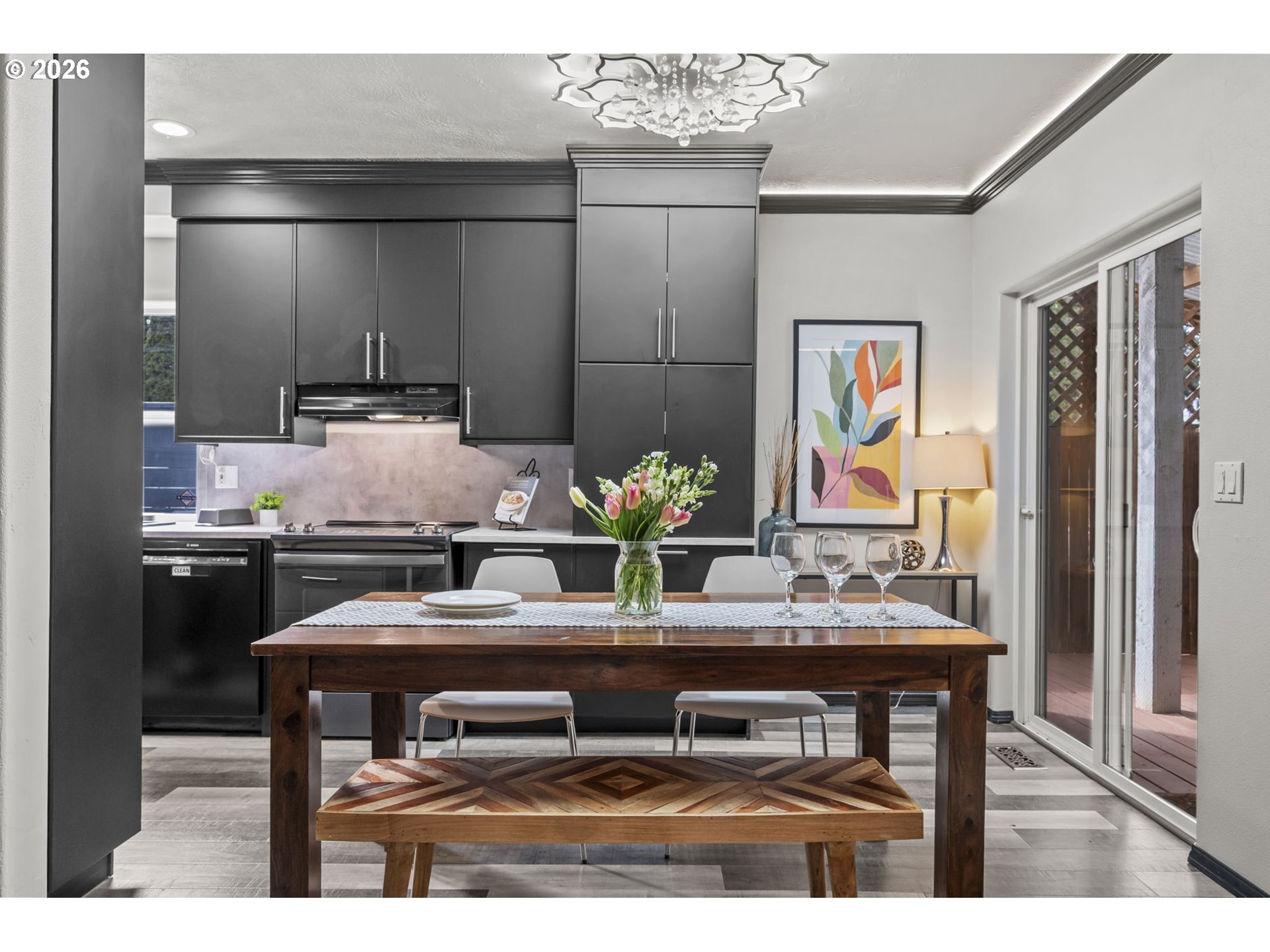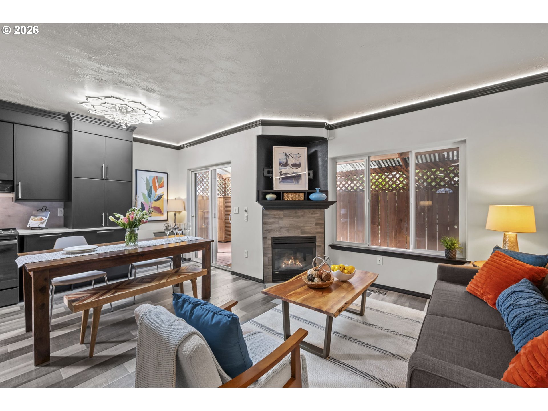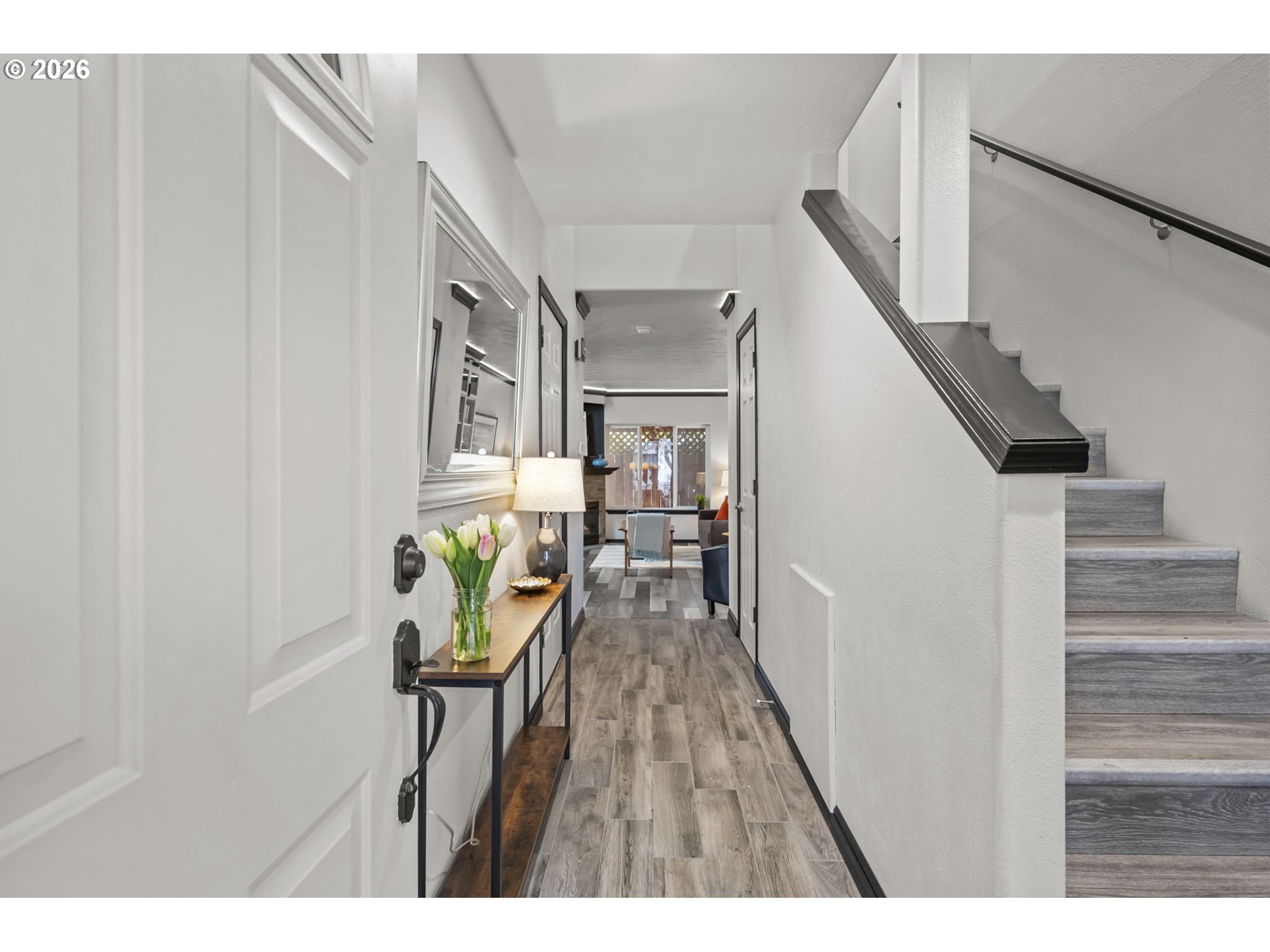 Meet Haven, your snug nest framed by cherry trees. This end-unit Rockwood townhome has NO HOA and a vibe like a deep exhale. The remodeled kitchen is exceptionally open, airy, and functional. Living room coziness is dialed up to 11 with library shelving and a gas fireplace. Upstairs, the vaulted primary suite offers tree-shielded ensuite privacy with a big slice of sky. Two more bedrooms are giving office / craft / guest space galore. Sleep like a baby knowing major updates are handled: new roof (2024), fence (2026), water heater (2026), plus fresh interior paint & fixtures (2026). Not to mention a heat pump for efficiency + A/C when you need it! The street outside is quiet, tree-lined, friendly. Cherry blossoms make slow fireworks in season. There's a covered back deck for morning coffee & evening decompression. And the location is lowkey excellent: right on the MAX Blue Line, close to 181st & quicker than you'd think to downtown Portland. You can get anywhere from here-—then return to an oasis of peace & calm. Haven is ready to be your soft landing place. Welcome home!