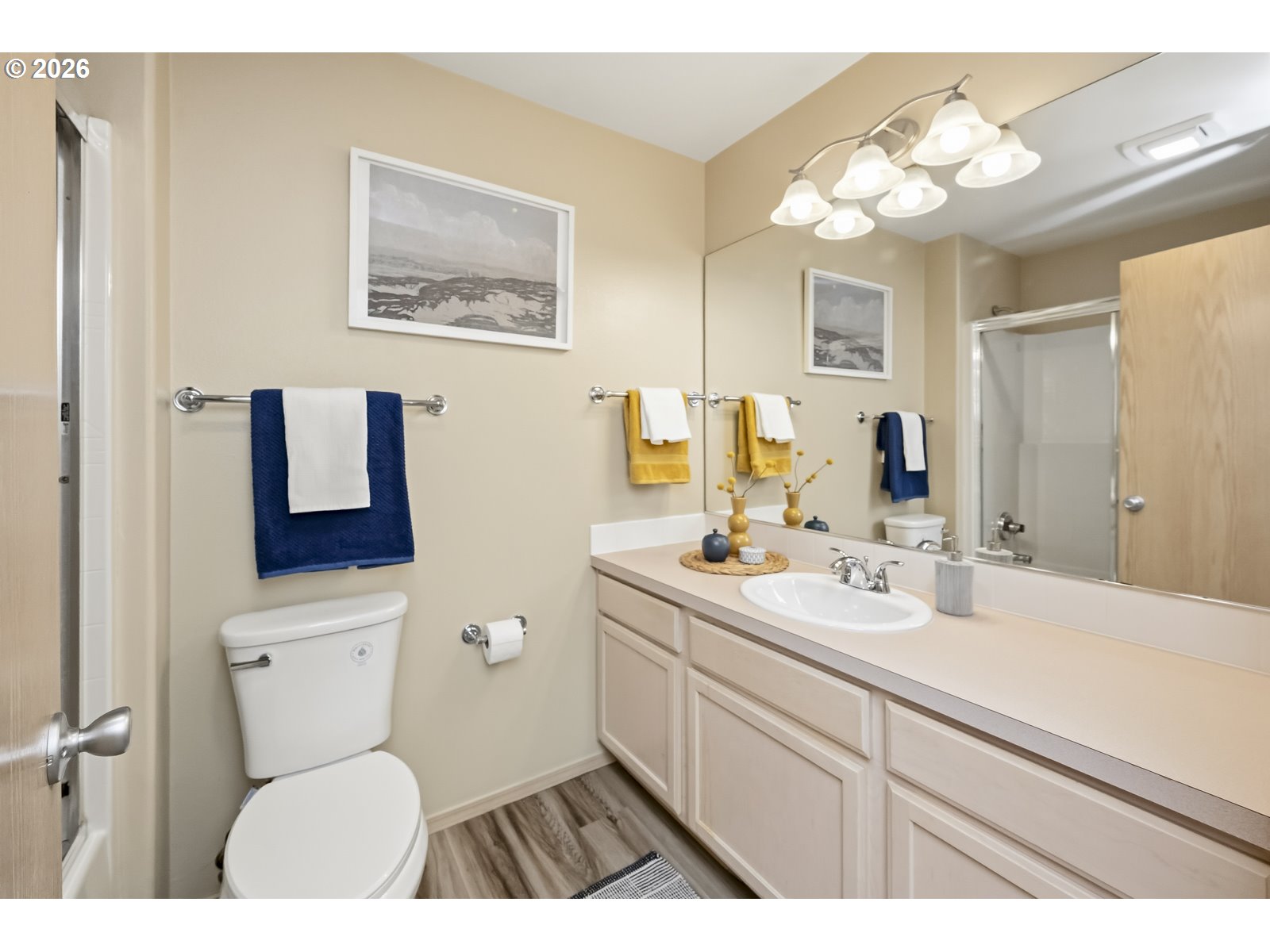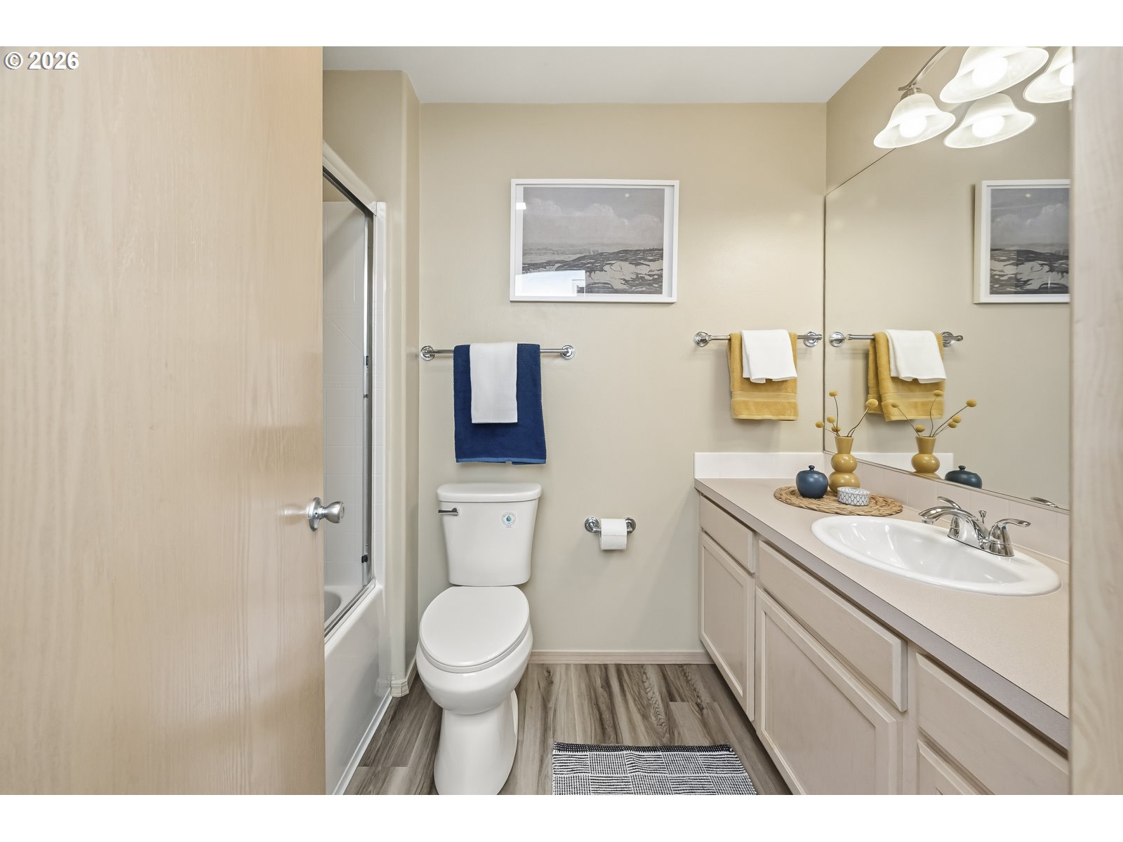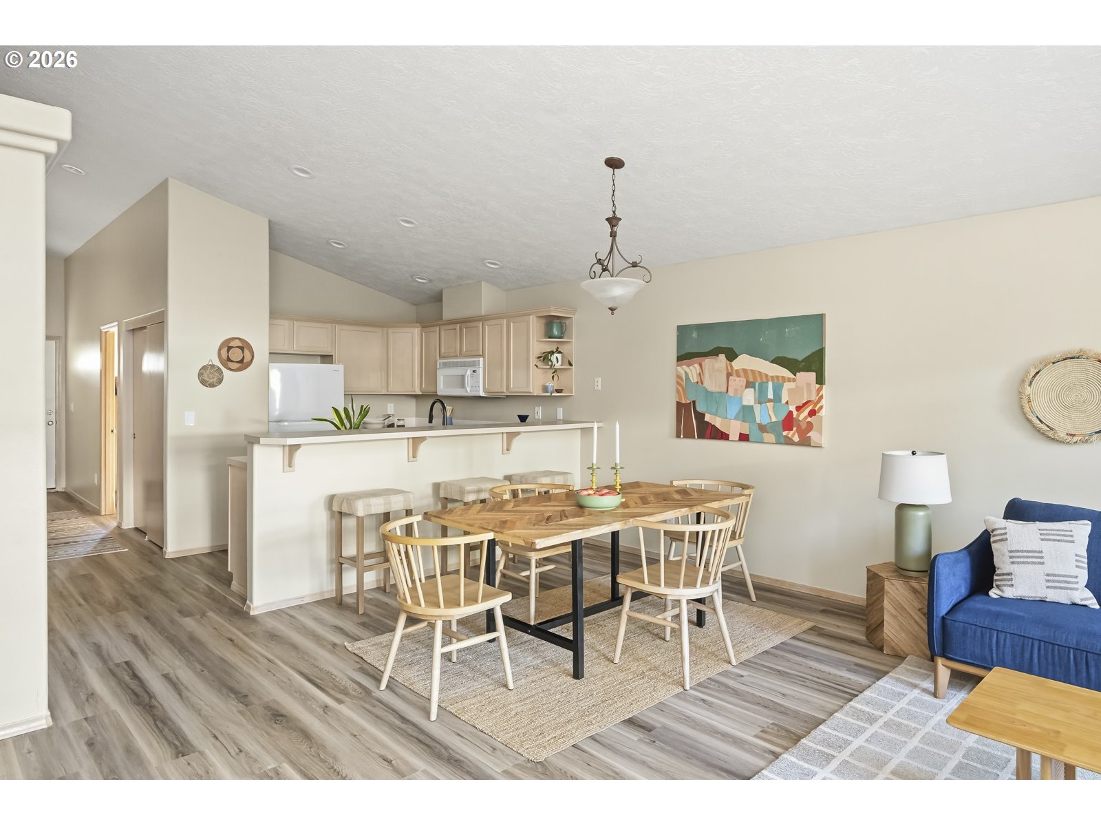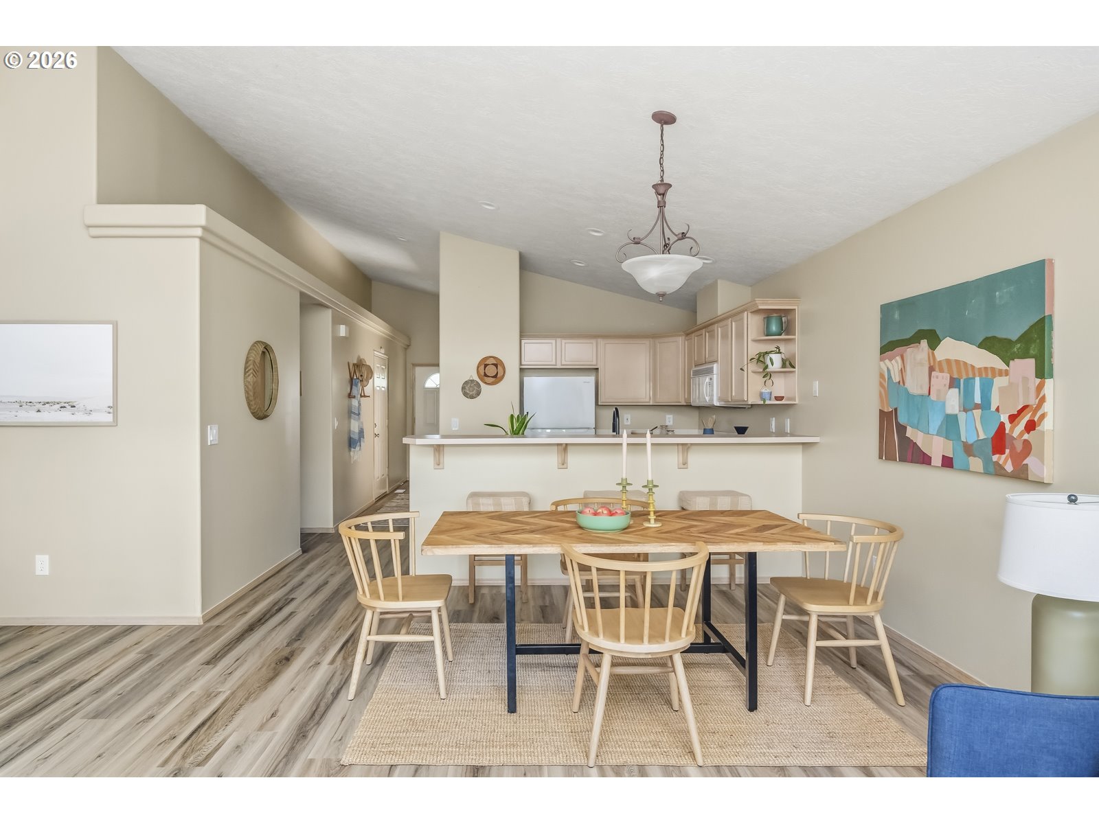 This sweet, single-level Troutdale home is move-in ready and has been very well maintained. Upon entry, you’re welcomed into an open-concept floor plan with vaulted ceilings that create a bright and inviting atmosphere. The main living space includes the kitchen, designated dining area, and a spacious living room–perfect for both everyday living and entertaining. Sliding doors and large windows lead out to the patio and fully fenced yard, offering seamless outdoor living. The thoughtfully designed layout provides both privacy and functionality, with 3 well positioned bedrooms and 2 full bathrooms. The primary suite features double closets, an en-suite bathroom, and direct access to the backyard. Additional highlights include a separate laundry room, a two-car garage, and additional driveway parking. Situated on a charming street with easy access to dining, shopping, entertainment, and nearby green spaces, this home offers comfort and convenience in a desirable Troutdale location.