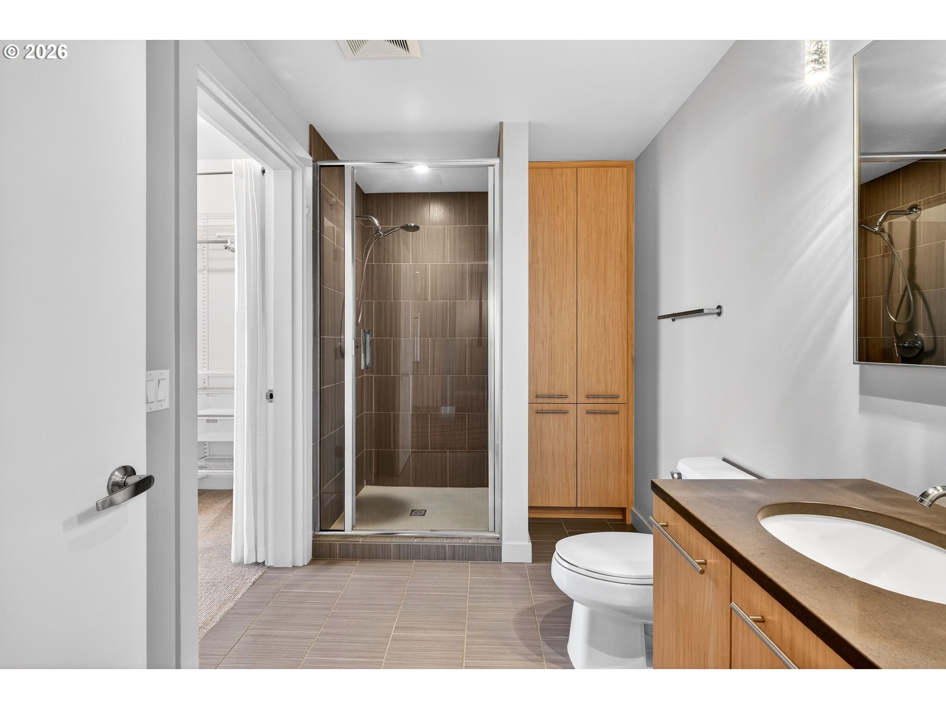 Perched on the 11th floor of The Encore, one of the Pearl District’s most sought-after buildings, this impeccably maintained residence delivers style, comfort, and unforgettable views. The light-filled open floor plan includes a versatile flex space ideal for a home office, reading nook, or guest accommodations. The kitchen is both stylish and functional with Bosch appliances, quartz slab countertops, and abundant storage. Additional upgrades include a NEW HVAC system and multiple custom closet organizers that make everyday living feel effortless. Step outside onto the expansive 26-foot covered balcony and take in views of the Willamette River, Mt. Hood, and the city skyline. Building amenities include an on-site manager, strong HOA, gym, community room, deeded parking, and storage. Walk out the front door to a 3-acre park - with a fenced off-leash dog area makes life especially easy for four-legged family members. Ovation Café is right downstairs, while breweries, restaurants, fitness studios, and sports venues are all just minutes away. A Perfect place to call home!