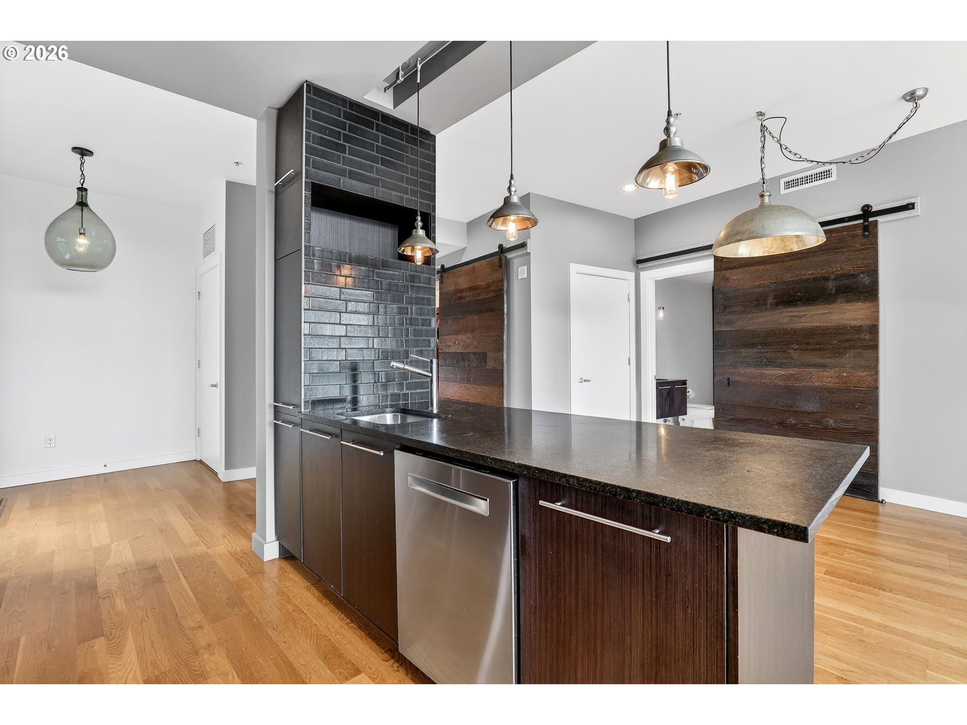 Location matters—and The Encore delivers. Overlooking The Fields 3-acre park with the Willamette River as its backdrop, this well-managed building with a strong HOA offers a rare opportunity to own in one of the Pearl District’s most established communities. This southeast-facing corner unit captures natural light year-round—with Mt. Hood views on a clear day. The spacious open floor plan includes a flexible space, ideal for a home office or guest area. Features include high ceilings, quartz countertops, Bosch appliances, designer lighting throughout, hardwood floors, and an LG washer/dryer. Enjoy 3rd-floor amenities including a community room and gym. A resident favorite, Ovation Café, is conveniently located on the ground level. Just outside your door: restaurants, breweries, fitness studios, groceries, and waterfront paths. Includes storage unit and a prime parking space.