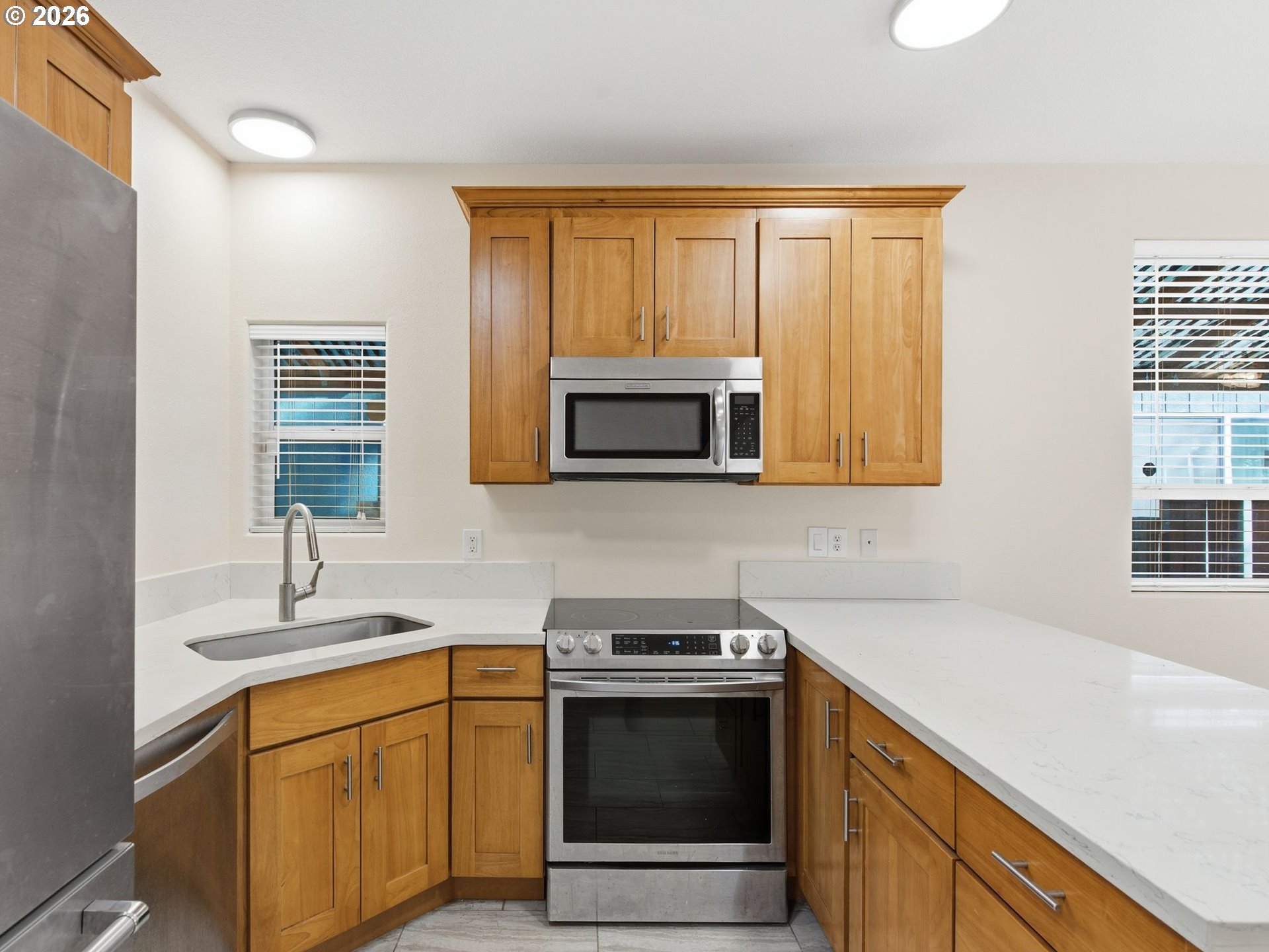 Tucked into the sought after College Place neighborhood, this charming 3 bed, 2 bath home offers a bright and inviting layout with modern updates throughout. The open concept main level features warm wood cabinetry, sleek countertops, and seamless flow into the living and dining spaces—perfect for everyday living or hosting. Upstairs, spacious bedrooms provide comfort and privacy, while large windows bring in abundant natural light. Enjoy a fully fenced front yard with gate access, ideal for pets, play, or added privacy. New life time roof, new furnace, new AC and updated counter tops. Conveniently located in North Portland near parks, dining, and commuter routes, this home blends comfort, functionality, and location with ease.