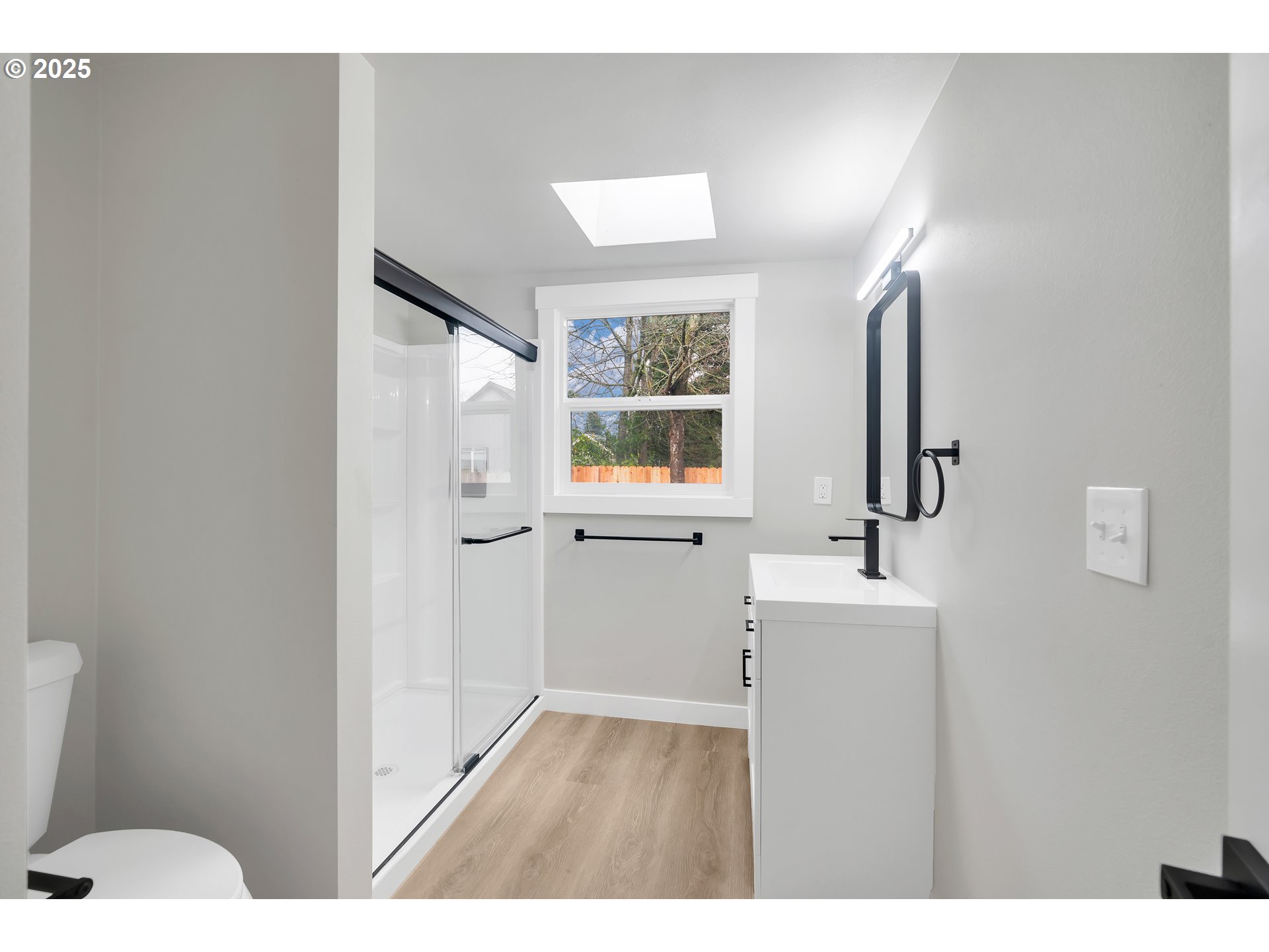 Welcome to this beautifully designed, newly built one-level home offering modern comfort and effortless living in a convenient Southeast Portland location. With three bedrooms and a thoughtfully designed open-concept layout, this home feels bright, airy, and incredibly spacious. LVP flooring flows throughout, while oversized windows in the main living areas fill the home with natural light and enhance the seamless connection between the living, dining, and kitchen spaces—perfect for both everyday living and entertaining.The primary bedroom features a private ensuite bathroom with a walk-in shower, creating a relaxing retreat. Step outside to a fully fenced backyard with a tool shed, ideal for storage, hobbies, or gardening.This home offers easy access to parks, schools, shopping, and dining, with quick connections to I-205 and public transportation for an easy commute throughout Portland. Enjoy nearby green spaces, neighborhood amenities, and the convenience of being minutes from both urban essentials and outdoor recreation. Move-in ready and completely new, this home delivers style, comfort, and an excellent location.