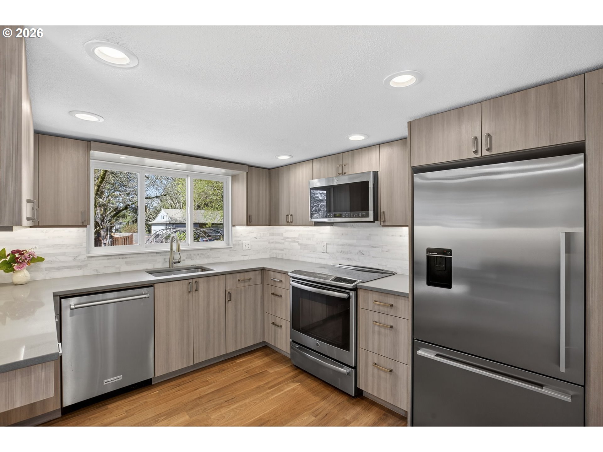 Prepare to fall in love with this beautifully renovated Portland residence, quietly set on one of the city’s most desirable and serene streets. More than just a home, it offers a refined lifestyle in an established, highly sought after neighborhood.Surrounded by mature landscaping, the fully fenced backyard is truly a gardener’s dream, thoughtfully cultivated and designed to create a private, resort style retreat. Lush plantings, established greenery, and inviting outdoor spaces offer a rare sense of tranquility and connection to nature.Originally built in 1952, the home has been meticulously renovated from top to bottom with a focus on timeless design, elevated finishes, and effortless livability. Recent improvements include a brand new roof and newly installed carpet, enhancing both comfort and peace of mind. The result is a truly turnkey experience.Inside, a thoughtfully designed layout features beamed ceilings, rich hardwood floors, and a seamless flow ideal for both entertaining and everyday living. The main level offers a spacious primary suite along with generously sized bedrooms, creating a balance of comfort and functionality.In addition to the oversized two-car garage, the original garage has been converted into flexible living space, perfect for a home office, guest suite, or additional bedroom.Located just minutes from acclaimed shops, restaurants, parks, and miles of trails, with access to highly regarded schools, this is a rare opportunity to own a fully renovated home that perfectly blends privacy, design, and location.